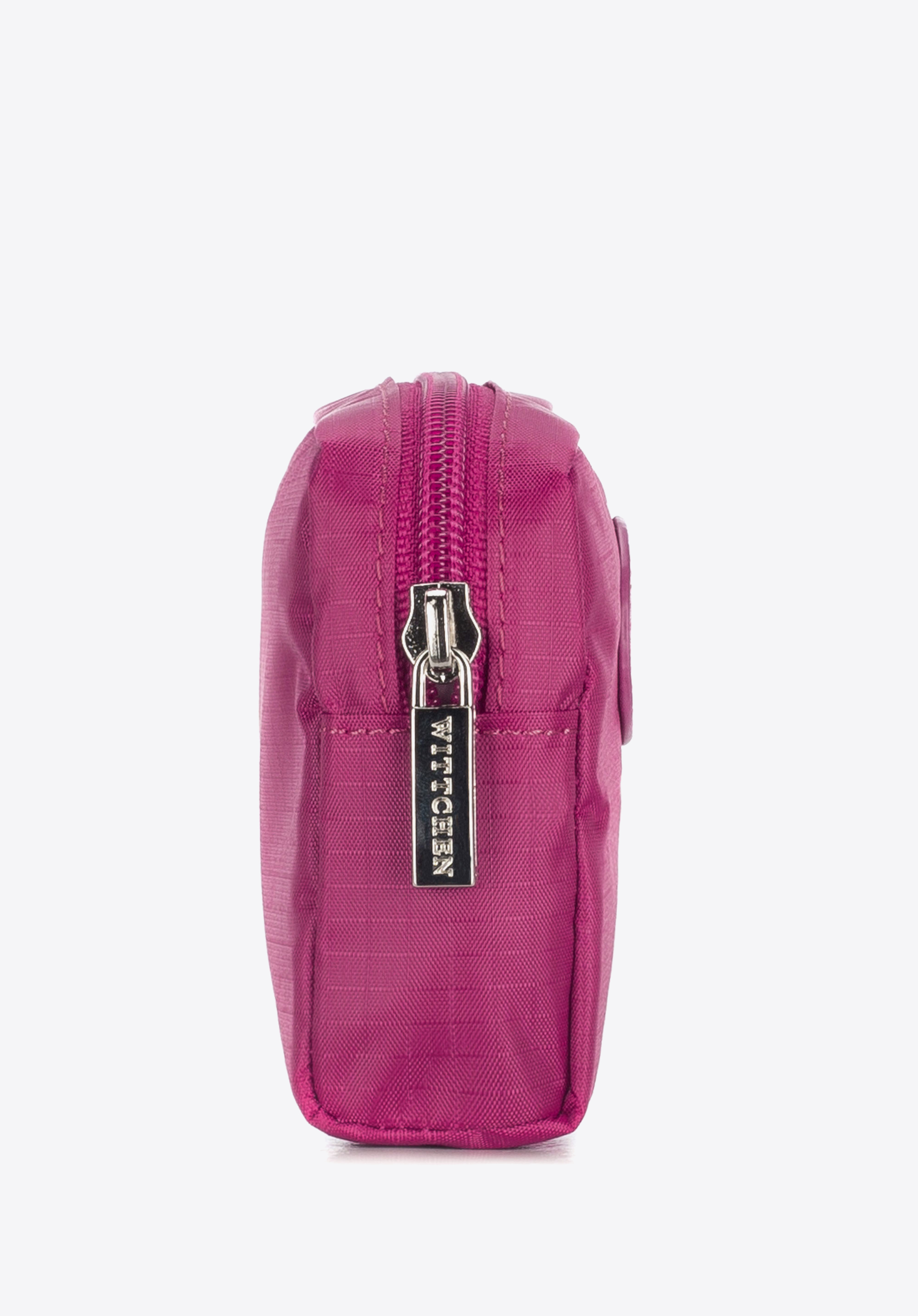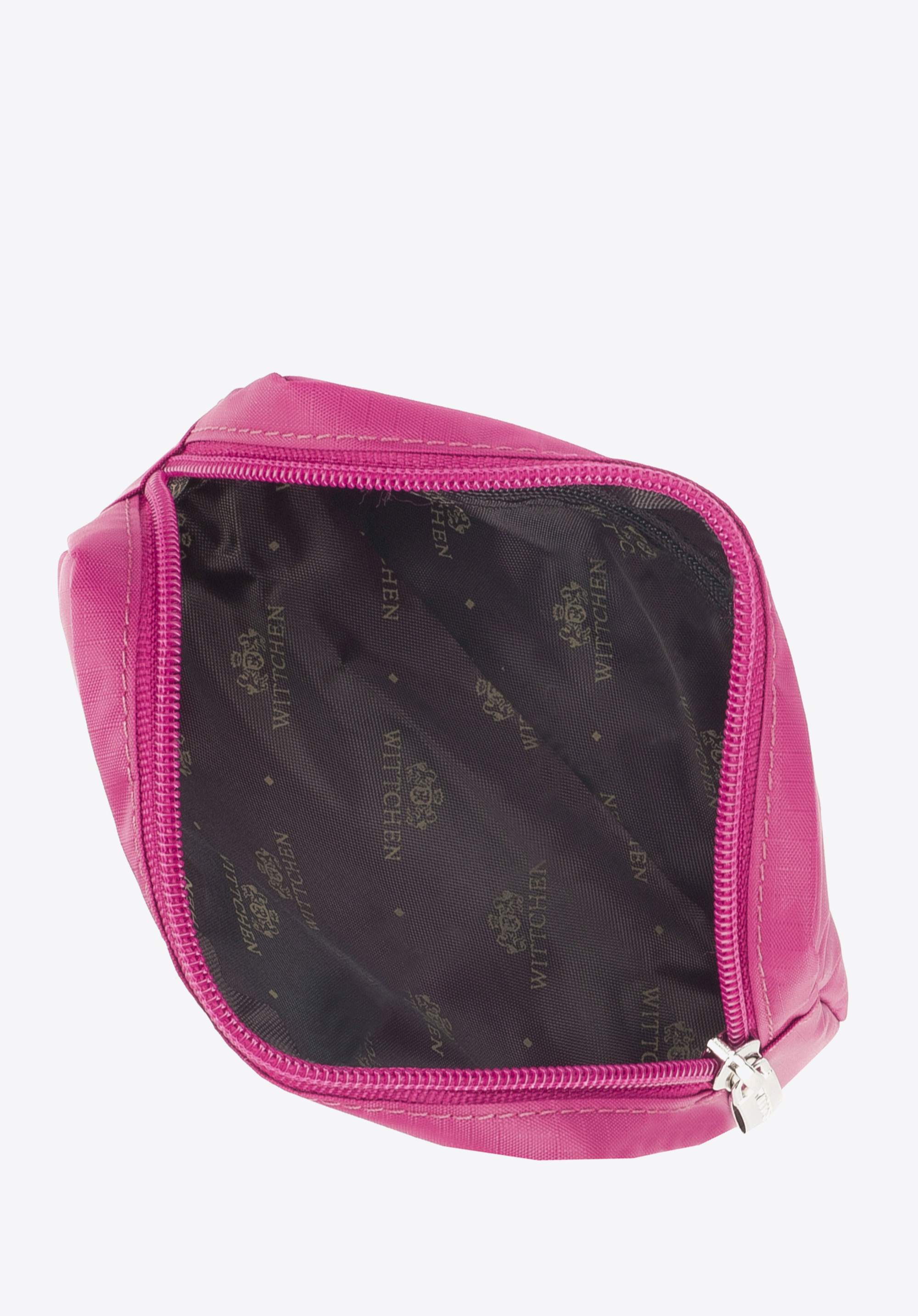 Diese kleine Kosmetiktasche ist ein praktisches Accessoire für jede Frau. Sie ist sorgfältig aus hochwertigem Polyester gefertigt und mit dem WITTCHEN-Logo auf dem Einsatz aus Öko-Leder verziert. Die Kosmetiktasche hat die kastenförmige Form und lässt sich mit einem praktischen Reißverschluss schließen. Im Inneren können Sie einige Ihrer Lieblingskosmetika unterbringen. Die kleine Kosmetiktasche für Damen ist ein großartiges Accessoire, das Sie in Ihrer Handtasche tragen können.
