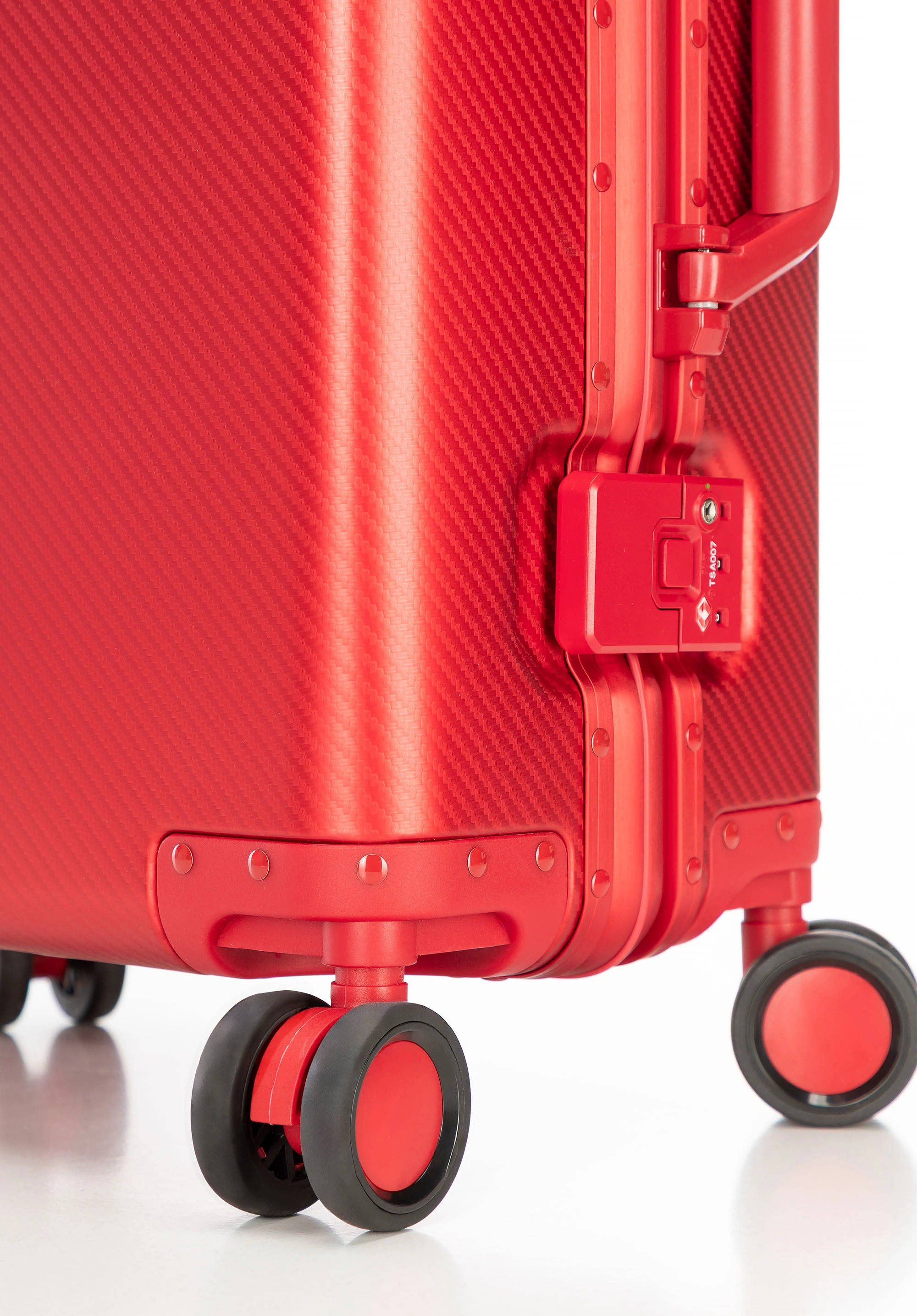 Design: Metalloberflächen und Eckverstärkungen schützen vor den Strapazen des Reisens.