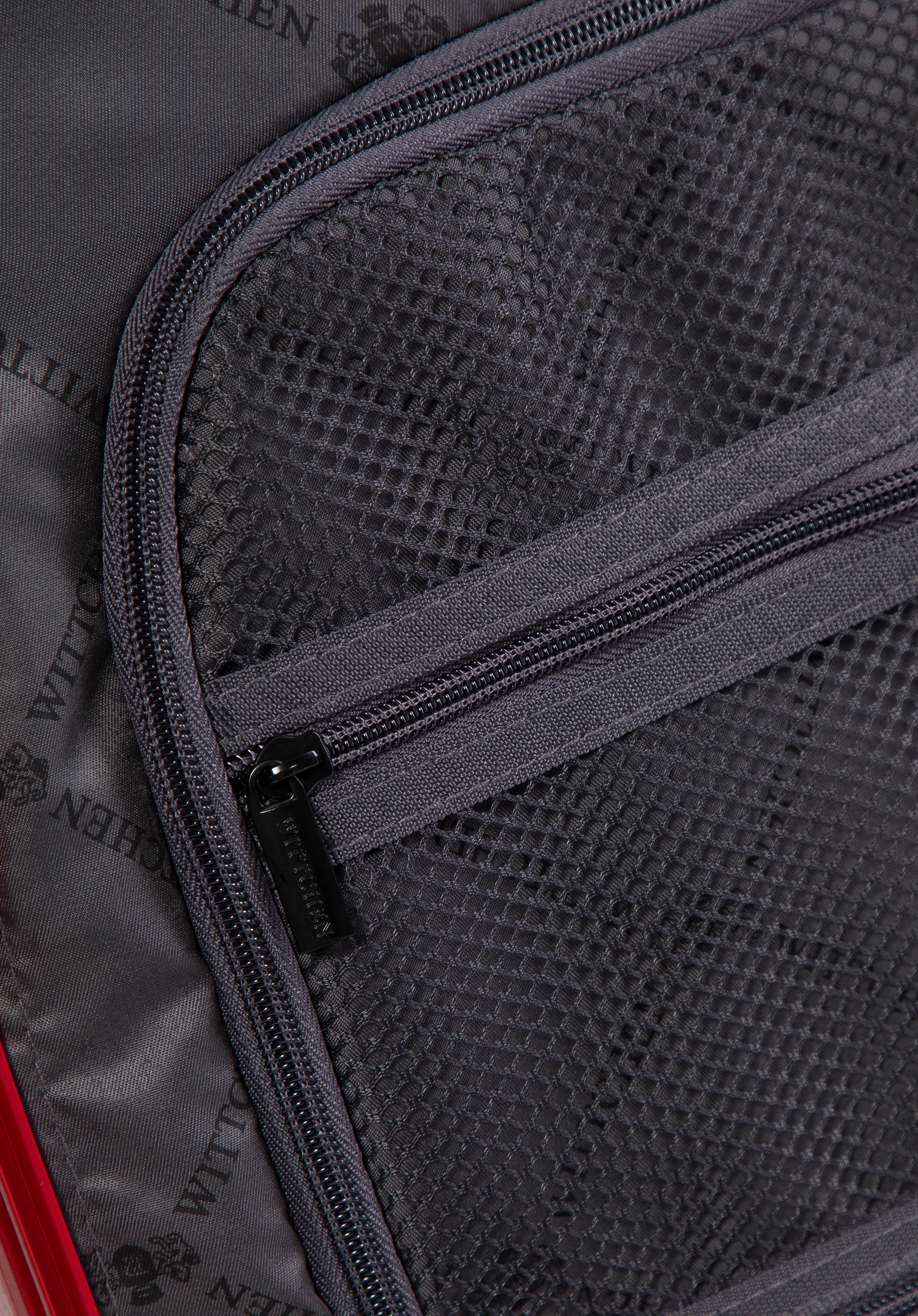 - Stabilität: Vier seitliche Standfüße sorgen für einen sicheren Stand des Koffers.