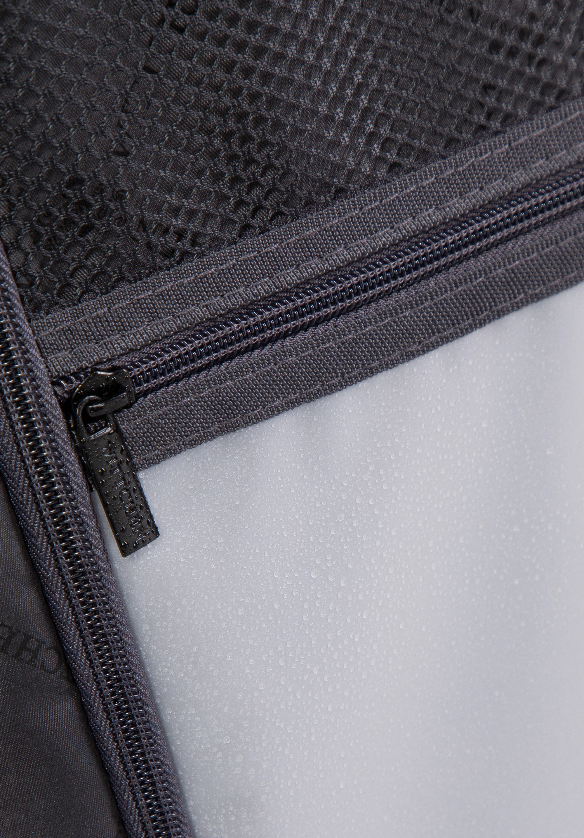 Praktische Innenausstattung: Ein Reißverschlussfach mit Netztasche und wasserdichtem PVC-Fach für Flüssigkeiten. Das andere Fach verfügt über verstellbare Gurte zur sicheren Aufbewahrung der Kleidung.