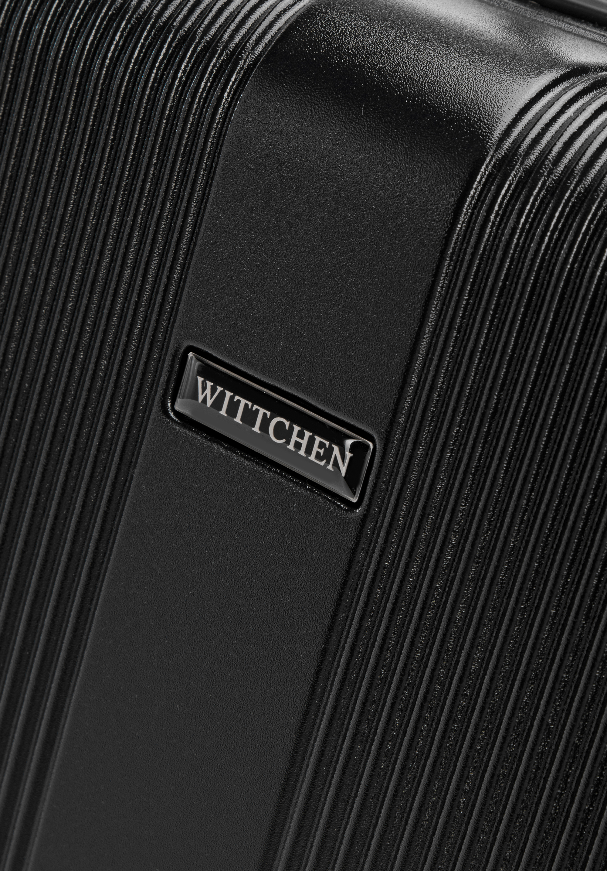 - Innenfutter: Der Koffer hat ein Innenfutter aus dunklem Polyester, das mit einem dezenten Herstellerlogo verziert ist.