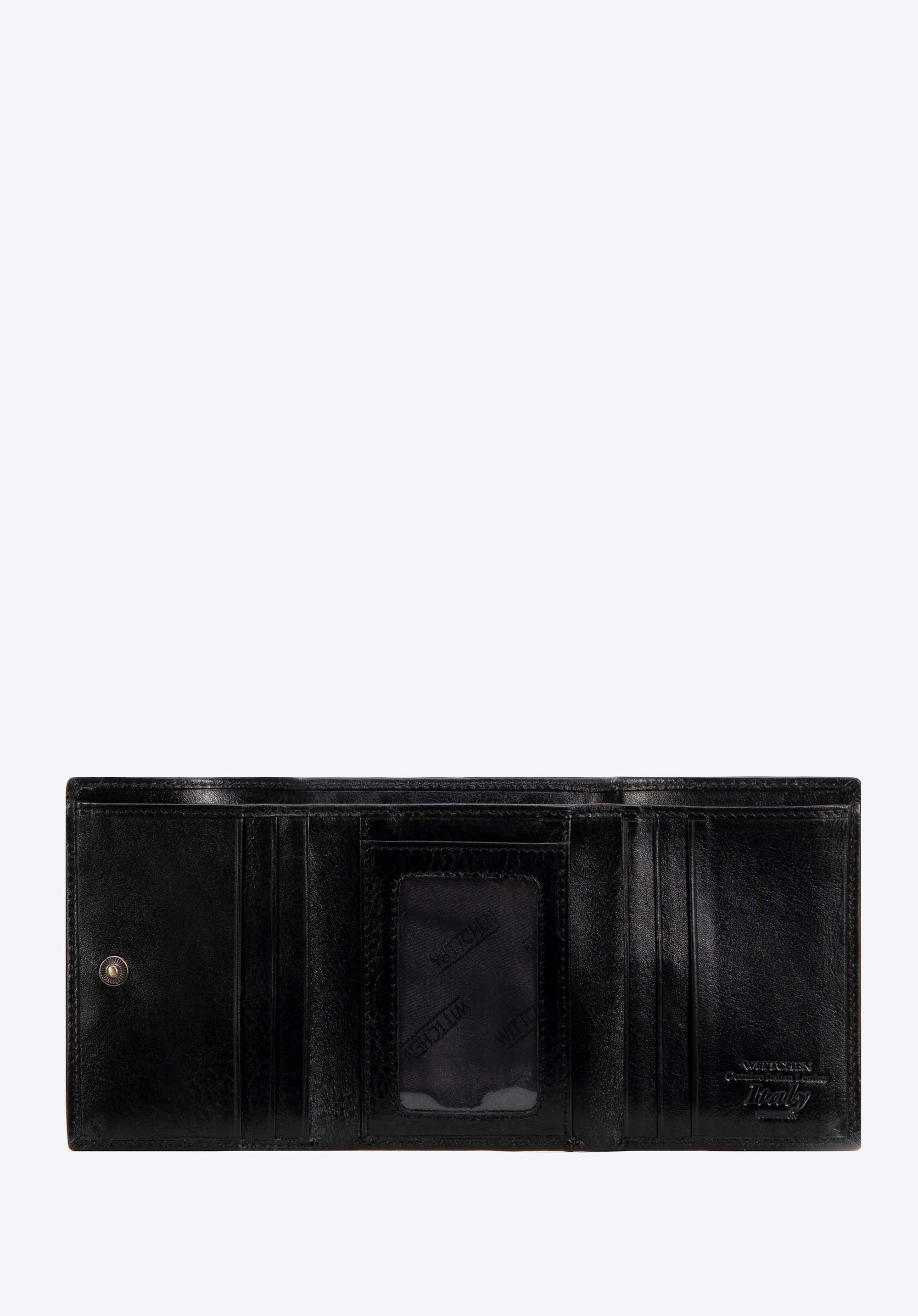 - Funktionale Innenausstattung: Zwei Scheinfächer, ein Münzfach mit Reißverschluss, vier Kreditkartenfächer und vier Steckfächer, davon ein Klarsichtfach.