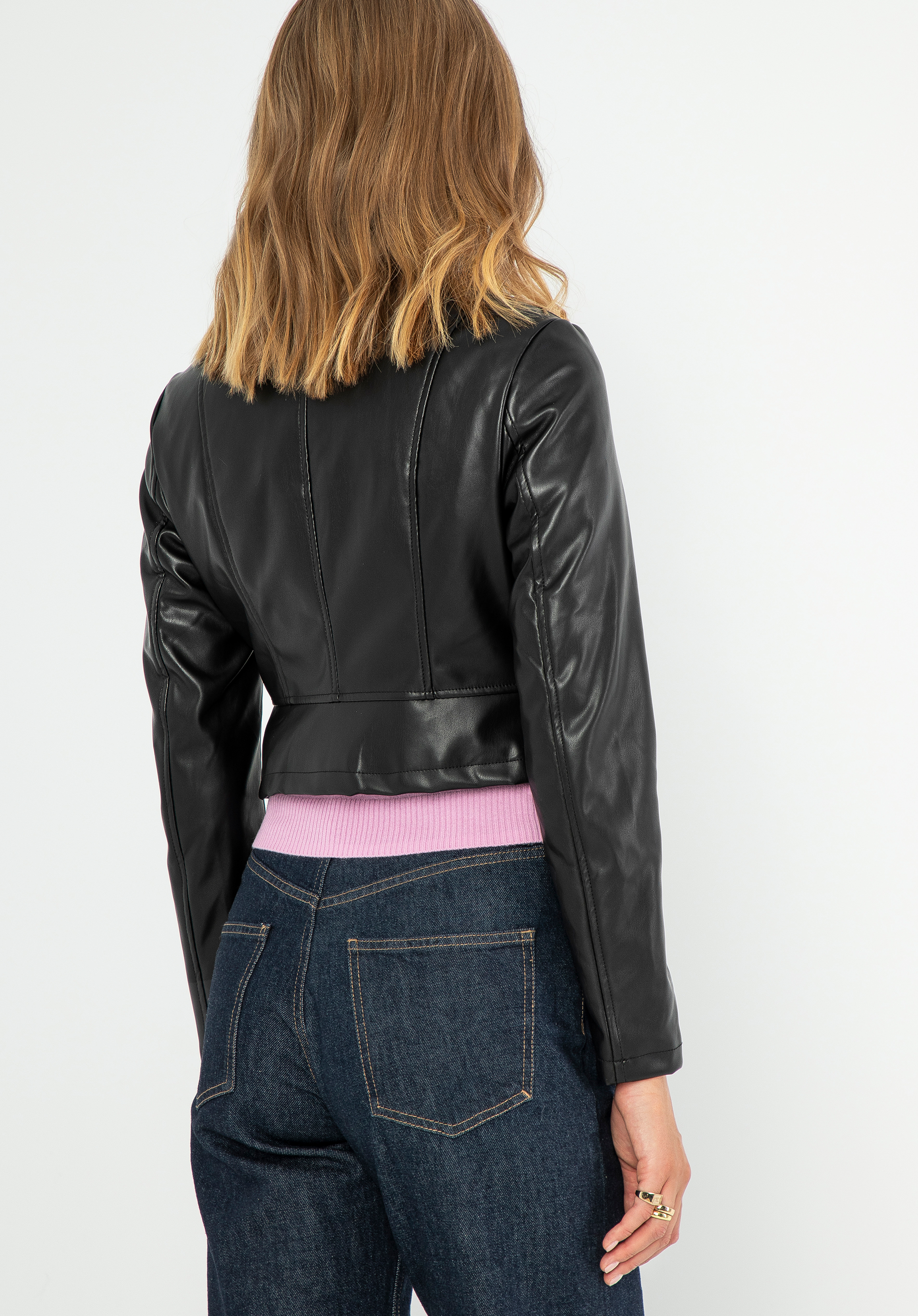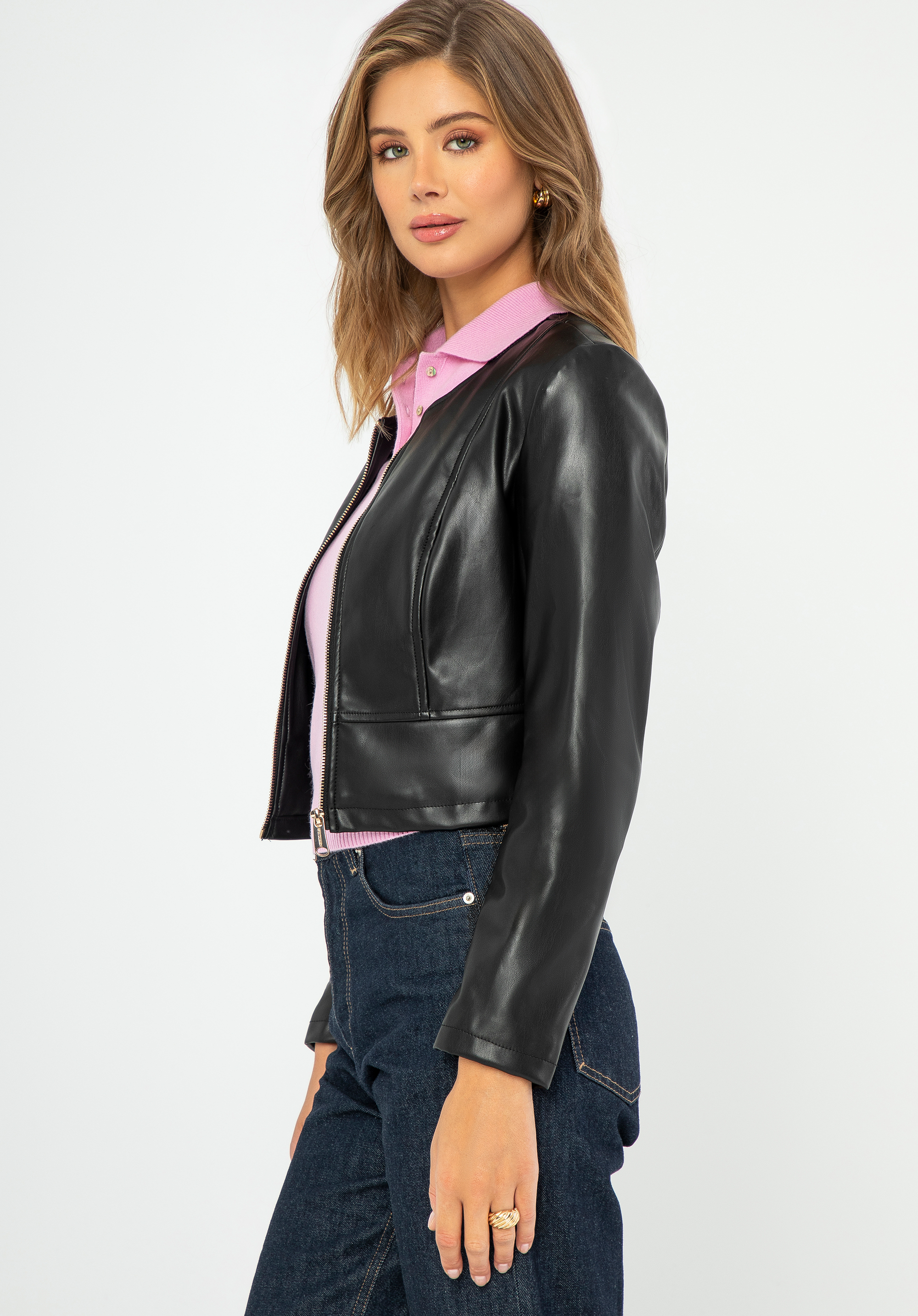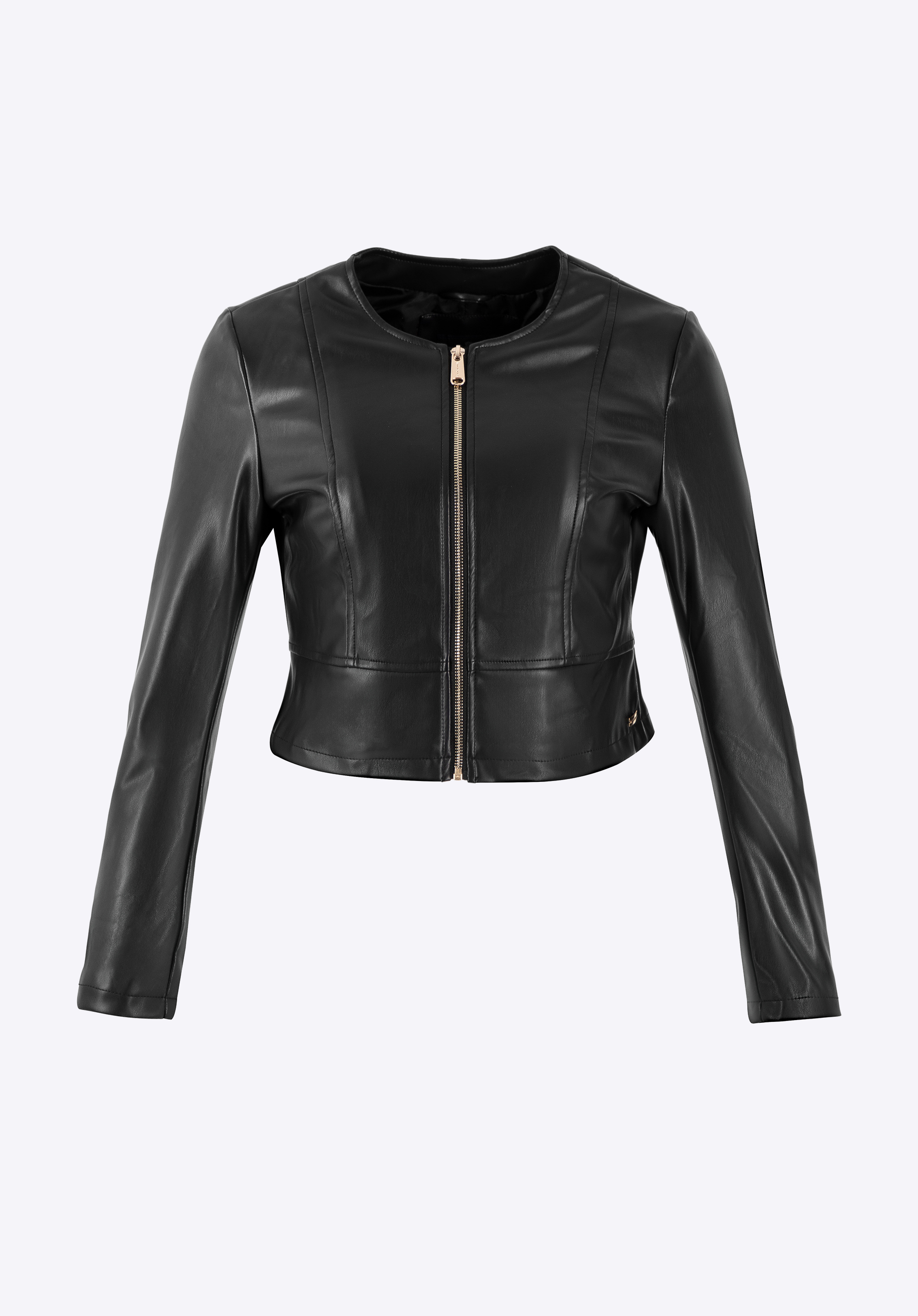 Entdecken Sie mit dieser Damenjacke aus Kunstleder eine neue Definition von Stil und Komfort. Diese Oberbekleidung ist eine perfekte Mischung aus klassischem und modernem Design, die problemlos in jede Garderobe passt. Egal, ob Sie zu einem Meeting gehen oder durch die Stadt schlendern, in dieser Jacke sehen Sie immer stilvoll aus und fühlen sich wohl. Das minimalistische , taschenfreie Finish und die subtilen Details verleihen ihr einen modernen Charakter und betonen Schlichtheit und Eleganz.