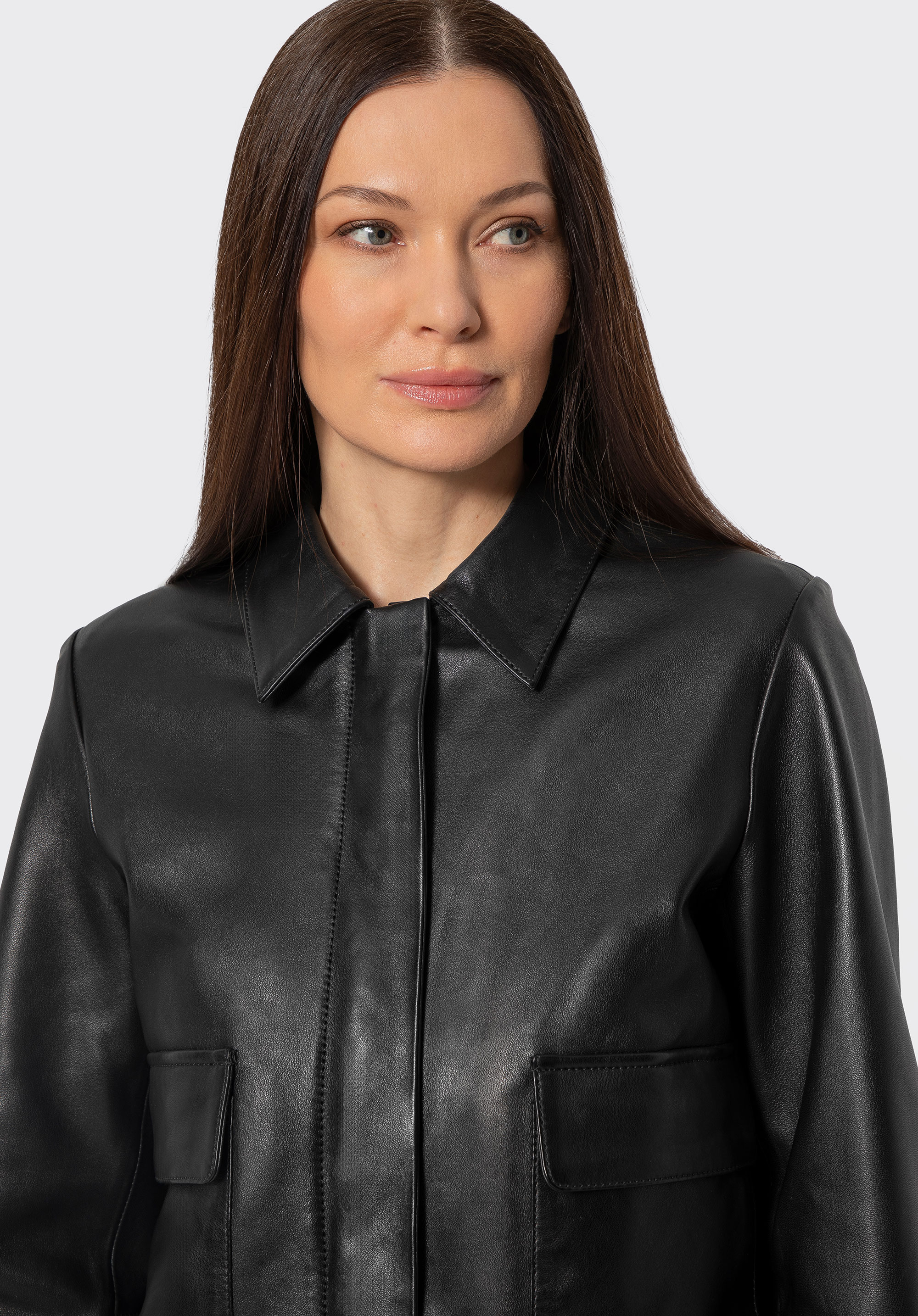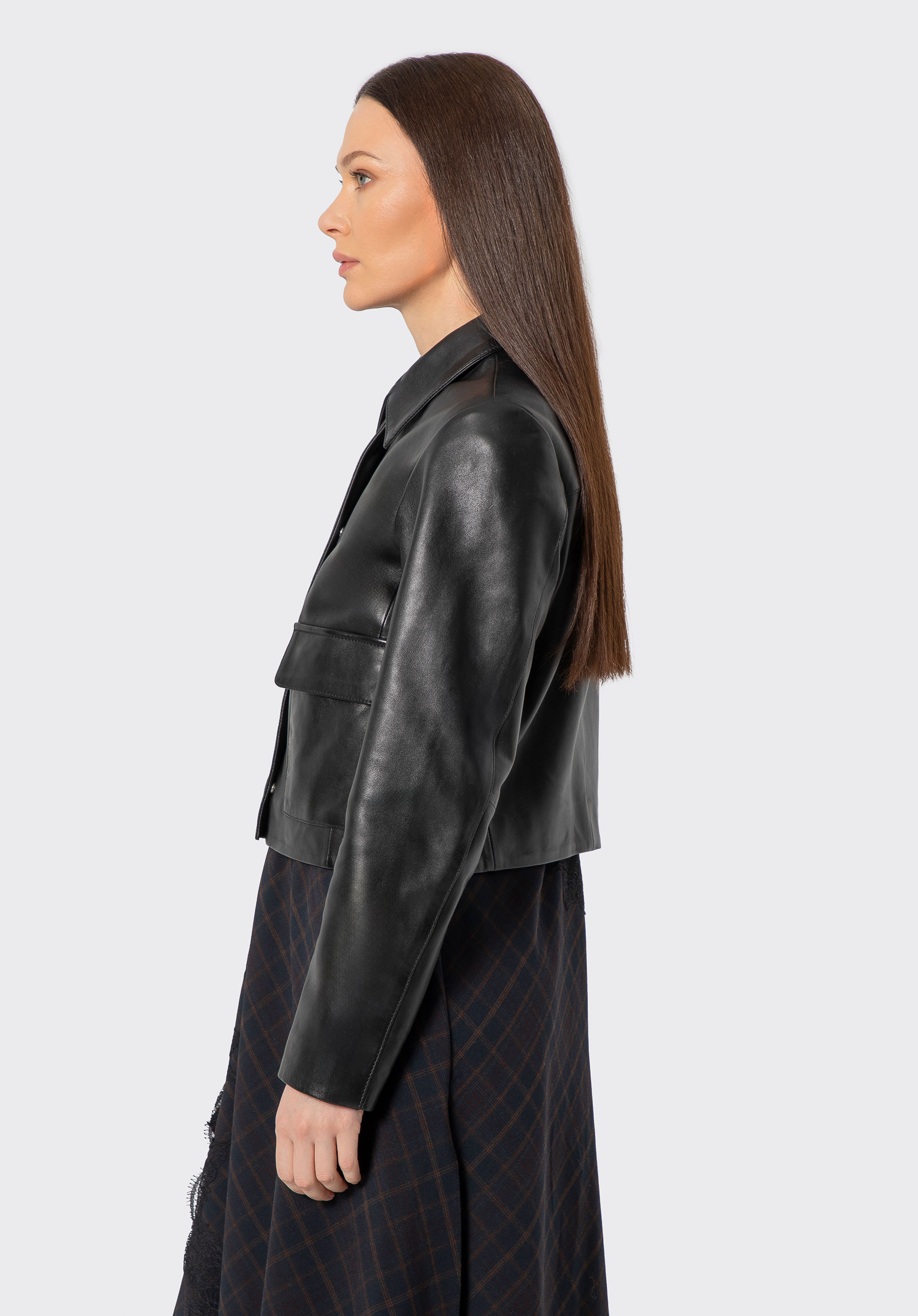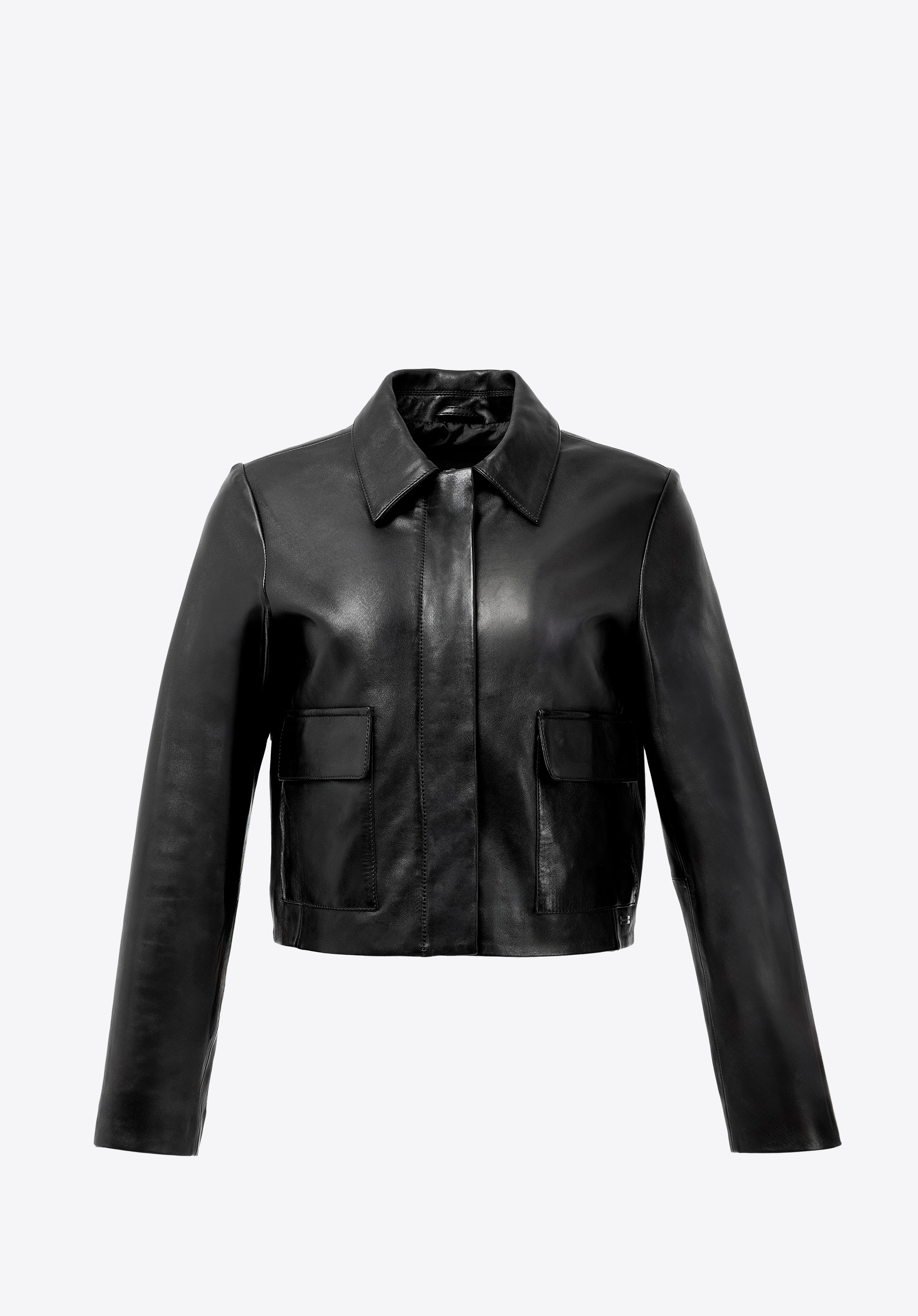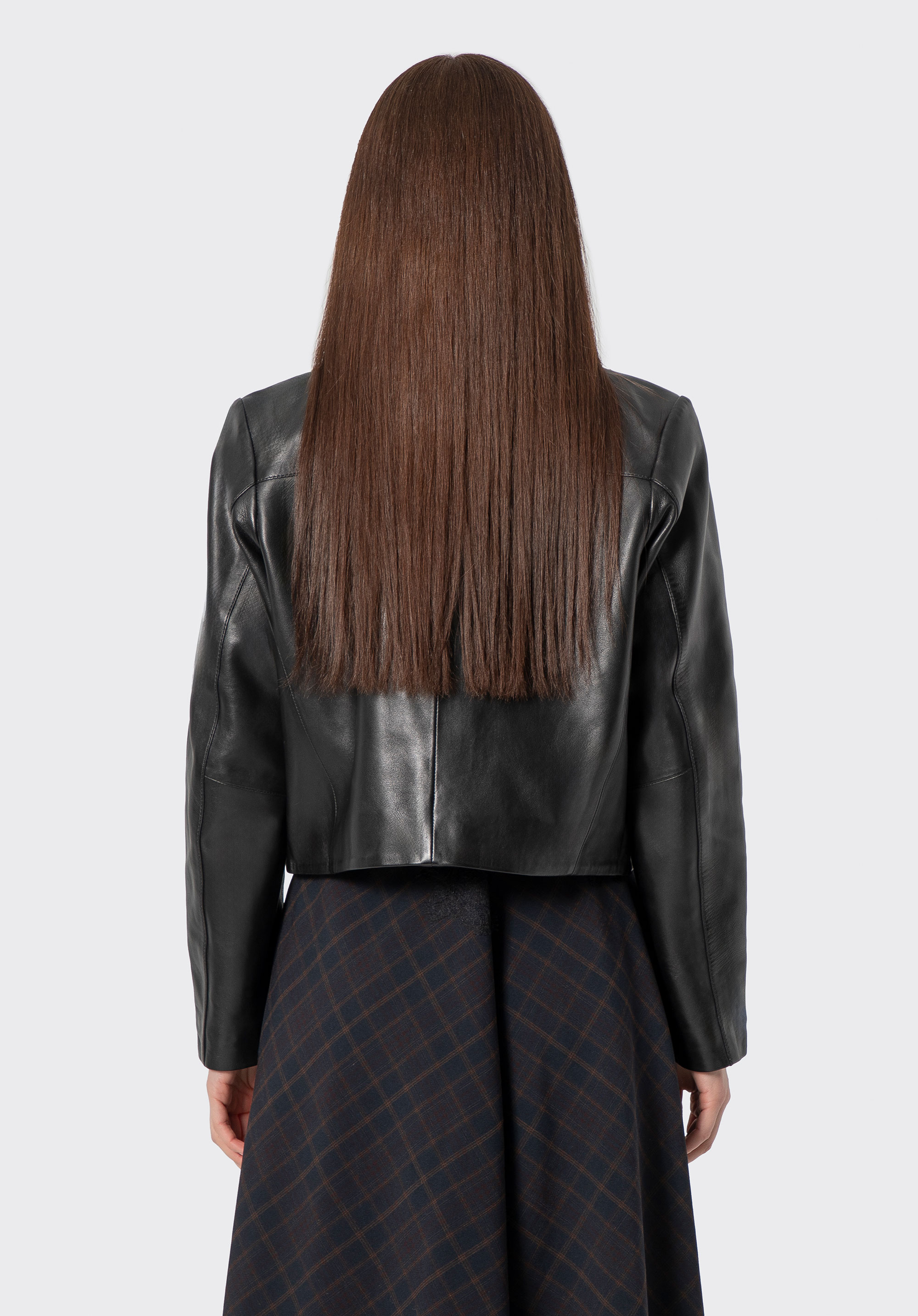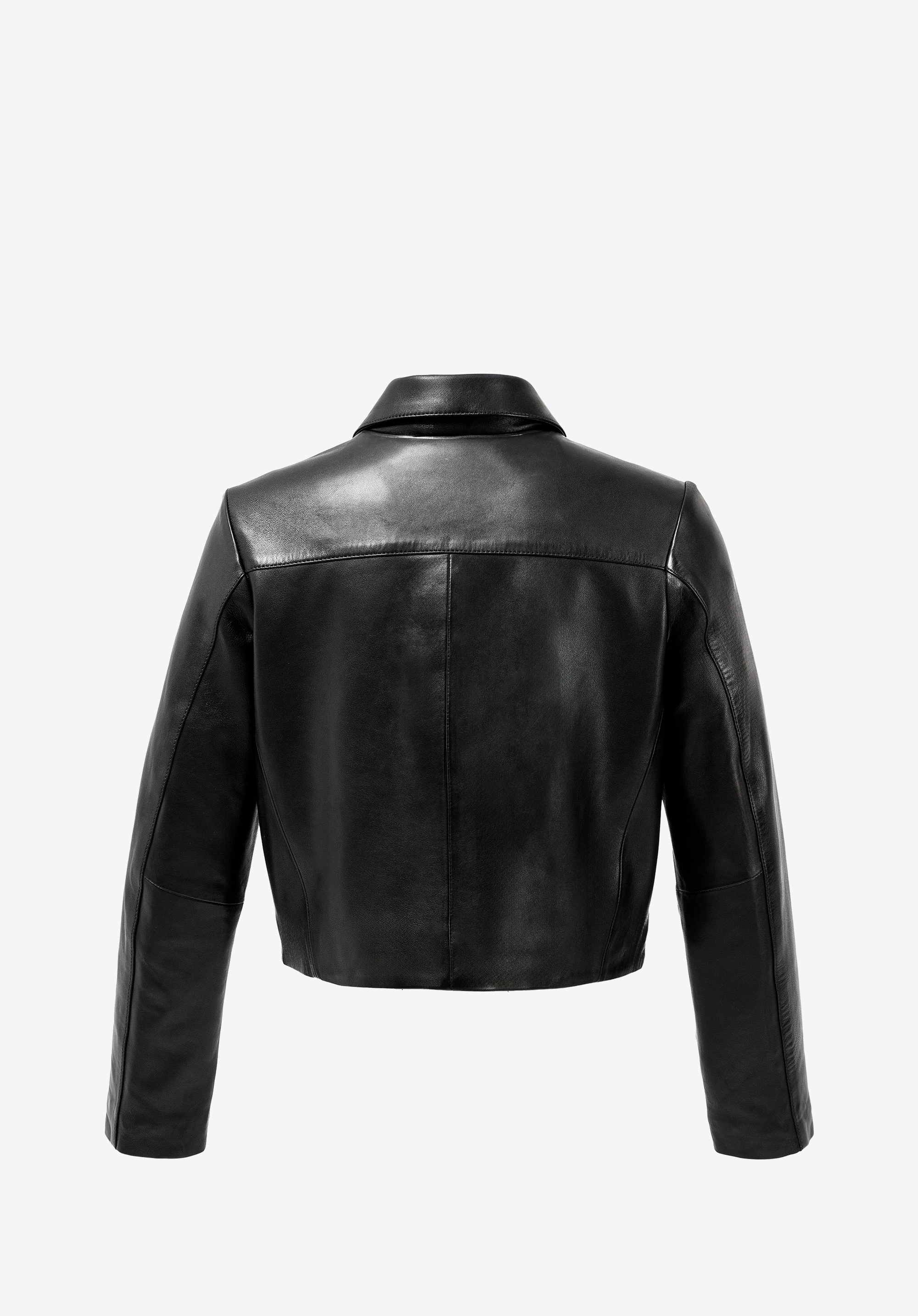 Zeitgenössischer Klassiker – kurze Lederjacke mit Umlegekragen