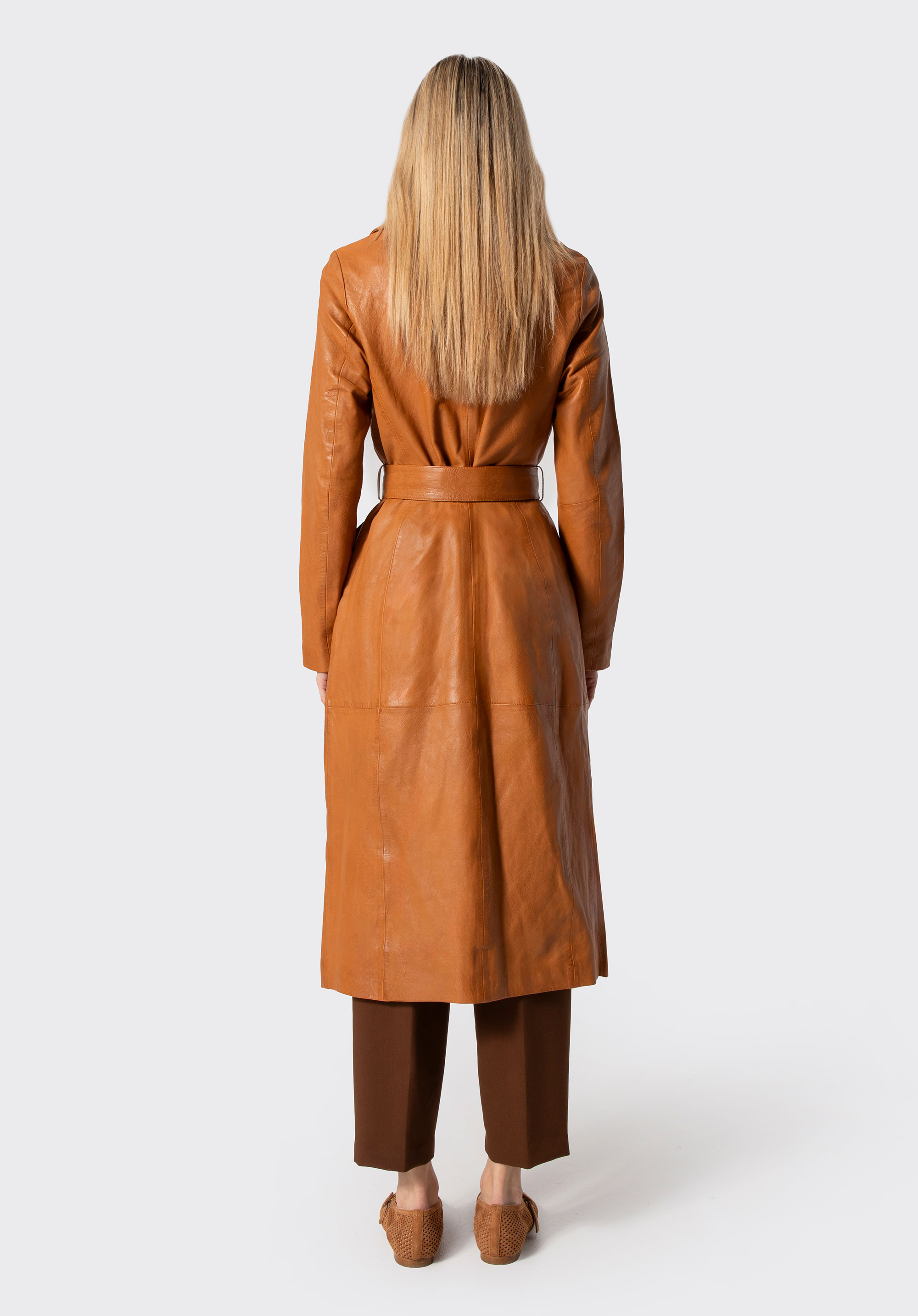 Verleihen Sie Ihrer Garderobe zeitlosen Stil mit unserem Damenmantel aus natürlichem Schafsleder – der Inbegriff von Eleganz und Komfort, der jedem Anlass Klasse verleiht. Dieser außergewöhnliche Mantel zeichnet sich durch einen dezenten und dennoch markanten Schnitt aus, der die Silhouette perfekt betont. Die Knöpfe sorgen für Schlichtheit, während der Umlegekragen für einen schicken und stilvollen Look sorgt und gleichzeitig vor kaltem Wind schützt. Er ist die perfekte Wahl für Frauen, die sowohl klassische Designs als auch moderne Akzente schätzen.