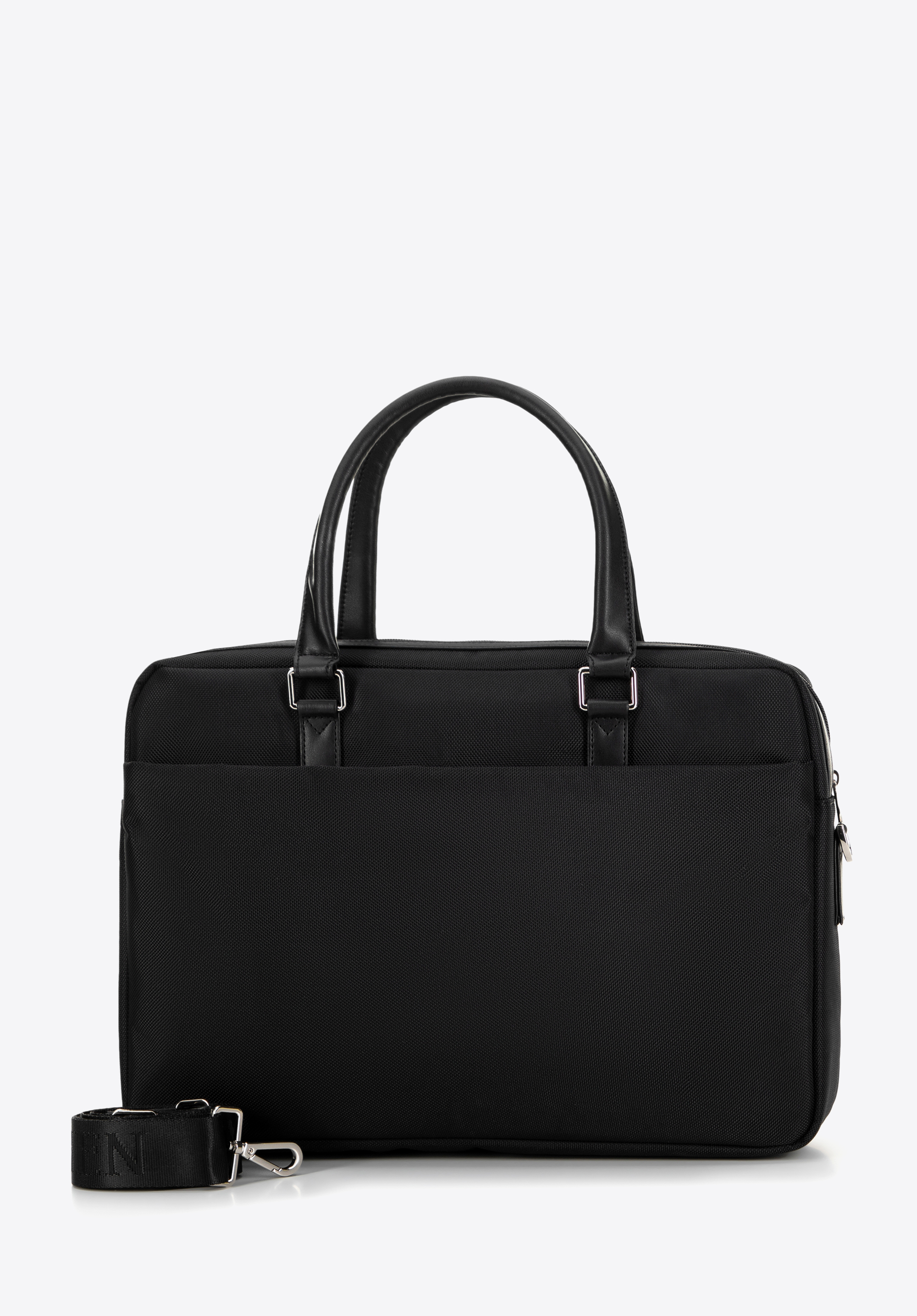 Diese elegante und äußerst praktische Laptoptasche erfüllt die Anforderungen aller, die Wert auf Komfort im Alltag legen. Sie besteht aus Polyester und Mikrofaser, ist strapazierfähig, pflegeleicht und so konzipiert, dass Sie Ihre wichtigsten Dinge ordentlich verstauen können. An der Außenseite befinden sich zwei Reißverschlusstaschen , die sich perfekt für den schnellen Zugriff auf wichtige Dinge eignen. Im Inneren bietet eine spezielle Tasche sicheren Stauraum für Laptops bis zu 17 Zoll .