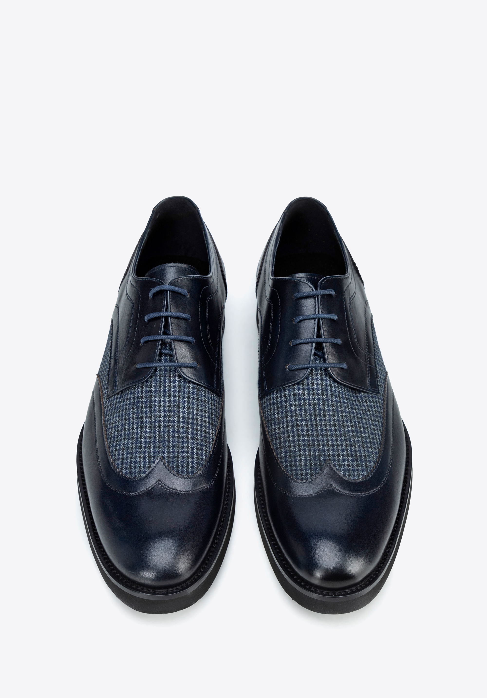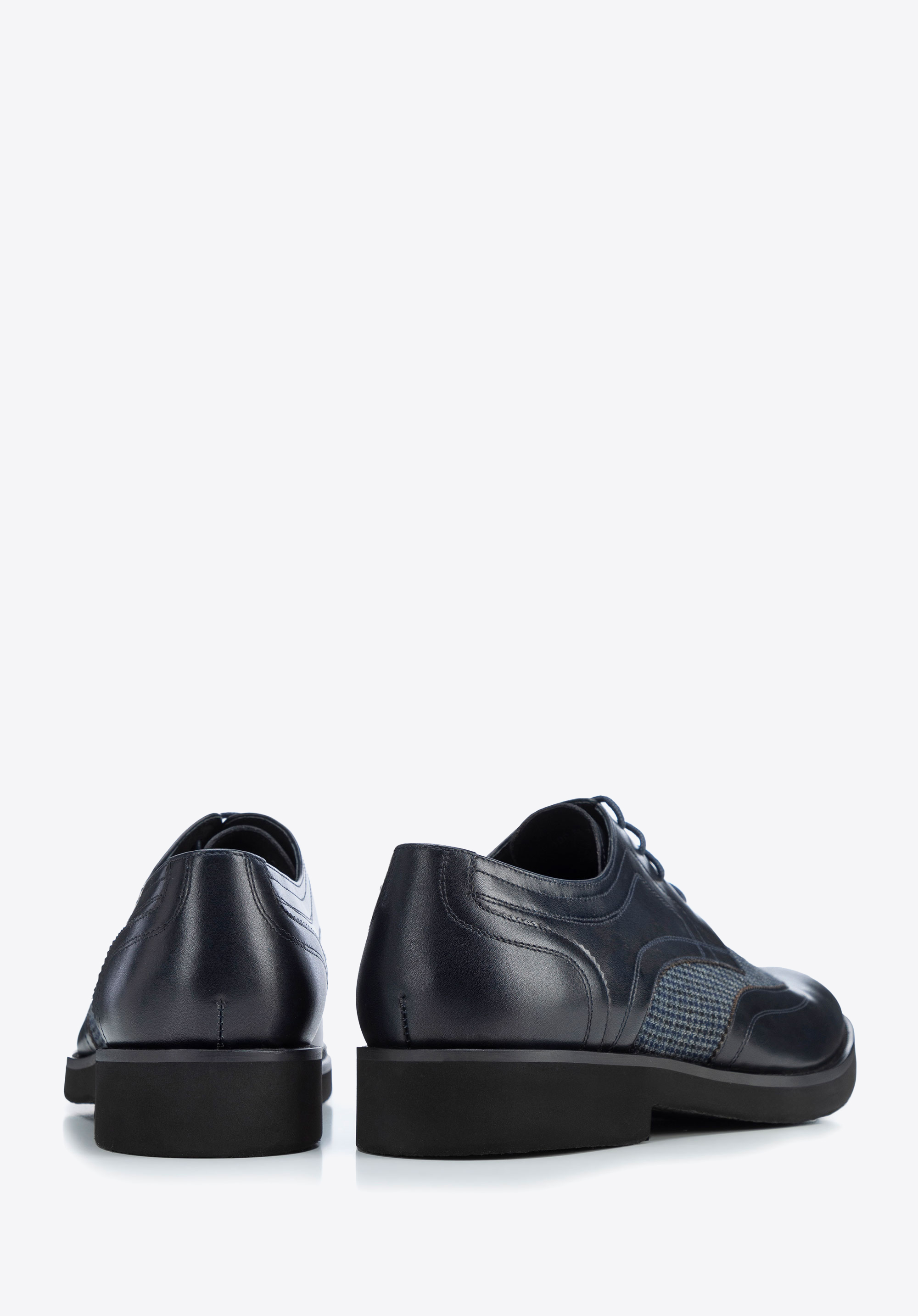 Leder-Derby mit Textildetails marineblau