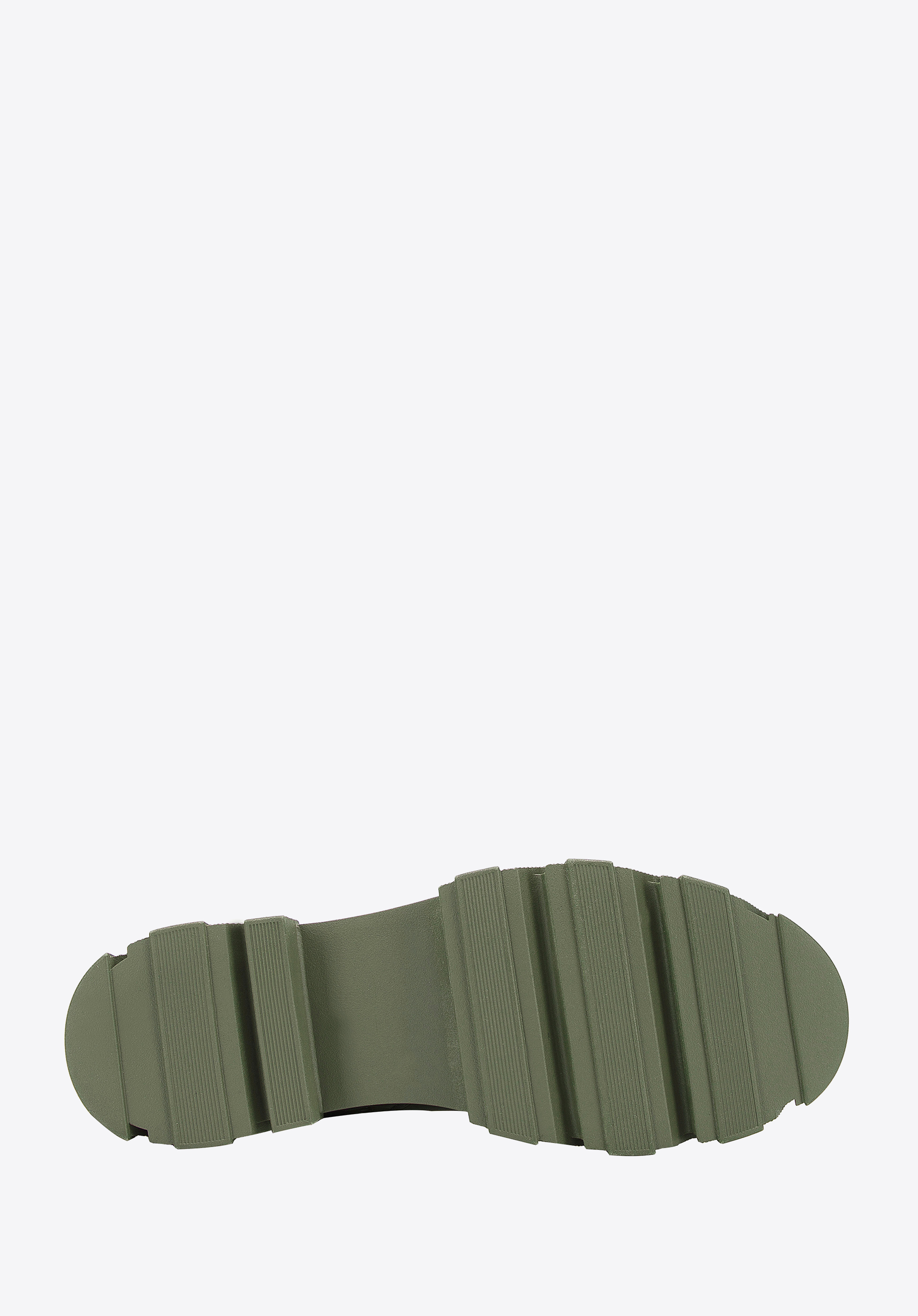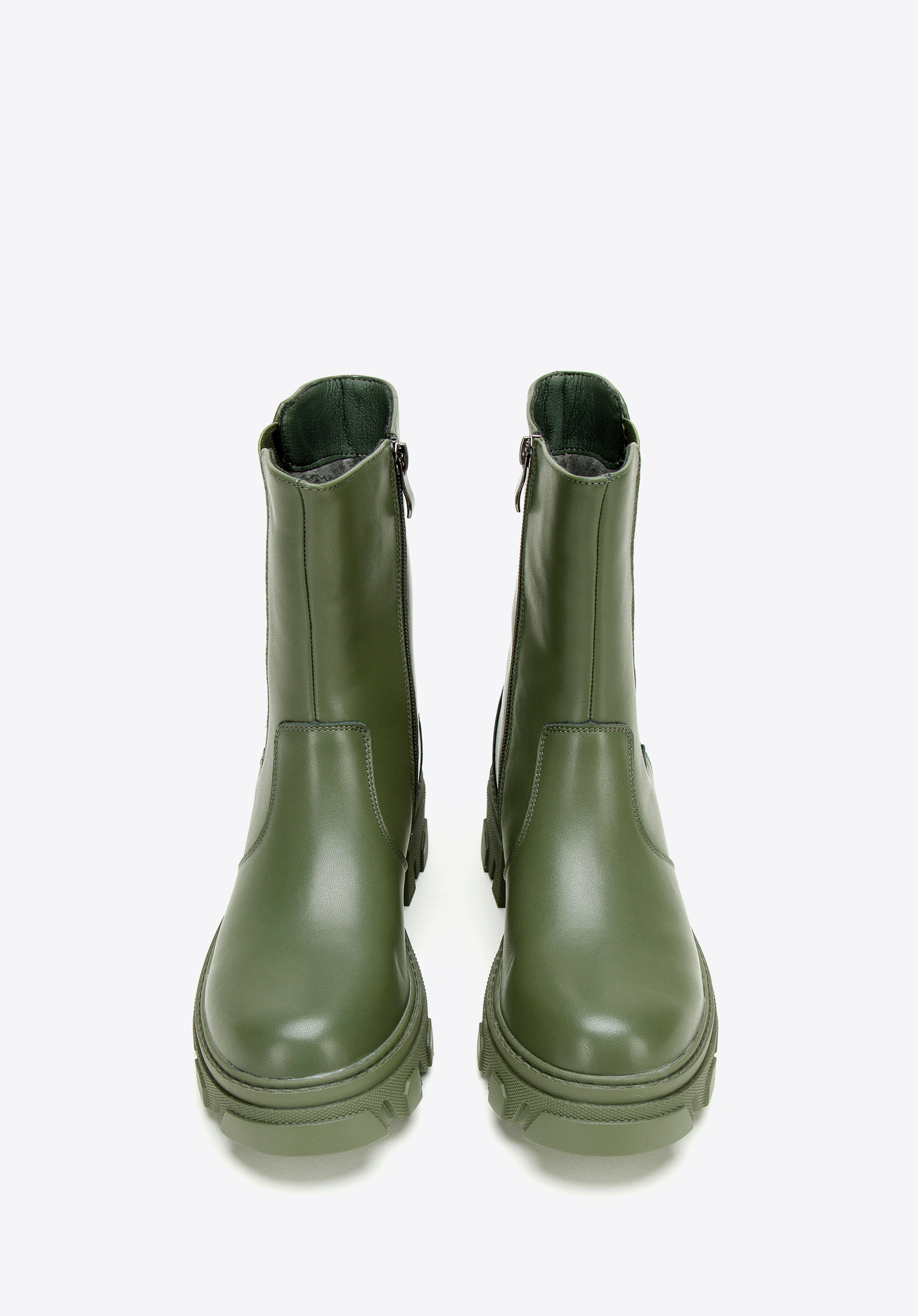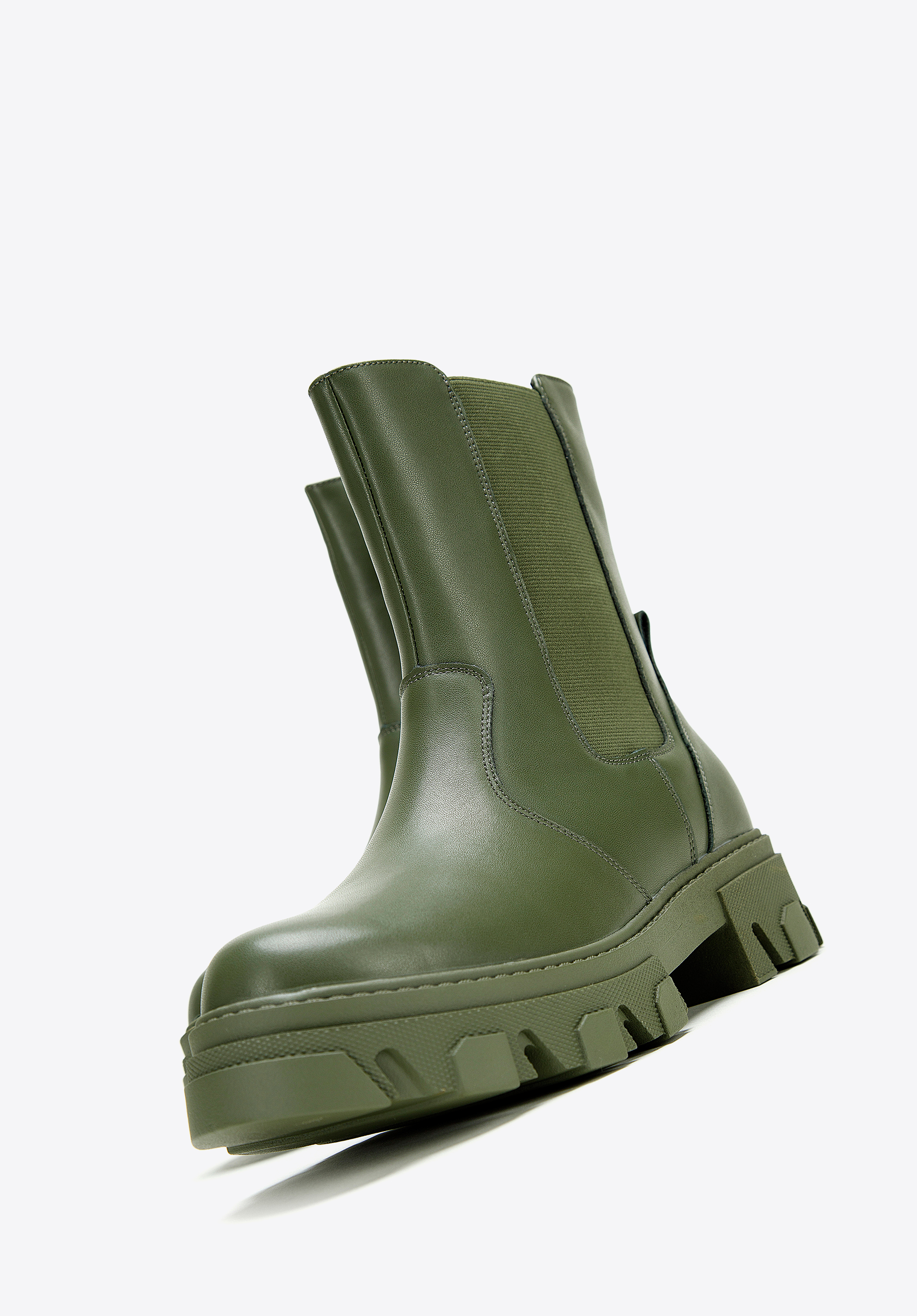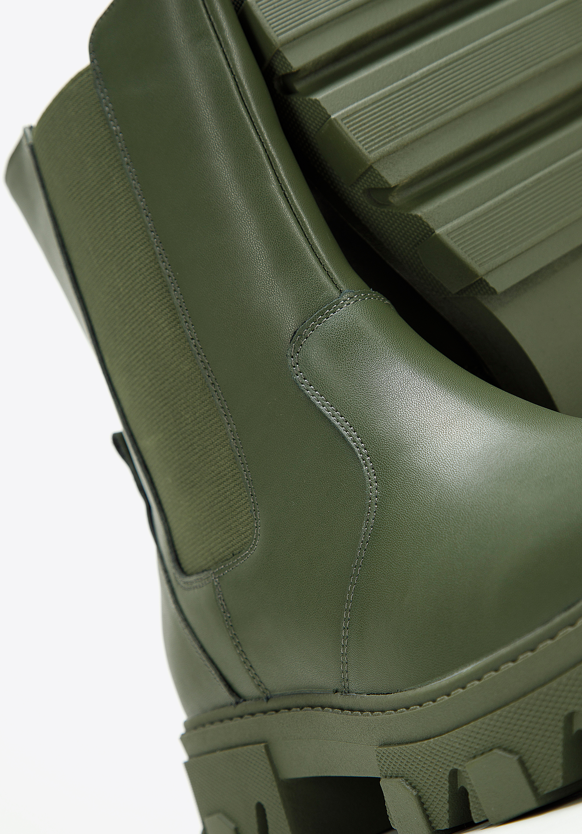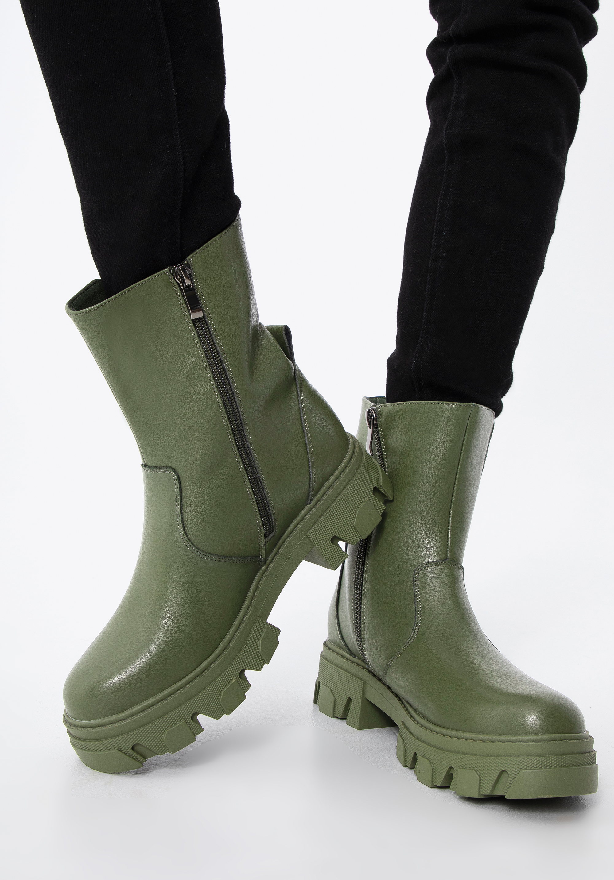 Schlichte Details lenken den Fokus auf das klobige Plateau dieser modernen Stiefelette. Eine Plateausohle verleiht jedem Look den perfekten Touch. Diese atemberaubenden Schuhe sind aus hochwertigem Naturleder gefertigt und verfügen über ein modisches Design, während die Innensohle aus Textil und Leder vor Witterungseinflüssen schützt. Dank des praktischen seitlichen Reißverschlusses für einfaches Anziehen sind sie der ideale Begleiter für Ihre Füße in den kalten Herbst- und Wintermonaten. Bringen Sie mit einem Paar klobiger Stiefeletten einen ausgefallenen Touch in Ihre Schuhkollektion.