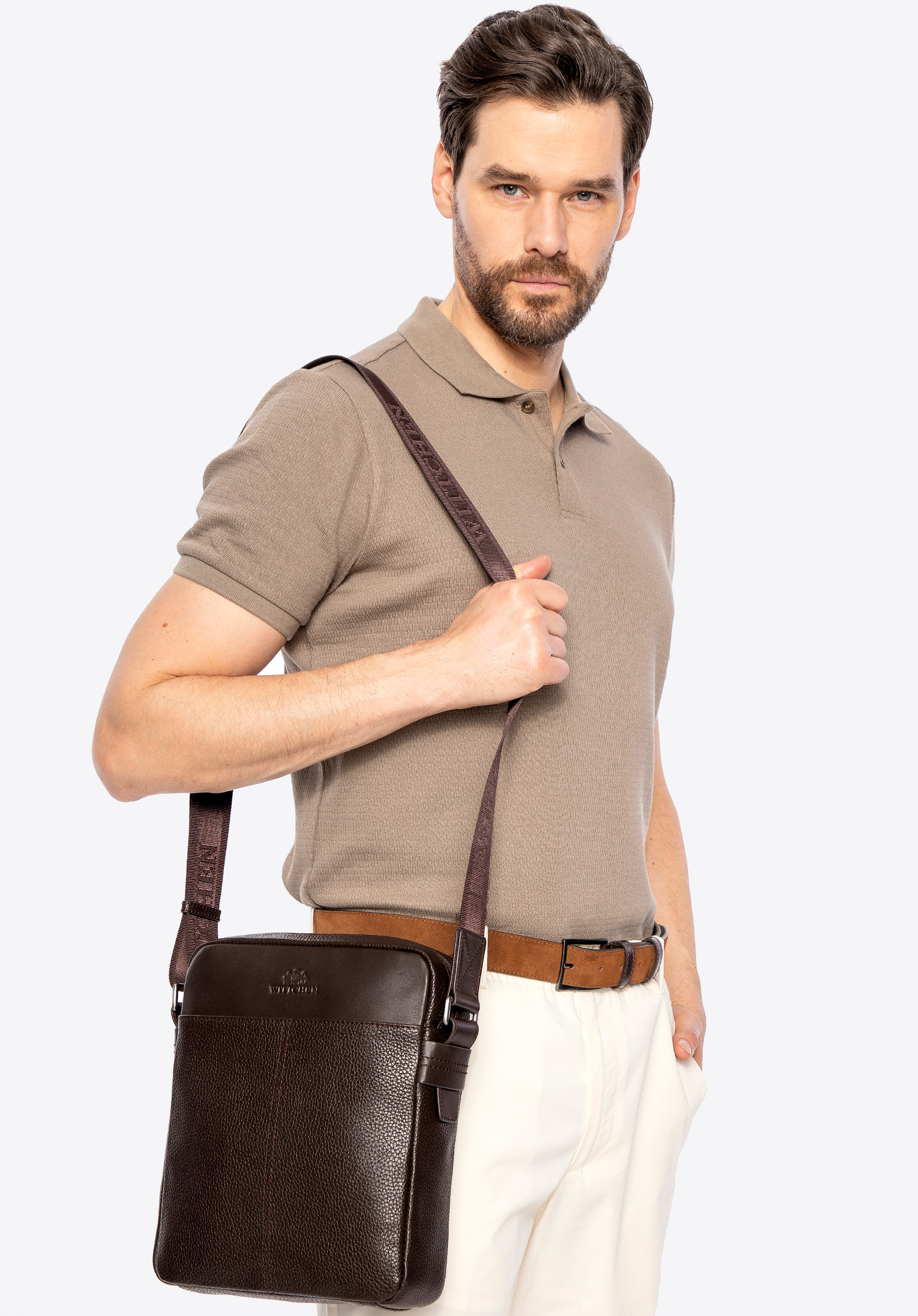 Die perfekte Verbindung von Klassik und Moderne – diese Herren-Umhängetasche aus echtem Leder besticht durch Stil und Funktionalität. Ihr modernes, minimalistisches Design mit dem Logo des Herstellers auf der Vorderseite unterstreicht Ihr Modebewusstsein. Der verstellbare Schulterriemen sorgt für optimalen Tragekomfort, während die durchdachte Fächeraufteilung – eine äußere Reißverschlusstasche auf der Körperseite sowie zwei Innentaschen, darunter eine mit Reißverschluss – eine hervorragende Organisation und schnellen Zugriff auf Ihre wichtigsten Utensilien ermöglicht.