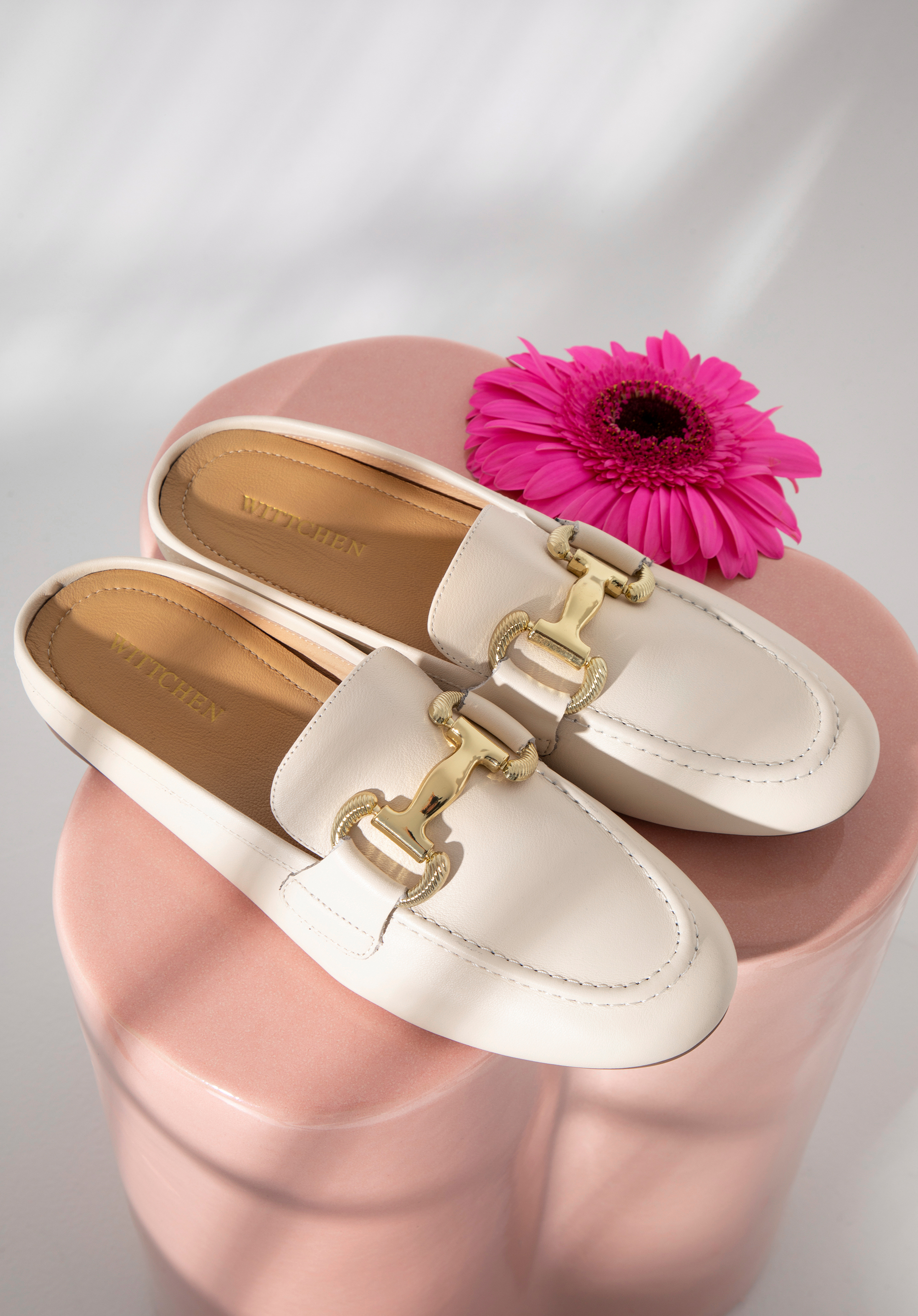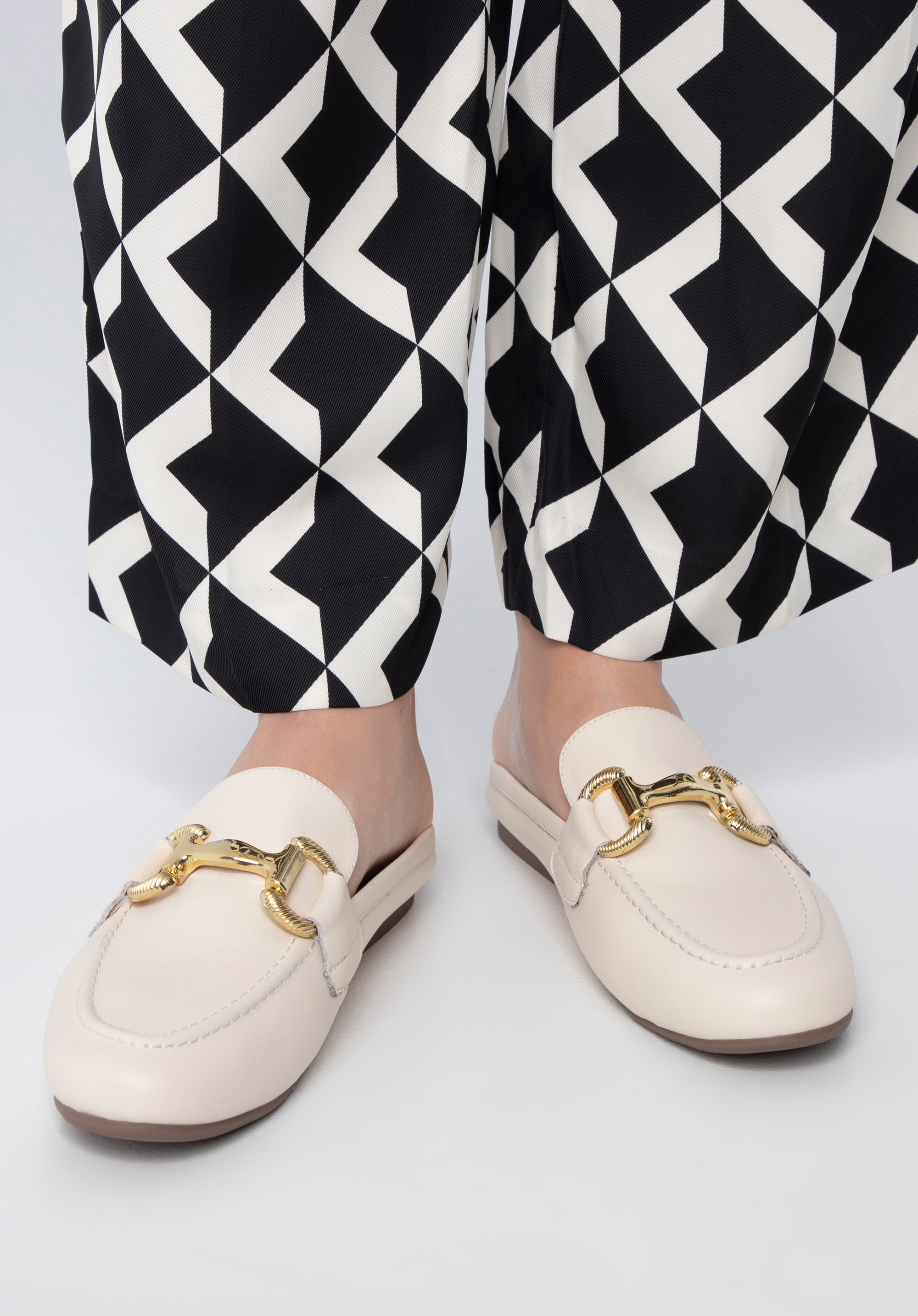 In diesen stilvollen Pantoletten werden Sie jeden Tag etwas Besonderes aussehen. Dieser elegante Gebiss-Slipper aus hochwertigem Naturleder verfügt über ein goldfarbenes Metallband (in Form eines Pferdegebisses) über dem Spann. Eine schmeichelnde runde Spitze verlängert Ihren Fuß und dank der Innensohle aus natürlichem Ziegenleder können Sie diese Pantoletten oft tragen. Damen -Slipper-Sandalen aus Leder zeichnen sich durch ein einzigartiges Design aus, das ein echter Hingucker ist. Kombinieren Sie diese Schuhe mit weiten Jeans oder einem Minikleid für zusätzlichen Reiz. In Kombination mit einem Paar dieser Slipper lässt sich ein raffinierter, eleganter Stil in jedes Outfit integrieren.