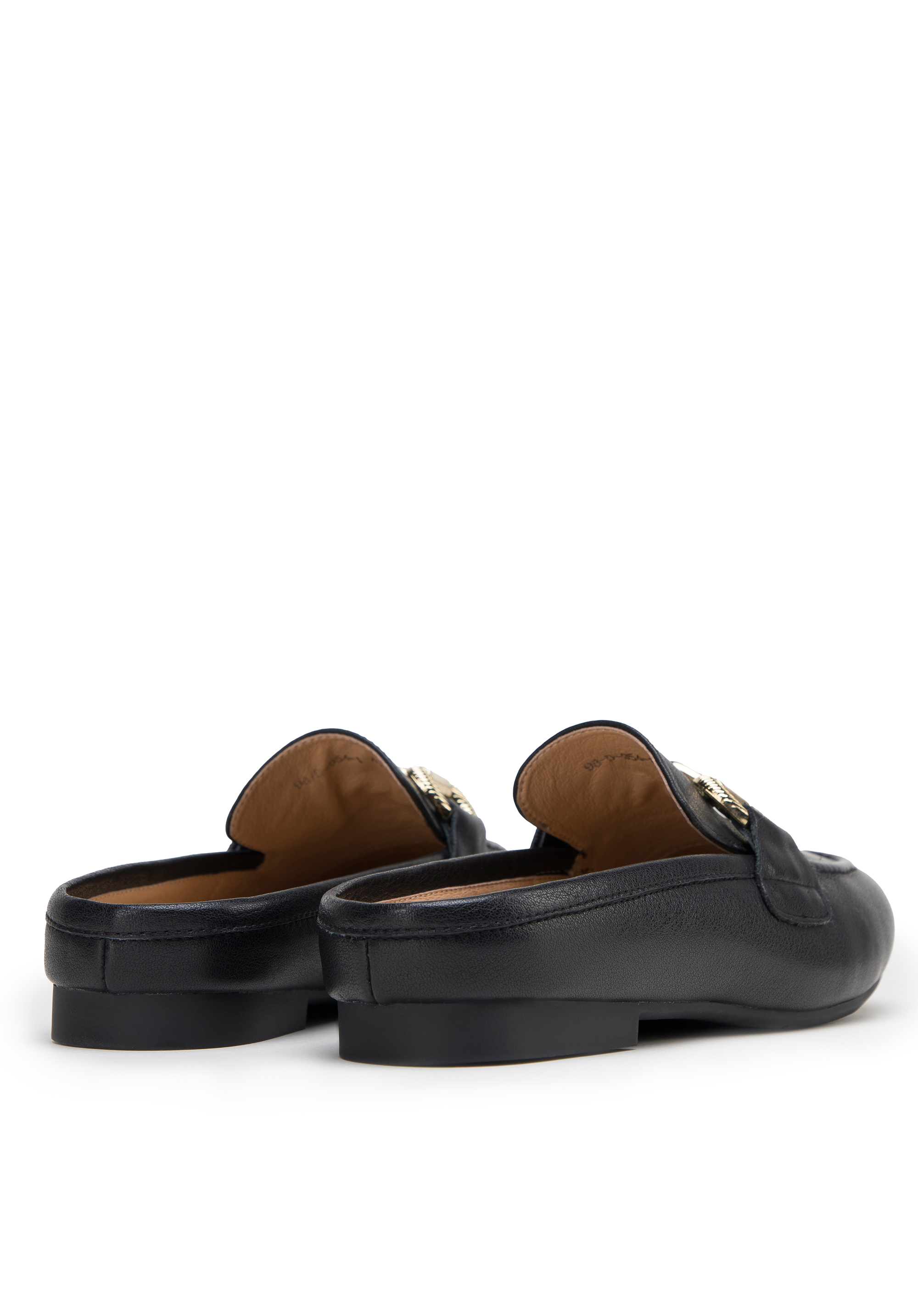 Lederpantoletten mit Schnallendetail Farbe: schwarz