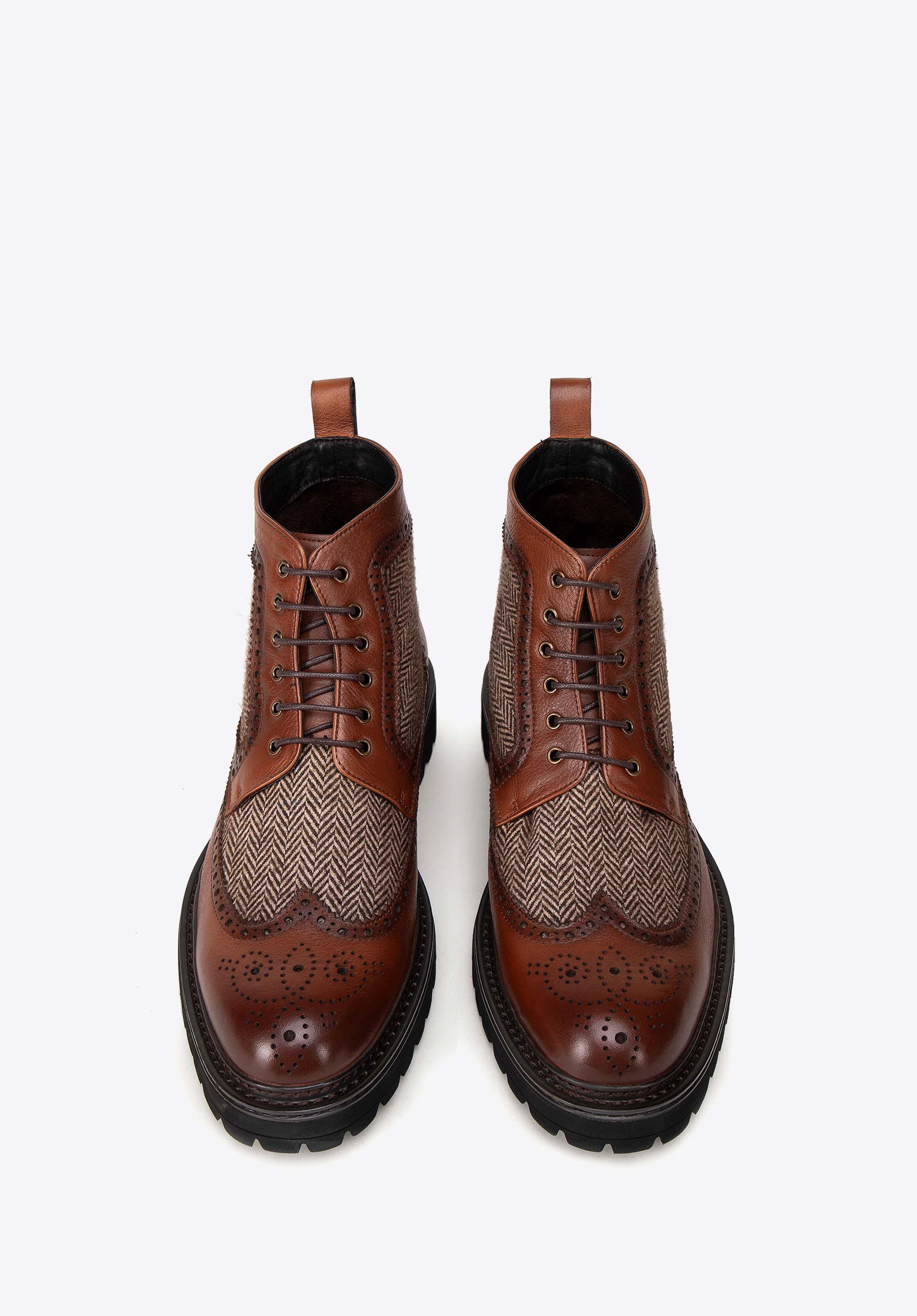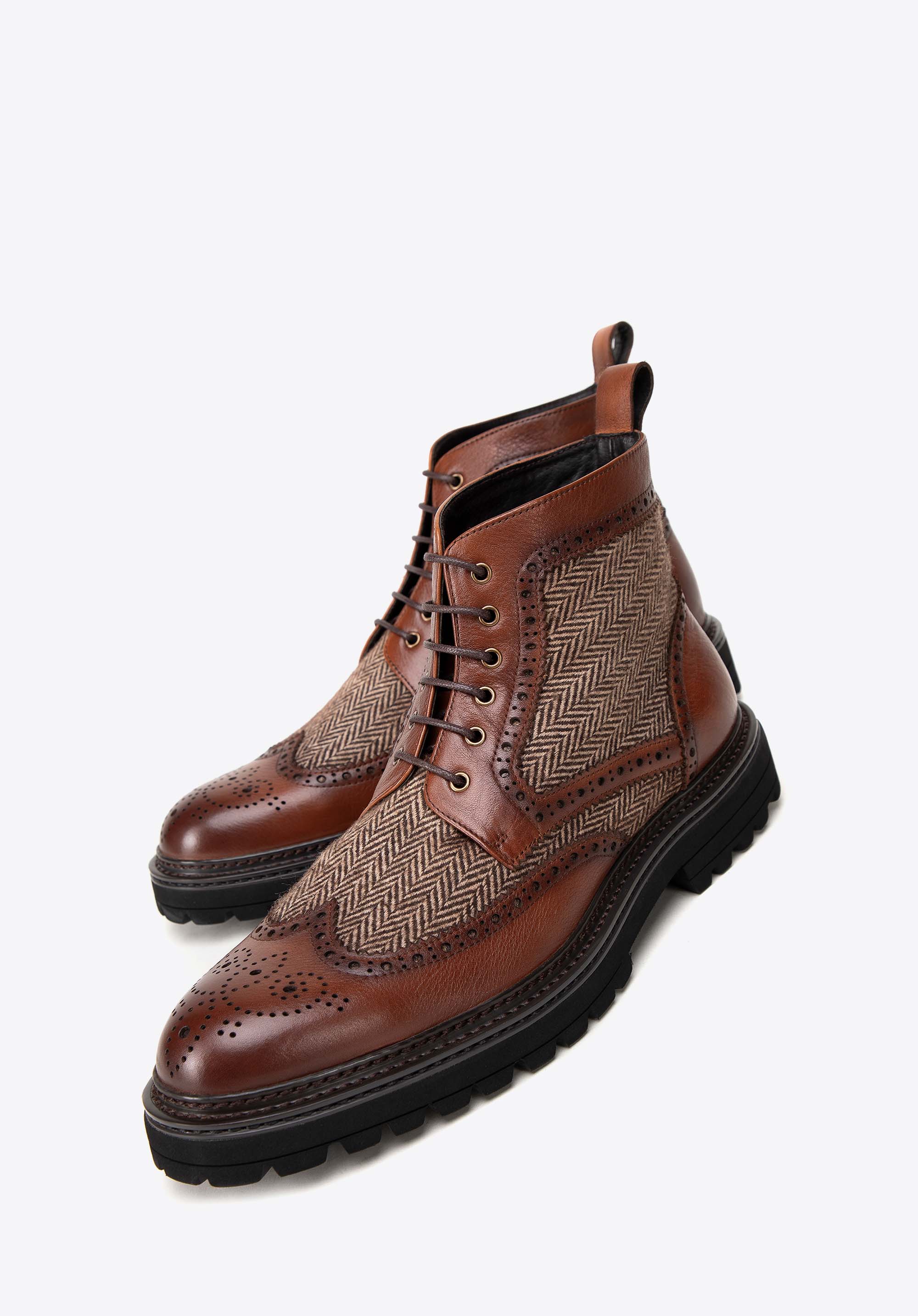Diese formellen Lederstiefel mit Stoffeinsätzen kombinieren einen klassischen Stil mit einem modernen Finish. Aus hochwertigem Naturleder und Textilmaterialien gefertigt, sind diese Schuhe die perfekte Wahl für Männer, die Eleganz und Komfort schätzen.