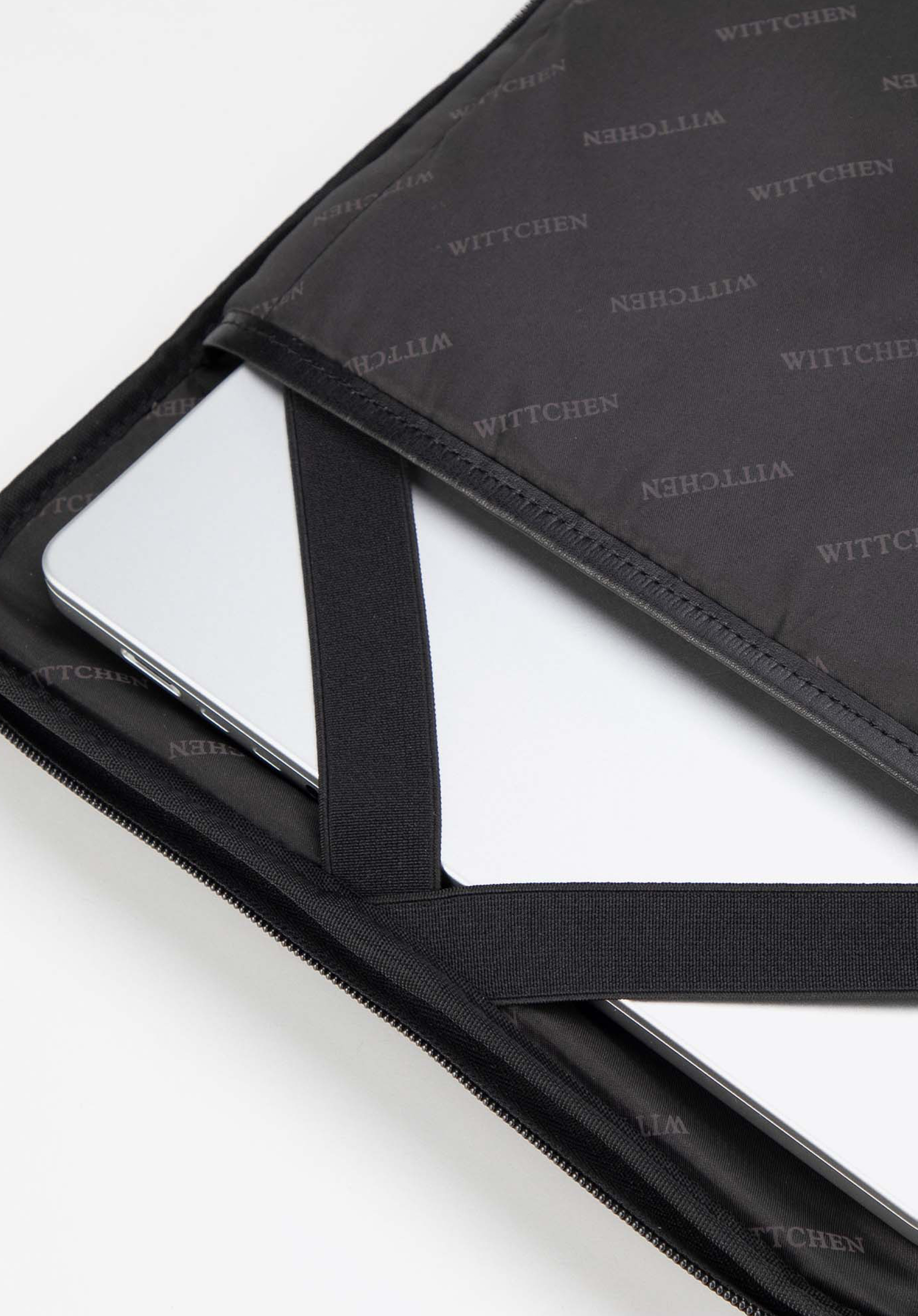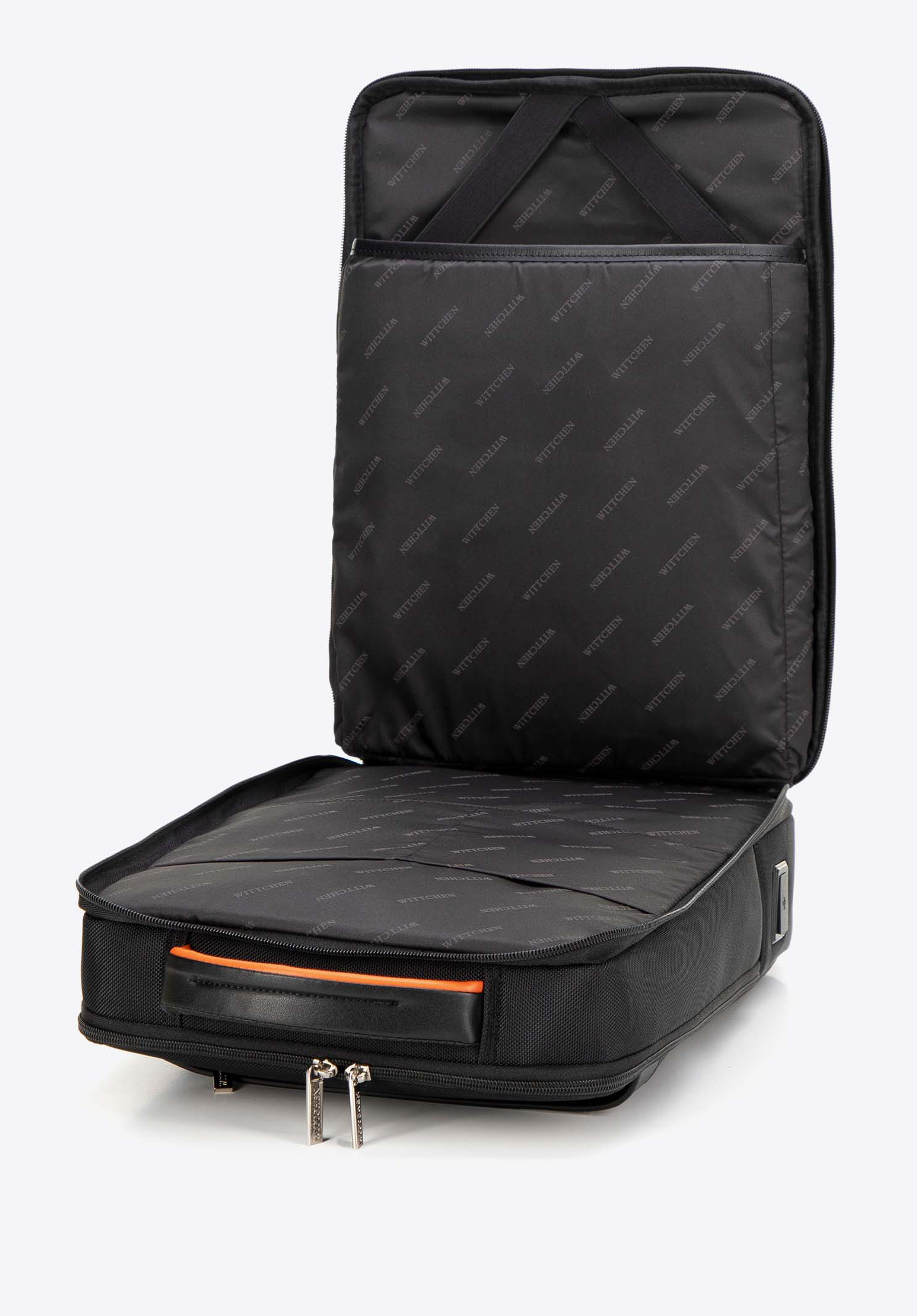 - Ein Fach mit einer Tasche für einen Laptop: Öffnet sich U-förmig für einen einfachen Zugriff auf die Geräte und bequemes Packen.