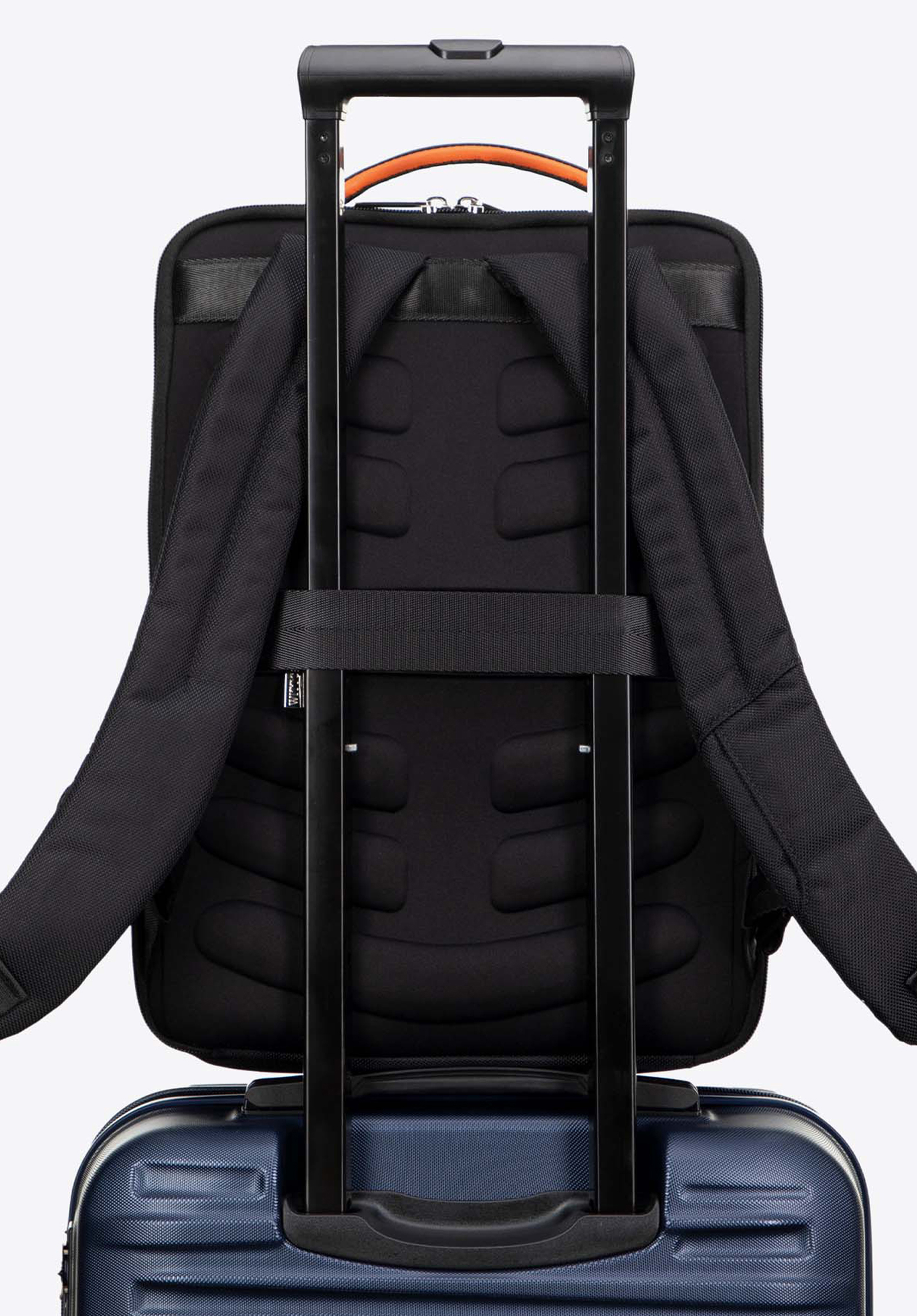 - Praktische Kofferhalterung: Ermöglicht die einfache Befestigung des Rucksacks am Gepäck.