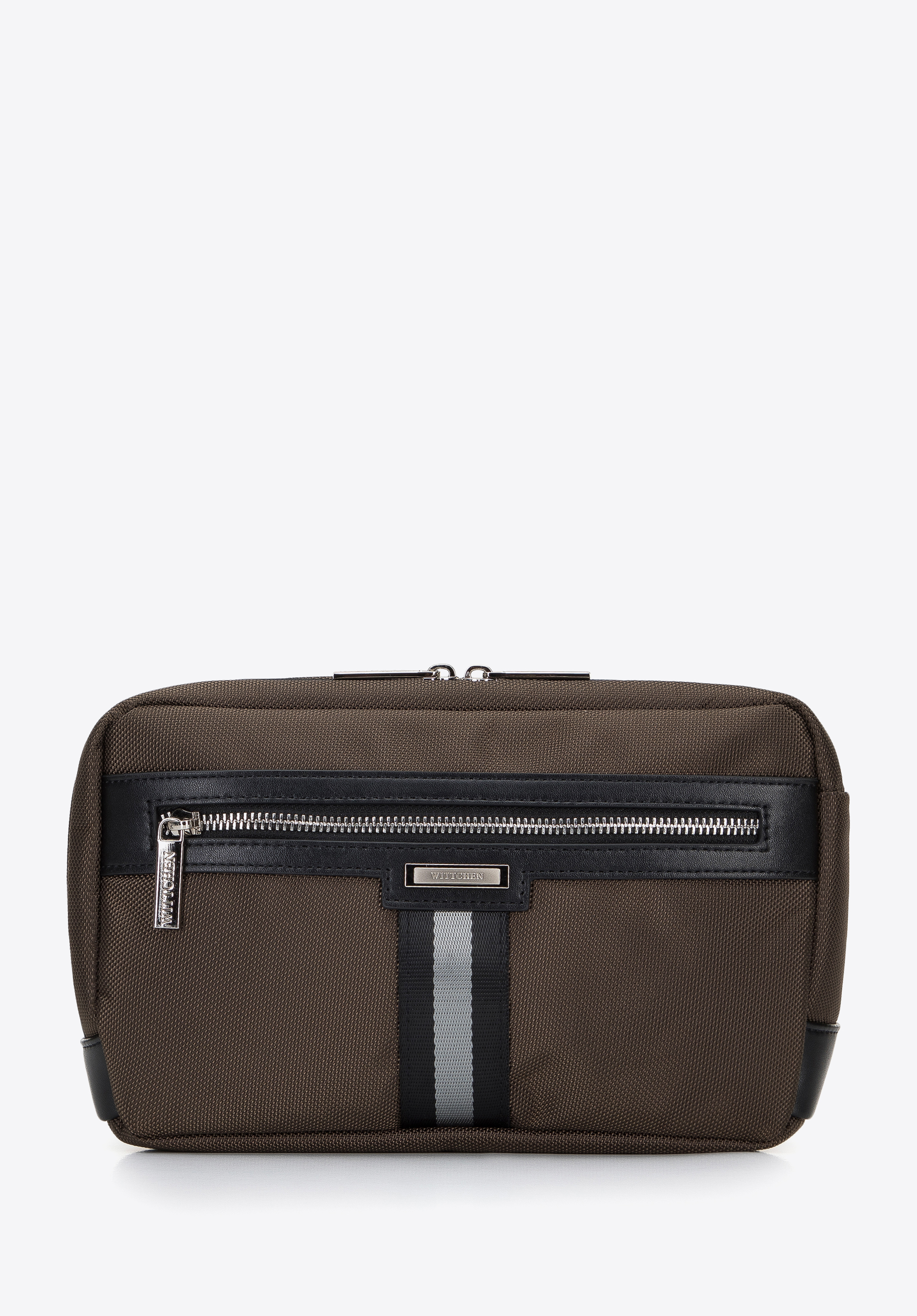 Diese Gürteltasche wird sowohl Sport- als auch Alltagsstilisierungen stilvoll ergänzen. Sie wurde aus hochwertigem Polyester mit zartem Glanz gefertigt. Sie wird mit einem Reißverschluss geschlossen, der sich weit genug öffnen lässt, um bequem verwendet zu werden. Auf der Vorderseite befindet sich ein dekoratives Band. Echtledereinsätze verleihen ihr Eleganz. Darin passen Geldbeutel, Telefon, Ersatzhandschuhe und ein paar Kleinigkeiten - perfekt für eine Fahrradtour, einen Spaziergang oder eine kurze Besichtigung. Eine Gürteltasche für Herren mit dem Band ist ein zeitloses Accessoire, das es wert ist, in Ihrem Kleiderschrank zu sein.