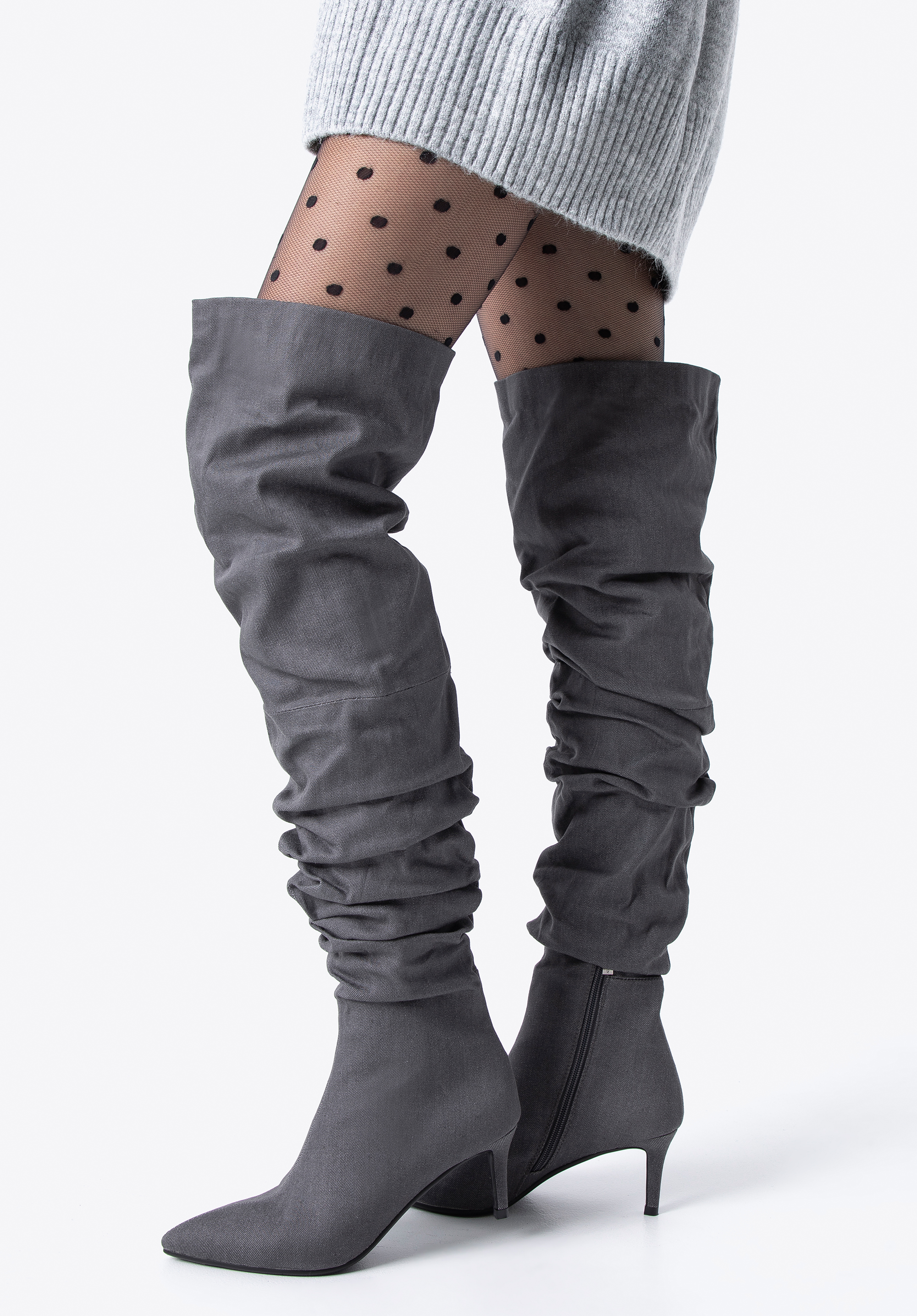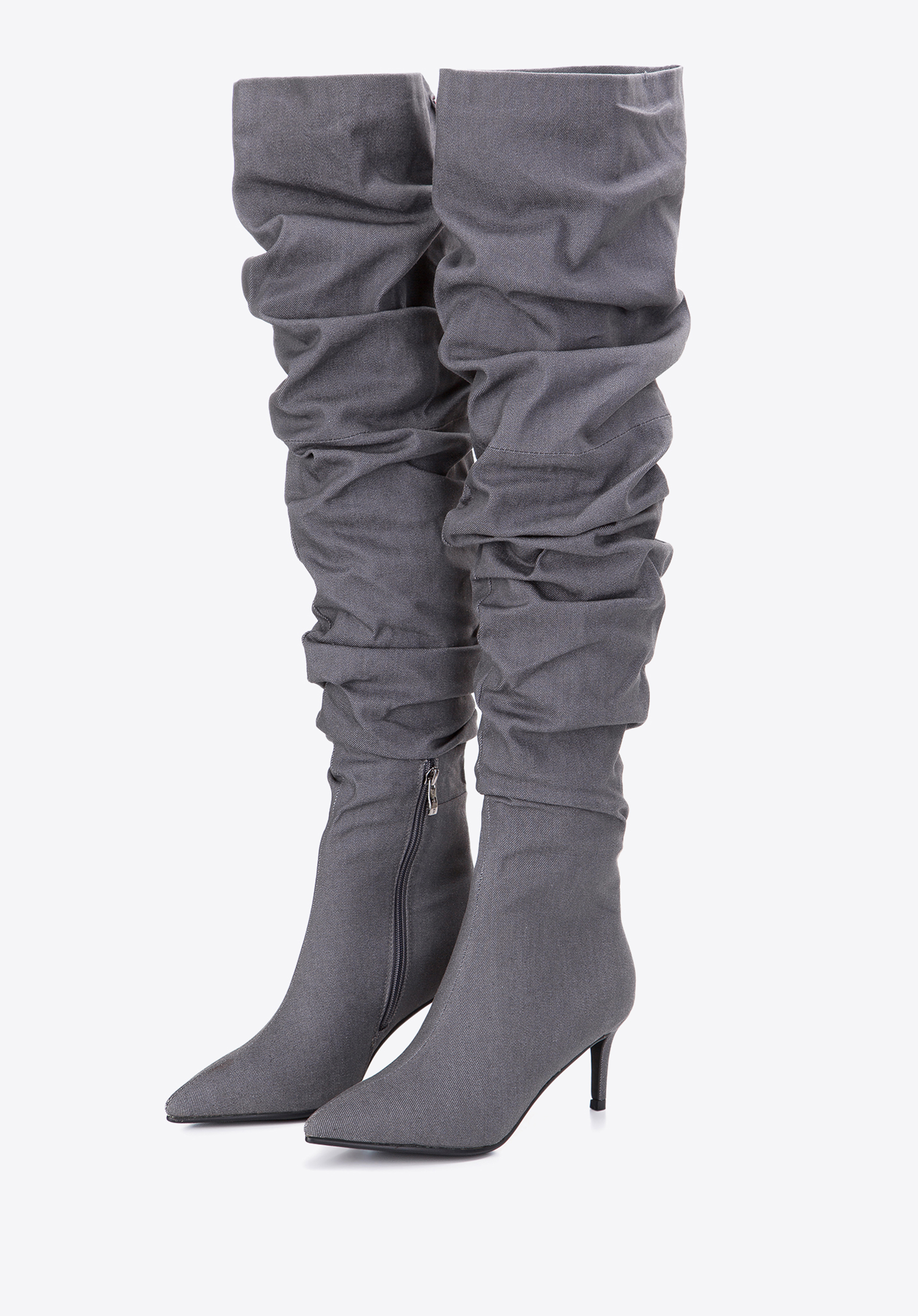 Wenn Sie die Modetrends verfolgen, müssen Sie wissen, dass Overknee-Stiefel für Frauen die trendigsten Schuhe der Saison sind! Sie sind eine gute Wahl für Frauen, die gerne faszinieren und die Blicke auf sich ziehen. Wenn Sie sich von der Masse abheben wollen, können Sie nicht an ihnen vorbeigehen. Aus Baumwollstoff (Denim) gefertigt, sind sie äußerst bequem und angenehm zu tragen. Und das trotz des 7 cm hohen Absatzes! Sie haben einen Reißverschluss an der Außenseite, der das Anziehen der Schuhe erleichtert. Außerdem kann man sie individuell anpassen, indem man die Länge und die Größe der Falten verstellt. Die Overknee-Stiefel aus Denim für Damen sind ein Muss in Ihrem Kleiderschrank. Sie werden der erfolgreichste Kauf dieser Saison sein!