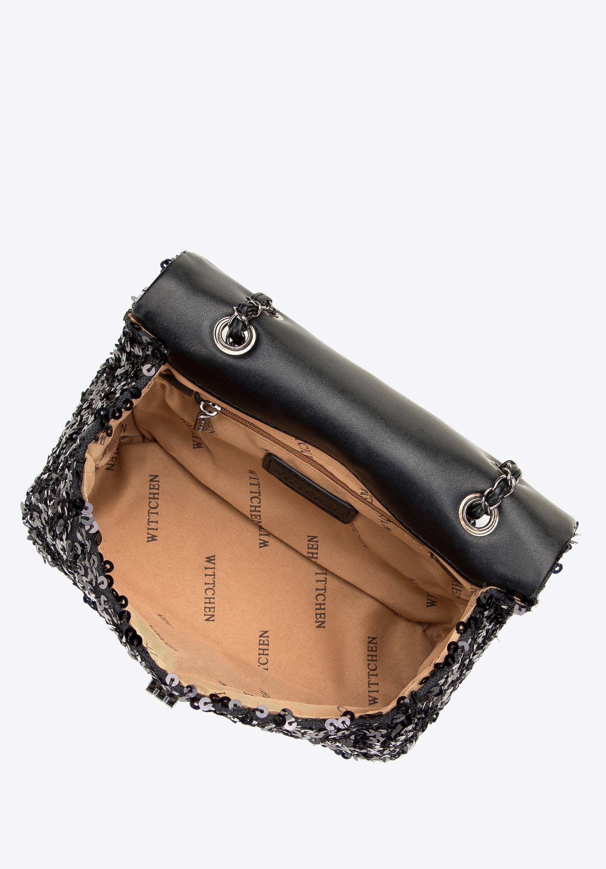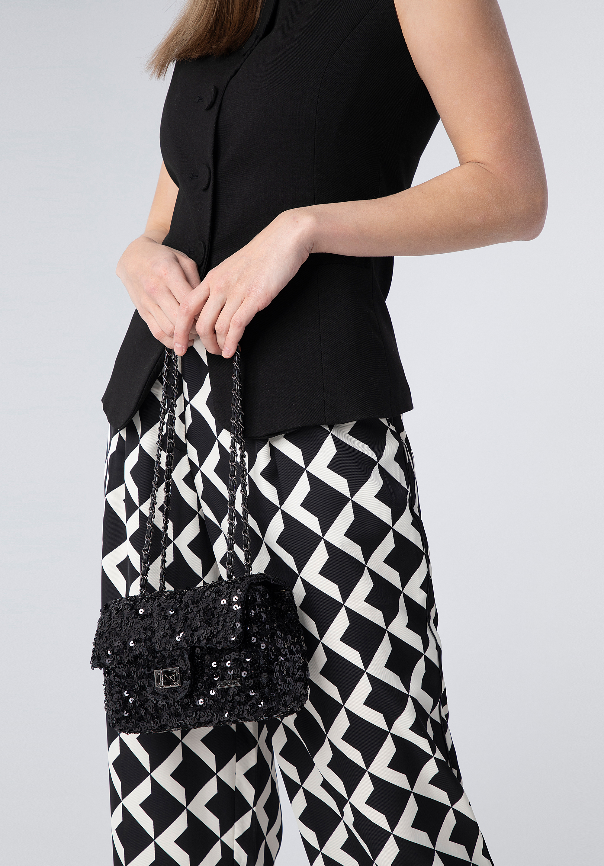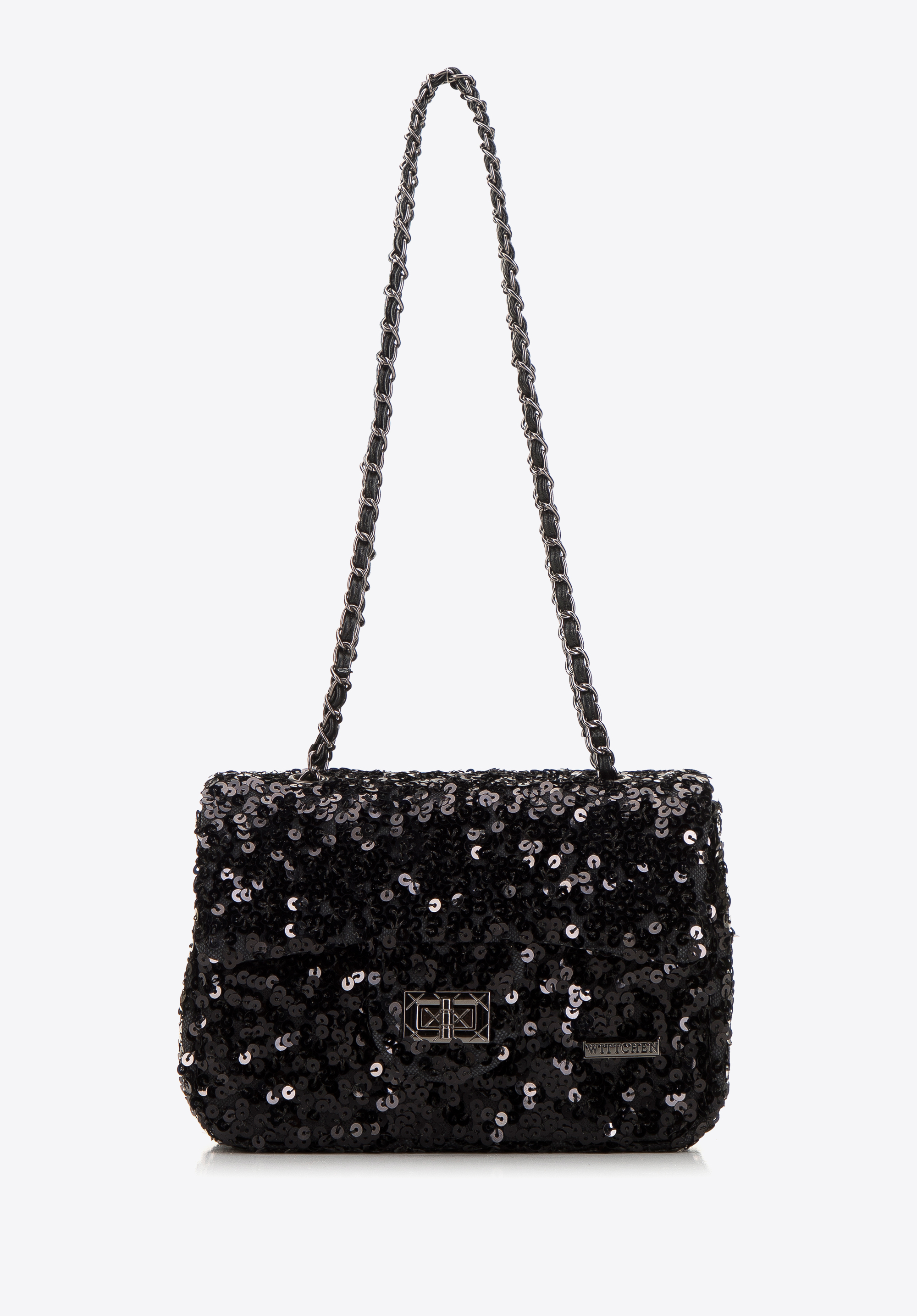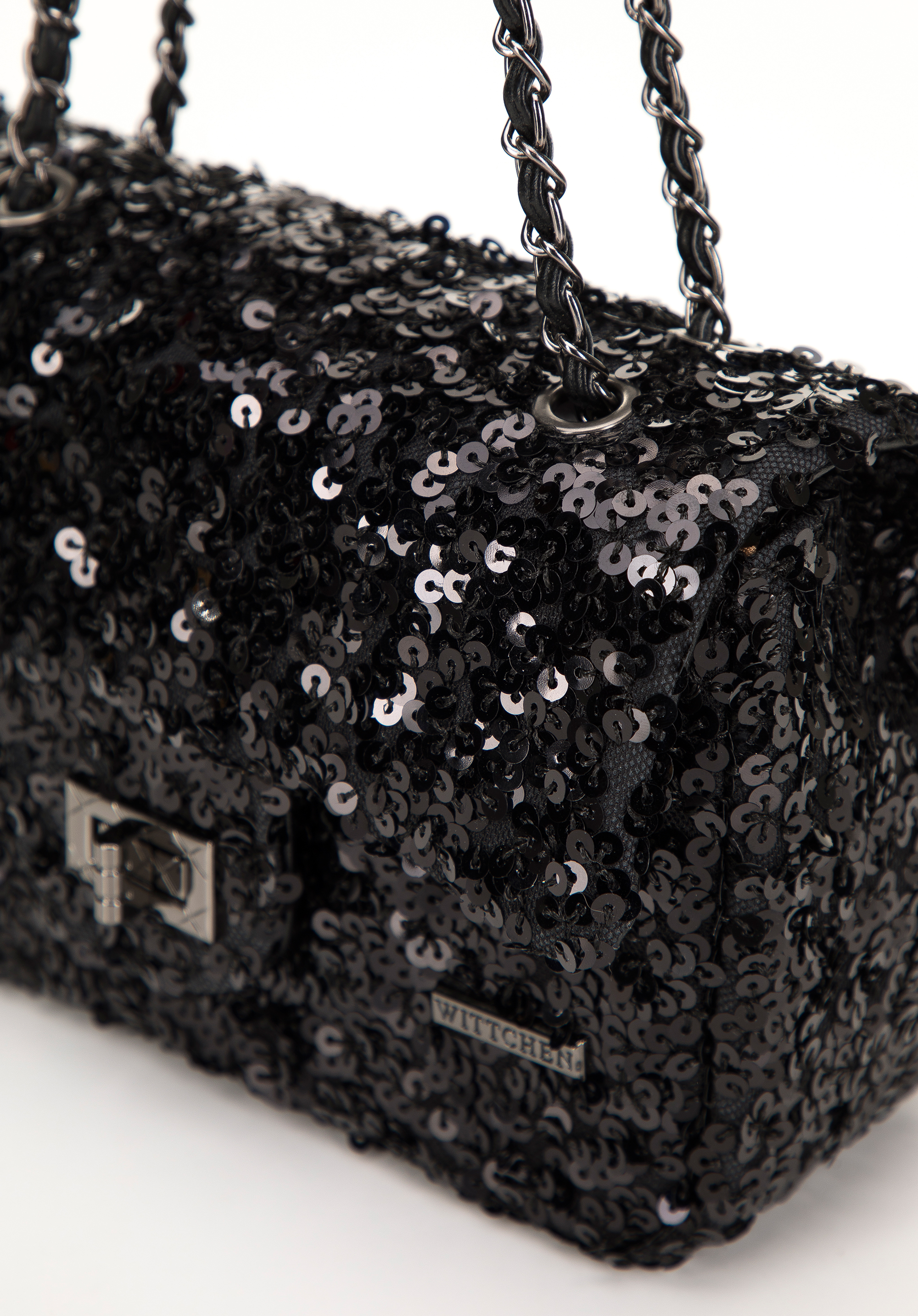 Diese Pailletten-Handtasche ist eine gute Wahl für alle Liebhaberinnen origineller Accessoires. Sie wird ein Cocktailkleid schick akzentuieren und Ihrer Lieblingsjeans und Ihrem Lieblingshemd einen einzigartigen Akzent bieten. Im Inneren finden Handy, Kartenetui, Taschentücher und Ihr Lieblingslippenstift Platz - genau richtig für ein Abendessen, einen Theaterbesuch oder eine elegante Party. Die Tasche ist mit glänzenden Pailletten besetzt und wird durch eine lange, glänzende Kette ergänzt. Diese mit Pailletten besetzte Damenhandtasche ist ein echter Augenschmaus und sollte unbedingt in Ihrem Kleiderschrank vorhanden sein.