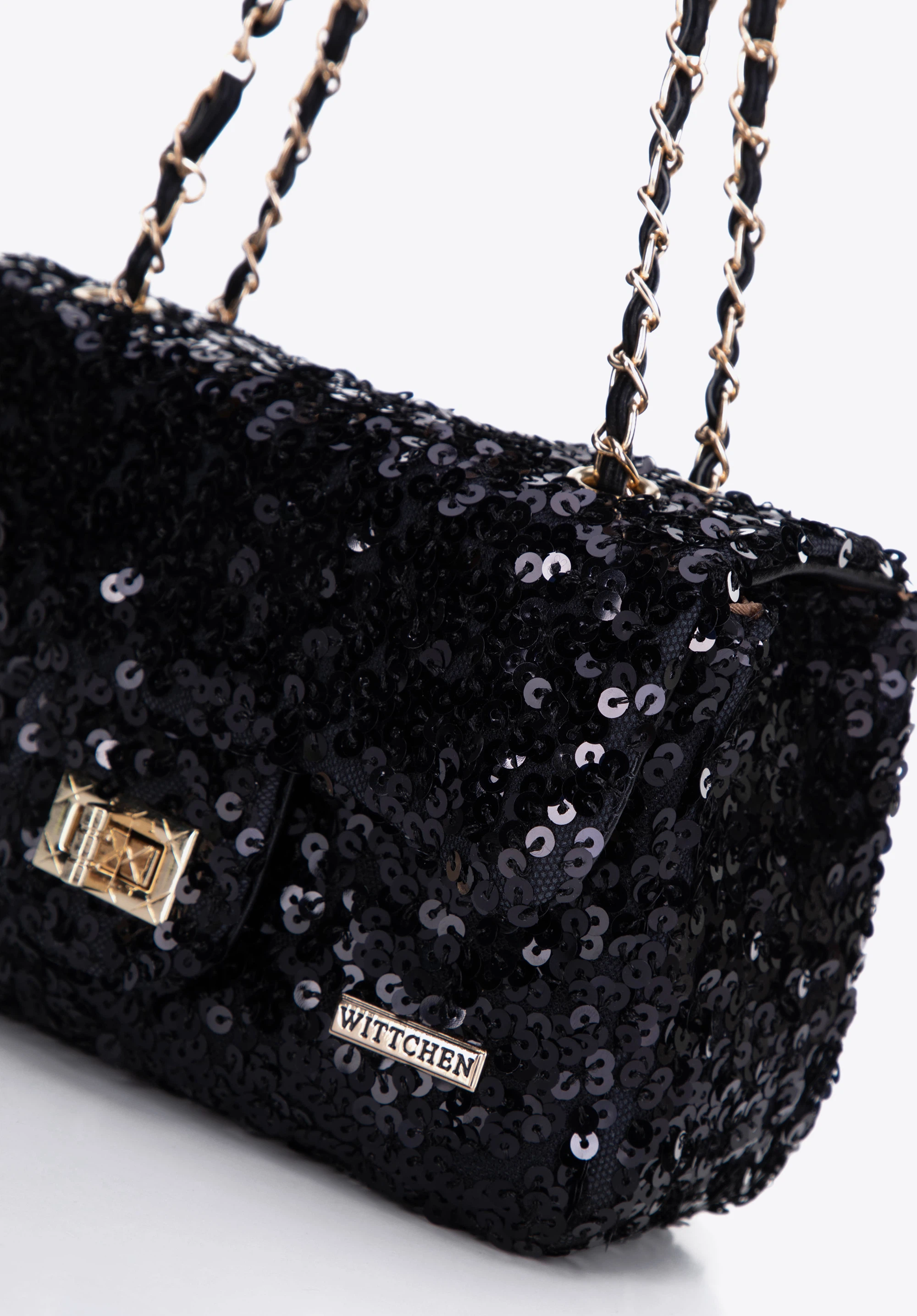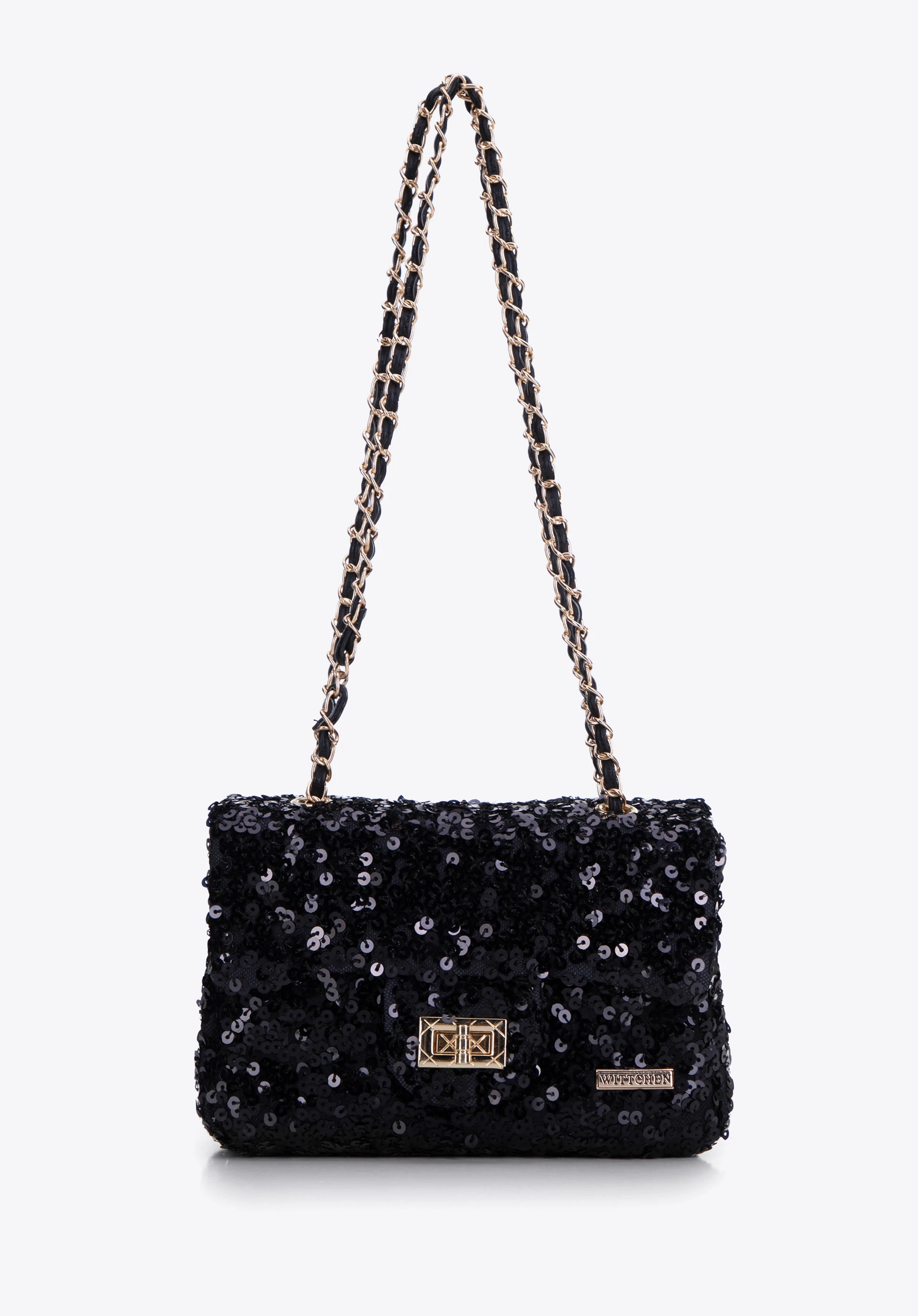 Diese Pailletten-Handtasche ist eine gute Wahl für alle Liebhaberinnen origineller Accessoires. Sie wird ein Cocktailkleid schick akzentuieren und Ihrer Lieblingsjeans und Ihrem Lieblingshemd einen einzigartigen Akzent bieten. Im Inneren finden Handy, Kartenetui, Taschentücher und Ihr Lieblingslippenstift Platz - genau richtig für ein Abendessen, einen Theaterbesuch oder eine elegante Party. Die Tasche ist mit glänzenden Pailletten besetzt und wird durch eine lange, glänzende Kette ergänzt. Diese mit Pailletten besetzte Damenhandtasche ist ein echter Augenschmaus und sollte unbedingt in Ihrem Kleiderschrank vorhanden sein.