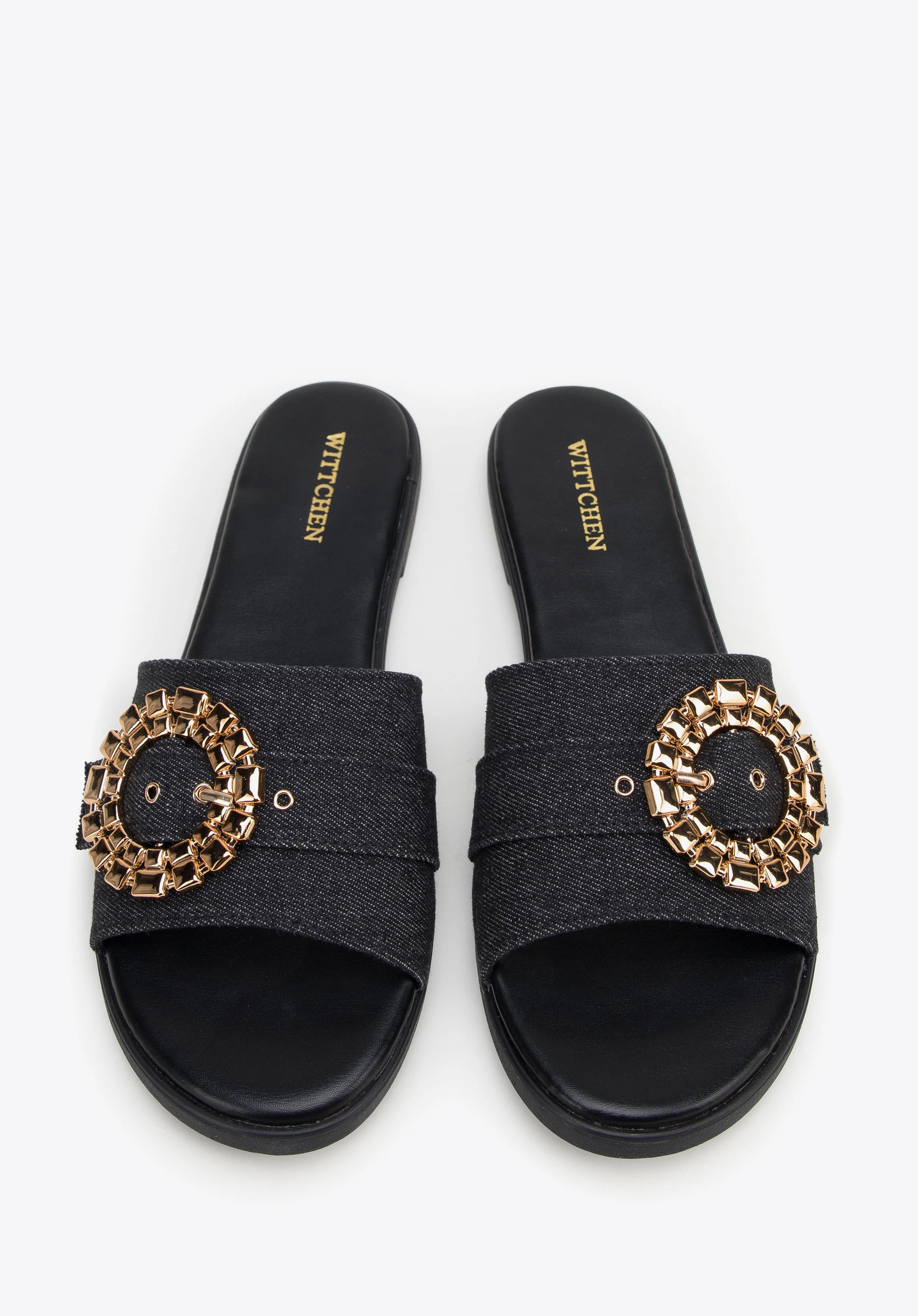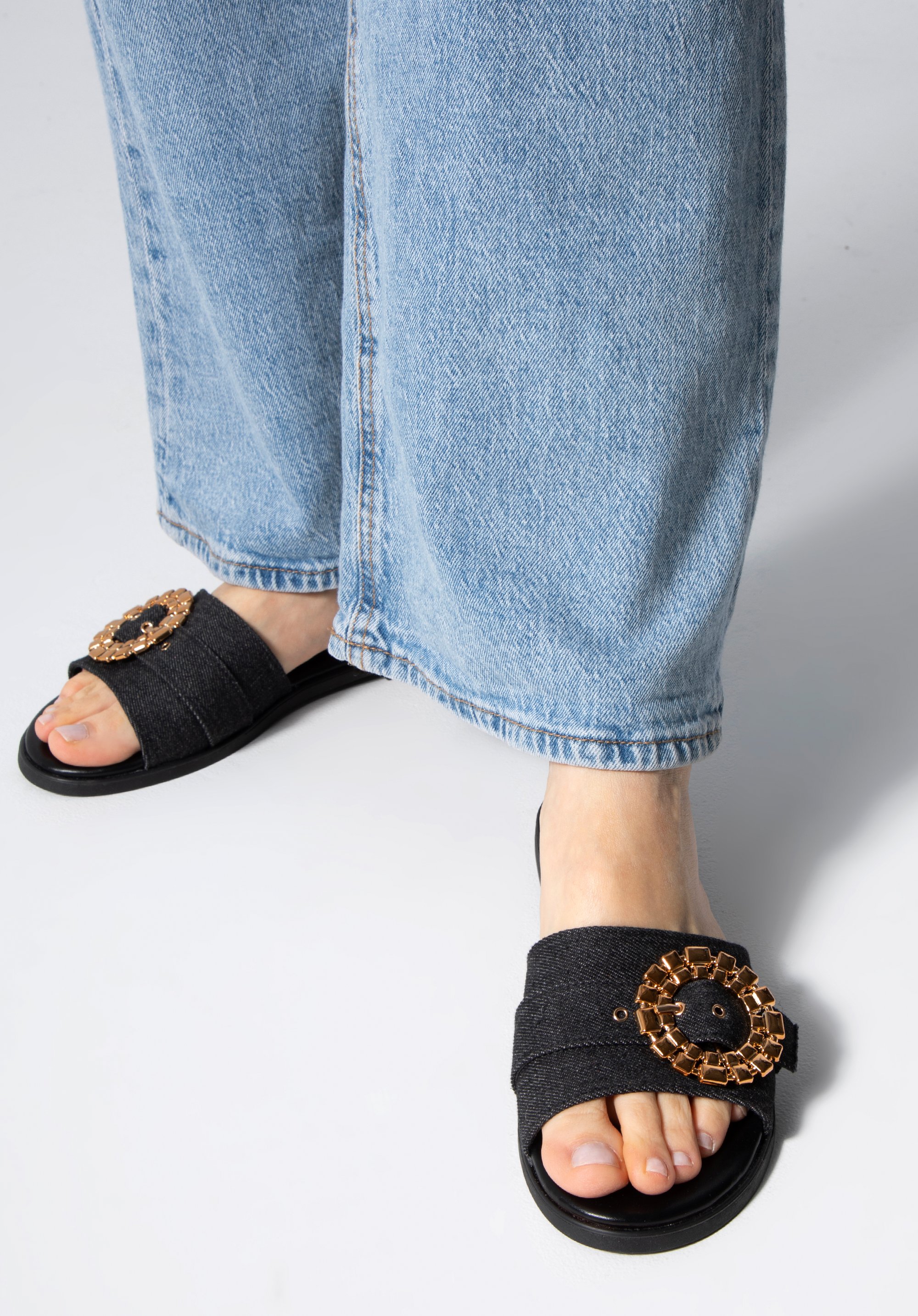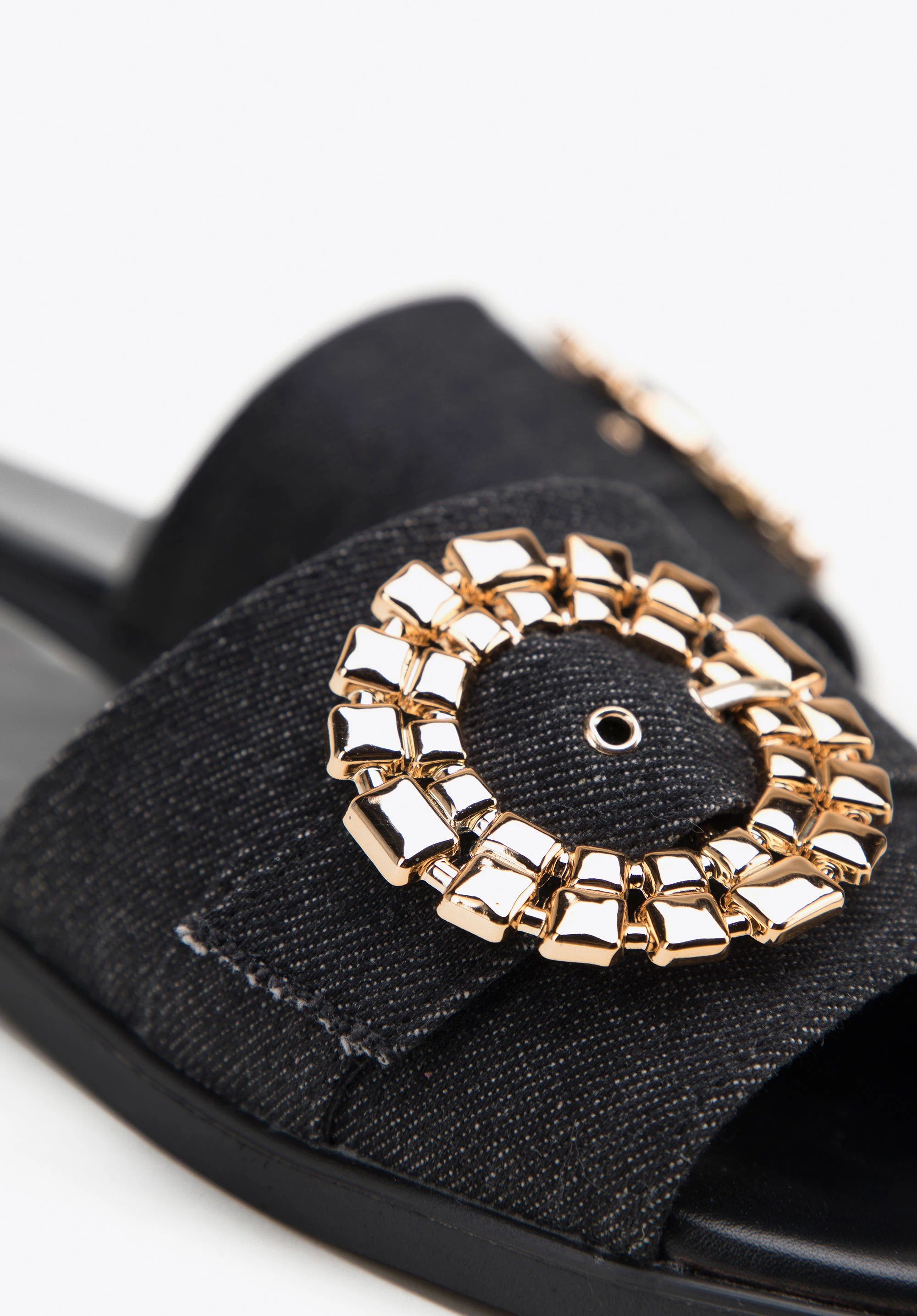 Pantoletten für Damen aus Denim mit glänzender Schnalle Farbe: schwarz