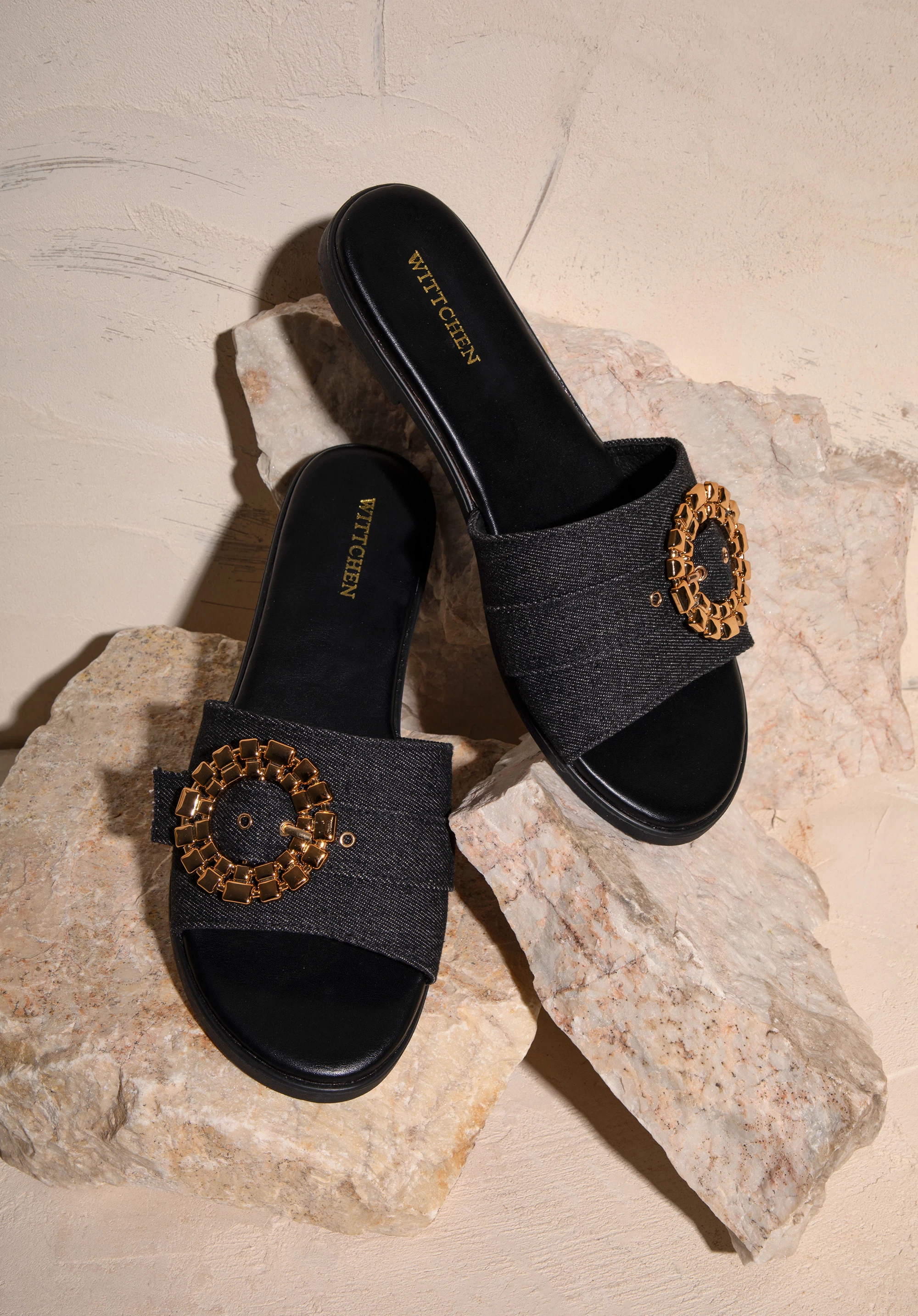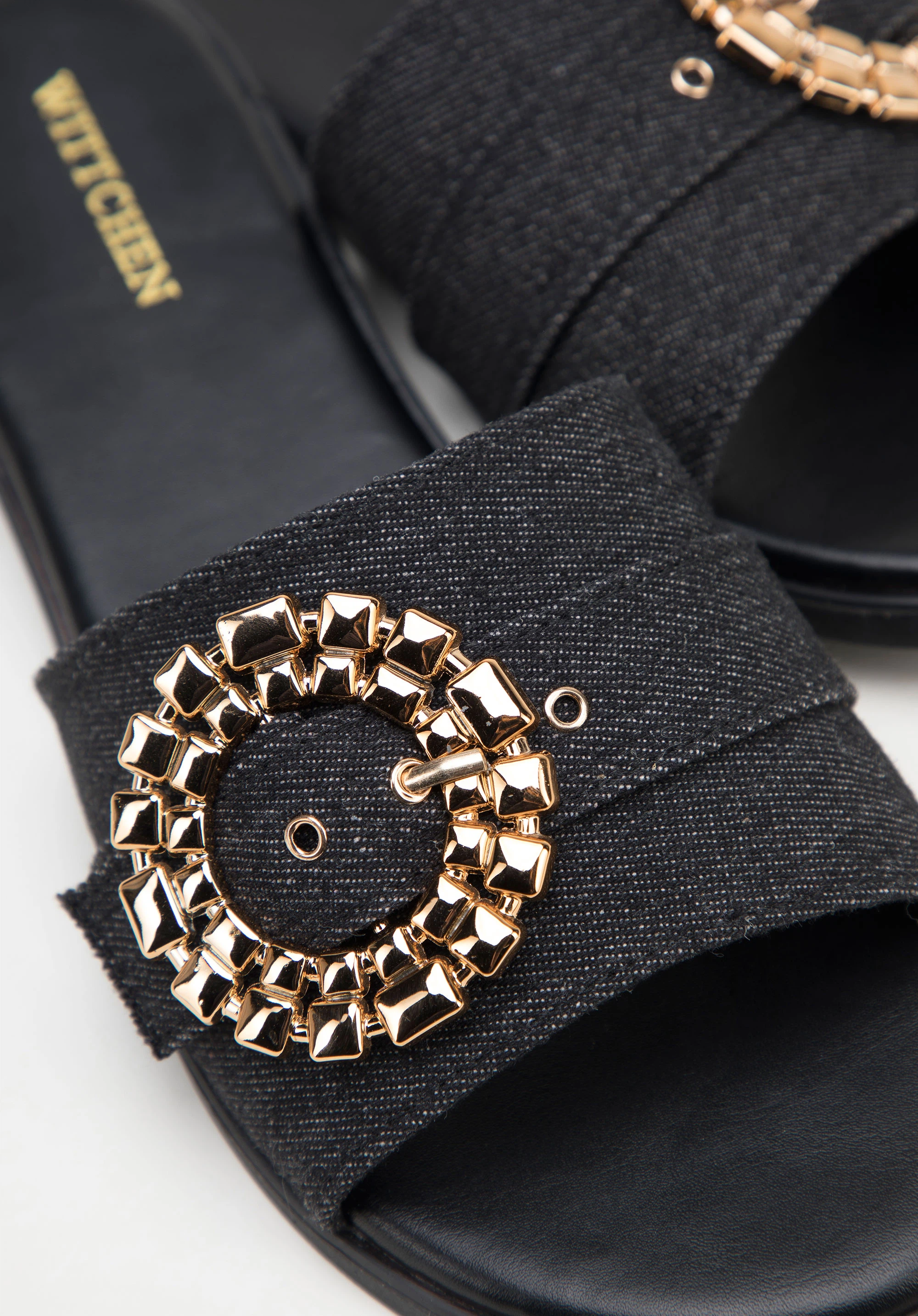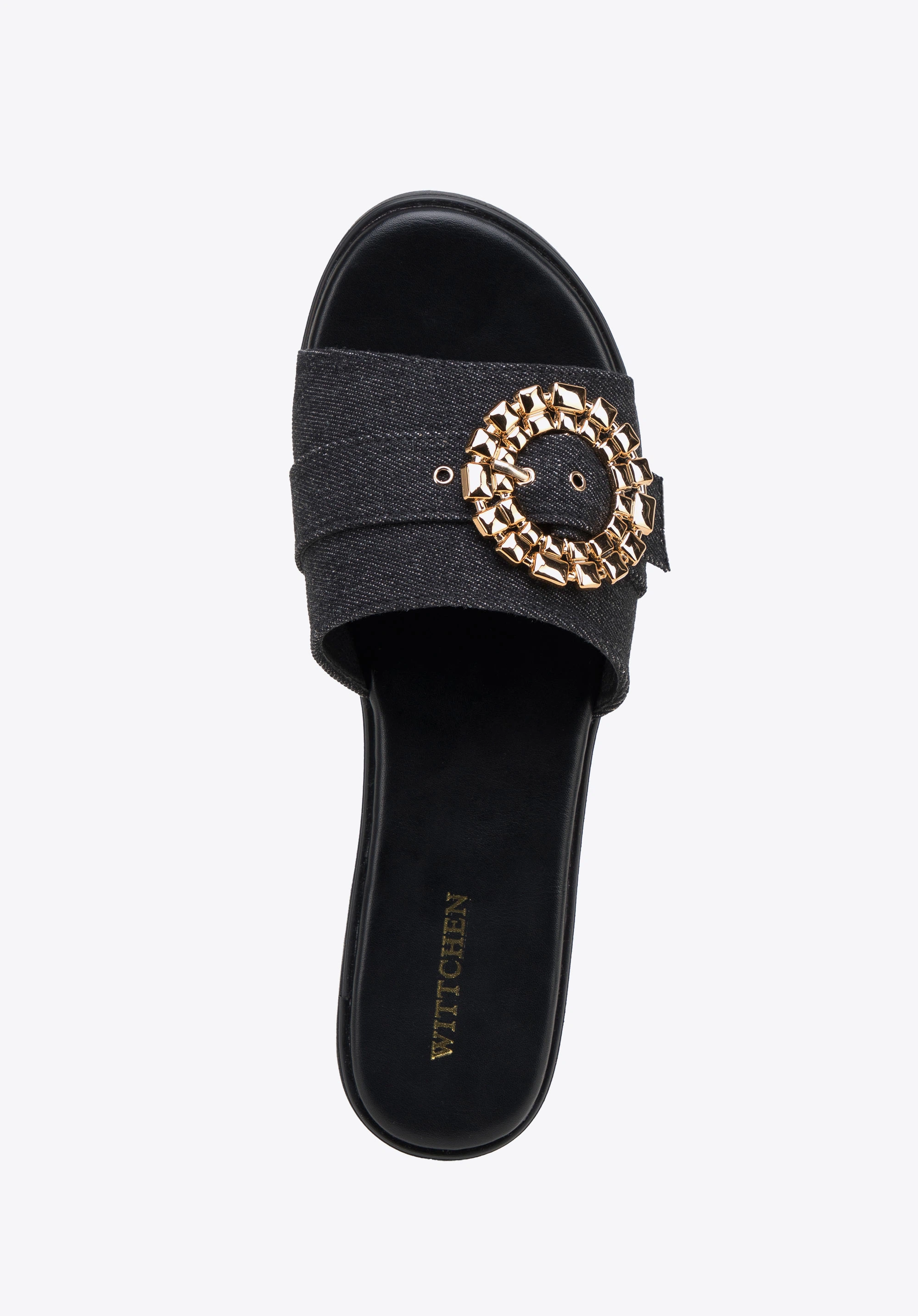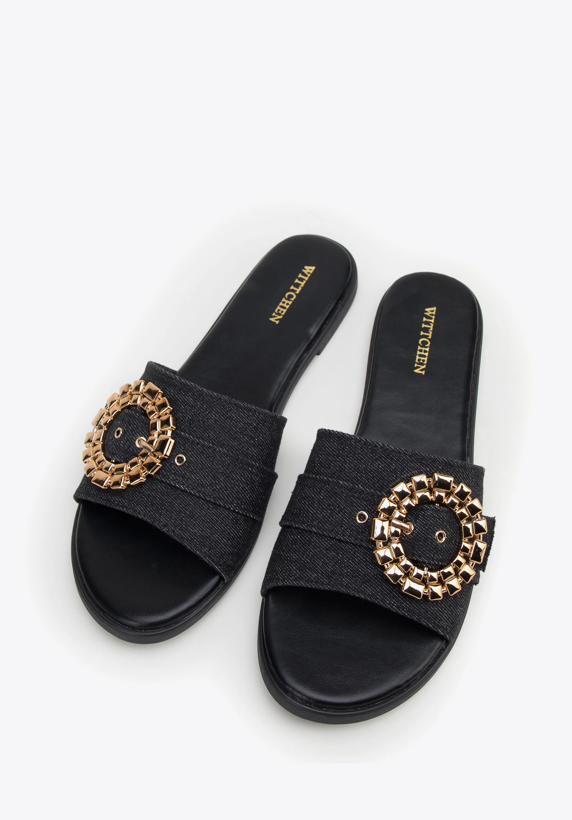 Pantoletten für Damen aus Denim mit glänzender Schnalle Farbe: schwarz