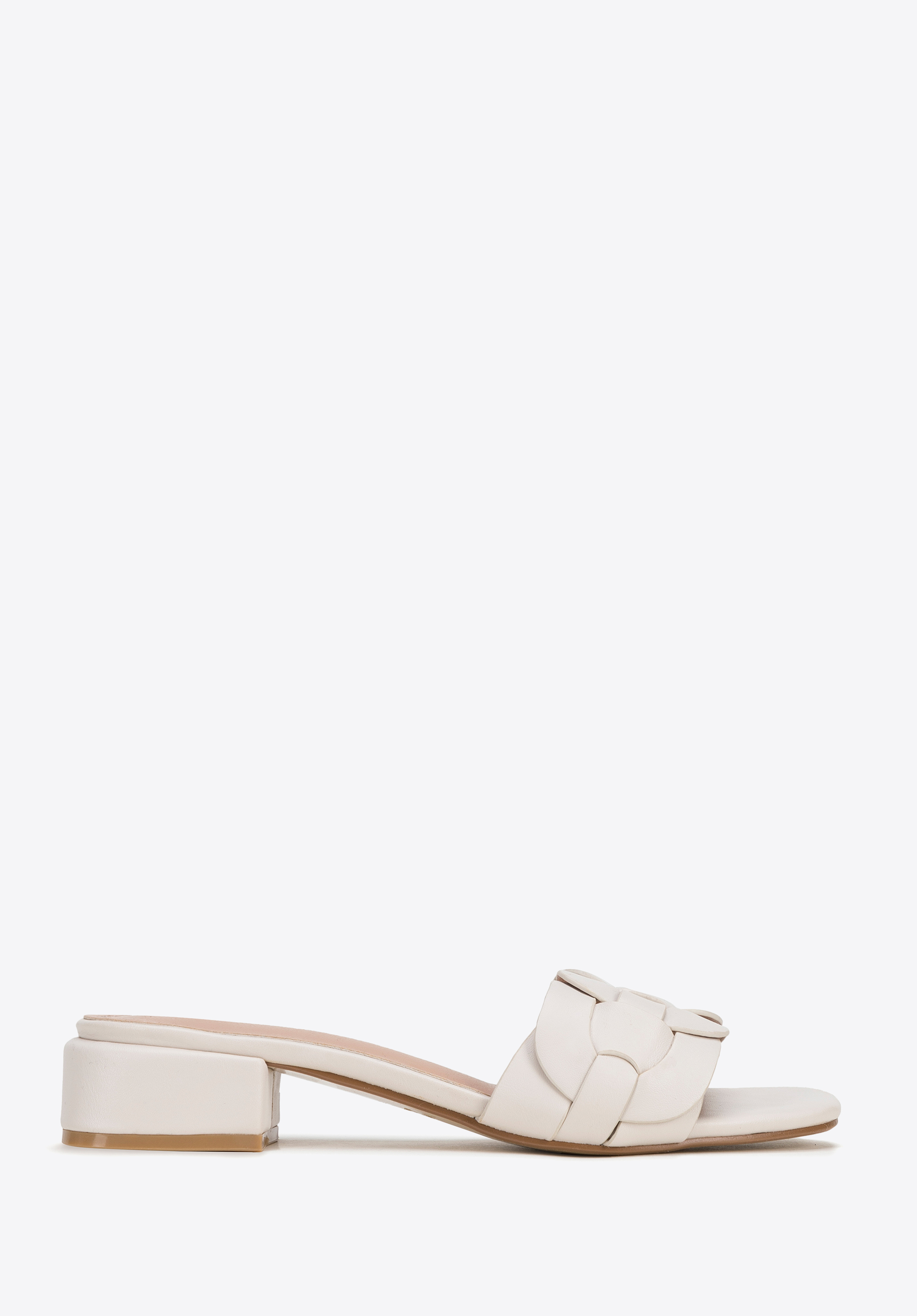 Diese Pantoletten sind praktisch für Spaziergänge, Partys, Veranstaltungen und andere schöne Anlässe im Frühling und Sommer. Sie haben den zeitlosen und klassischen Schnitt. Der kleine Absatz hebt die Ferse genau richtig an, um die Silhouette zu verschlanken. Die Pantoletten mit niedrigem Absatz verleihen Ihren Sommeroutfits einen schicken Charakter. Kombinieren Sie sie mit Rüschenröcken, Kleidern und Hosen mit weitem Bein.