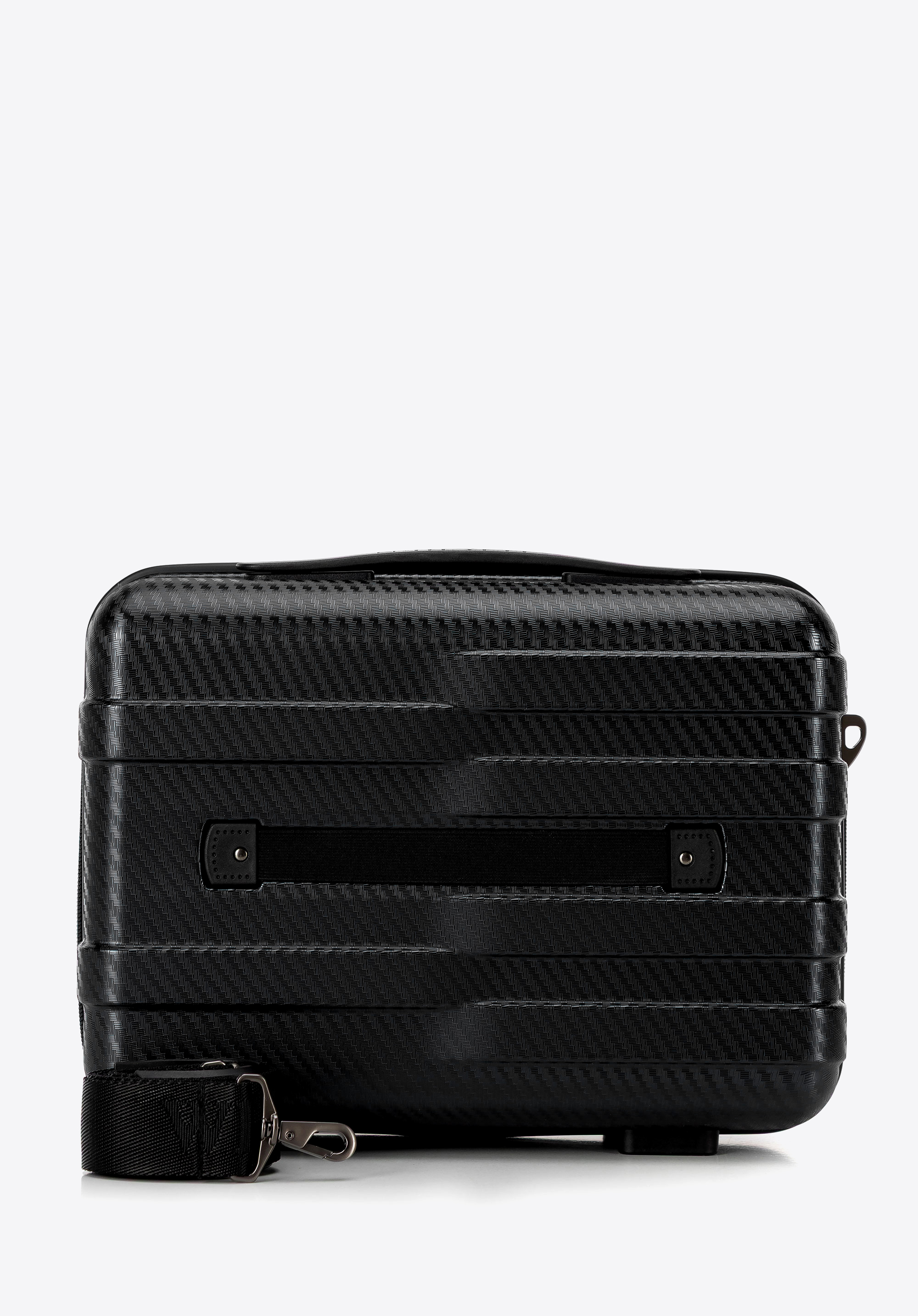 - Gurt und Griff des Kosmetikkoffers: Abnehmbarer, verstellbarer Schultergurt und ein praktischer Griff ermöglichen die Befestigung am Teleskopgriff des Koffers.