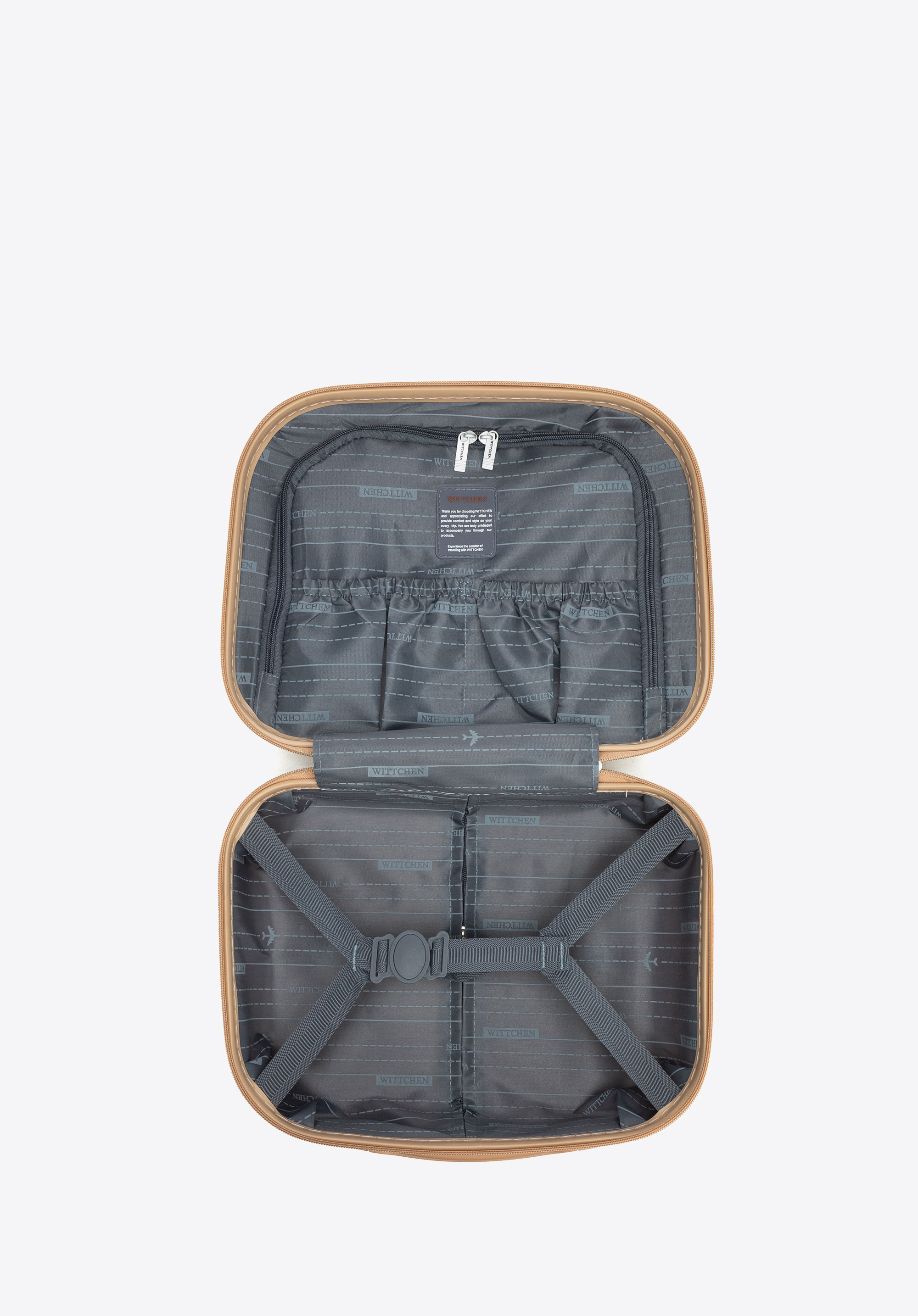- Gut durchdachte Innenausstattung und Packmöglichkeiten: Die Koffer verfügen über zwei Fächer mit Gurten und Taschen, während der Kosmetikkoffer zusätzliche Trennwände, 2 offene Taschen und elastische Befestigungsgurte hat – alles hat seinen Platz.