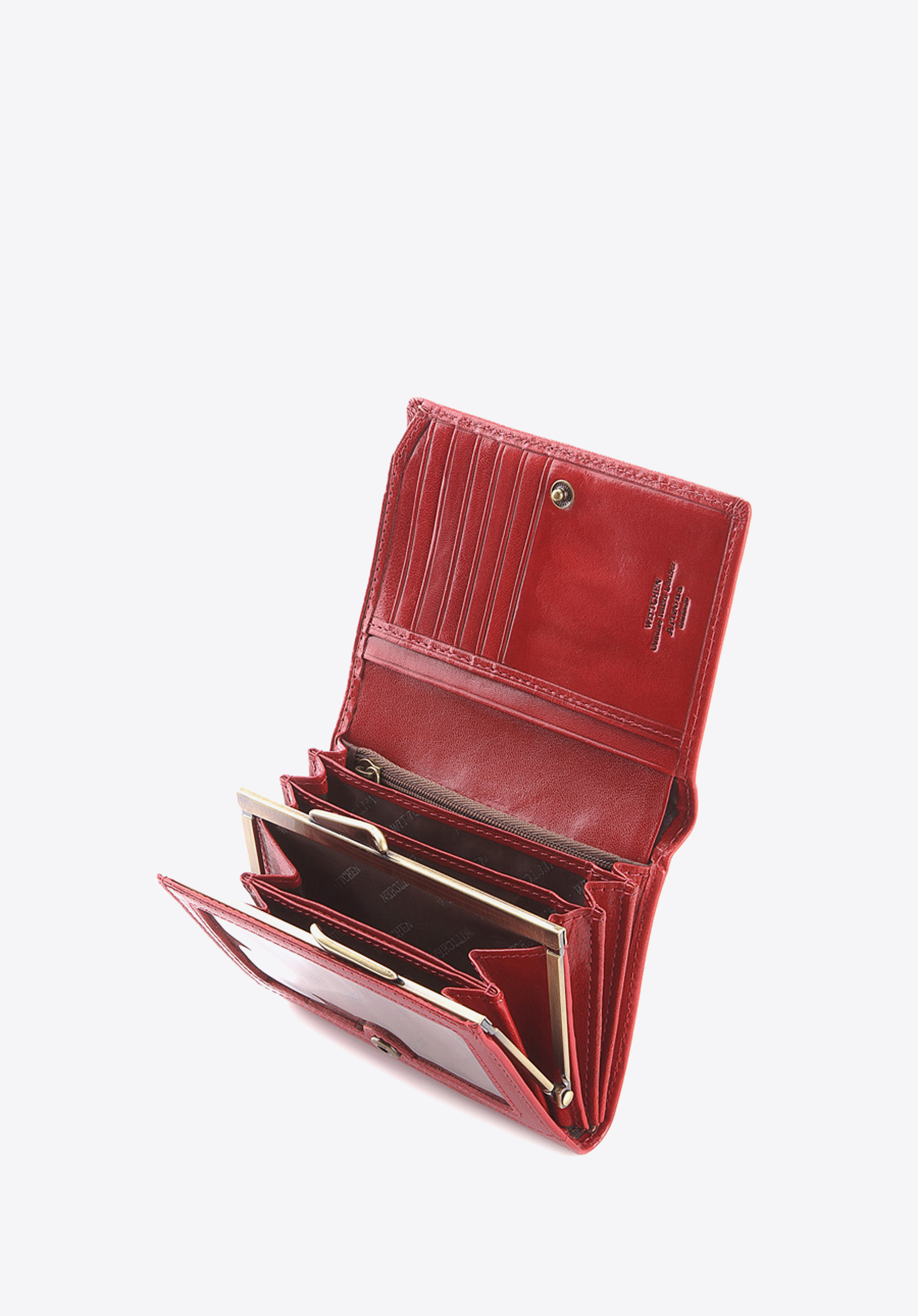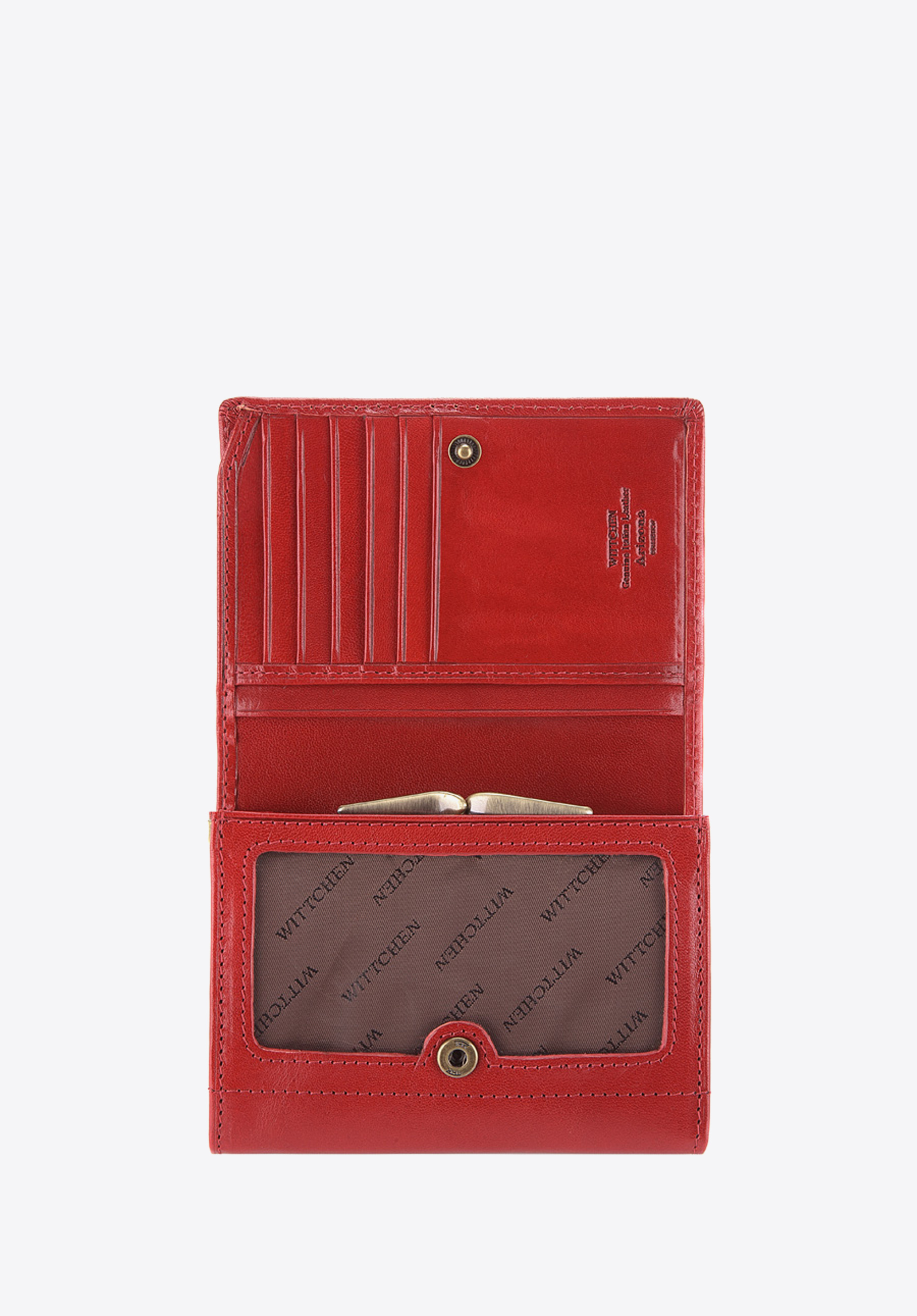 Das mittelgroße Portemonnaie wird sorgfältig aus hochwertigem Kalbsleder mit fein glänzender Oberfläche handgenäht. Dieses Modell zeichnet sich durch seine kompakte Größe und das durchdachte Interieur aus. Dank dem goldfarbenen WITTCHEN-Wappen gewinnt der Geldbeutel einen eleganten Charakter.