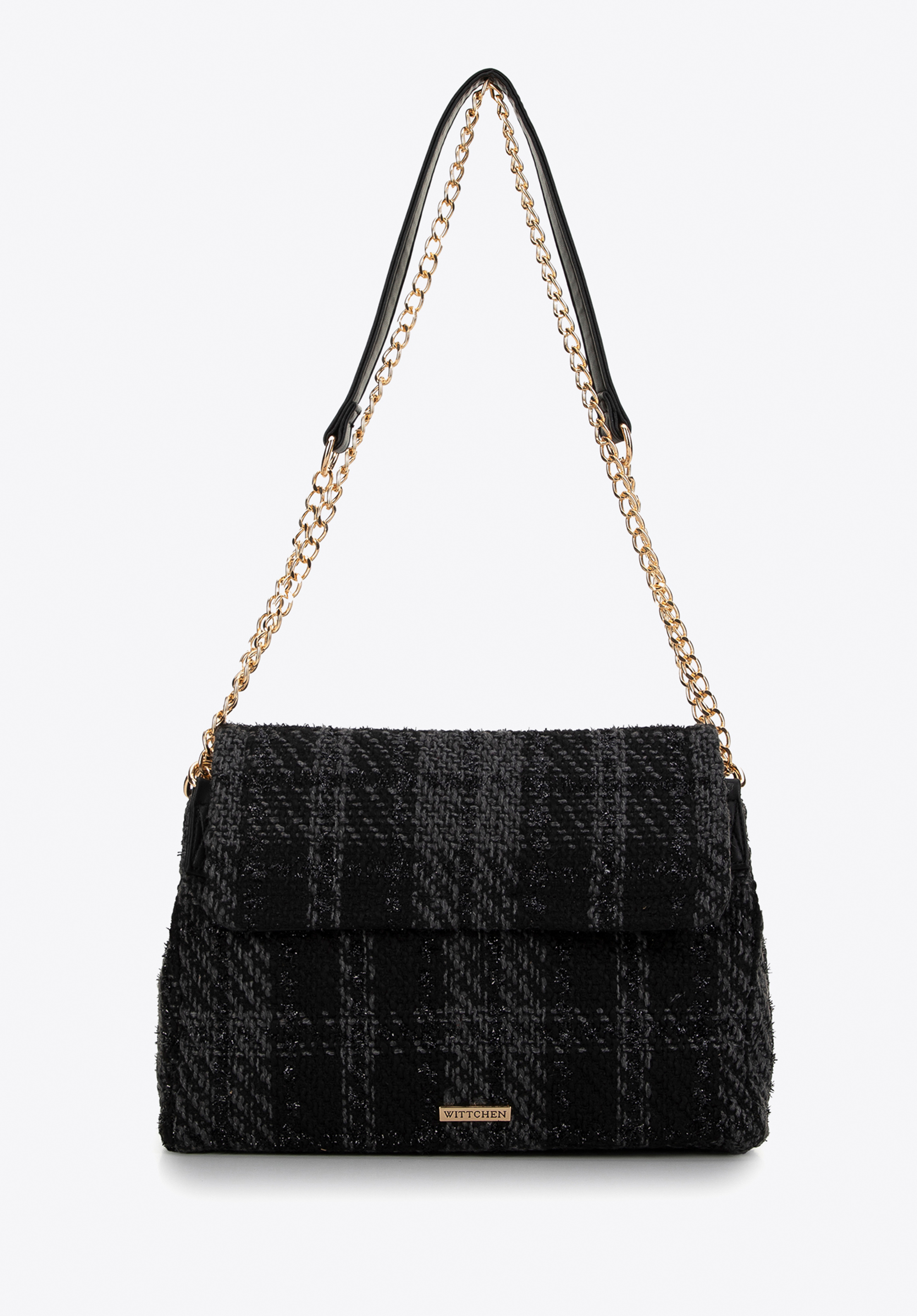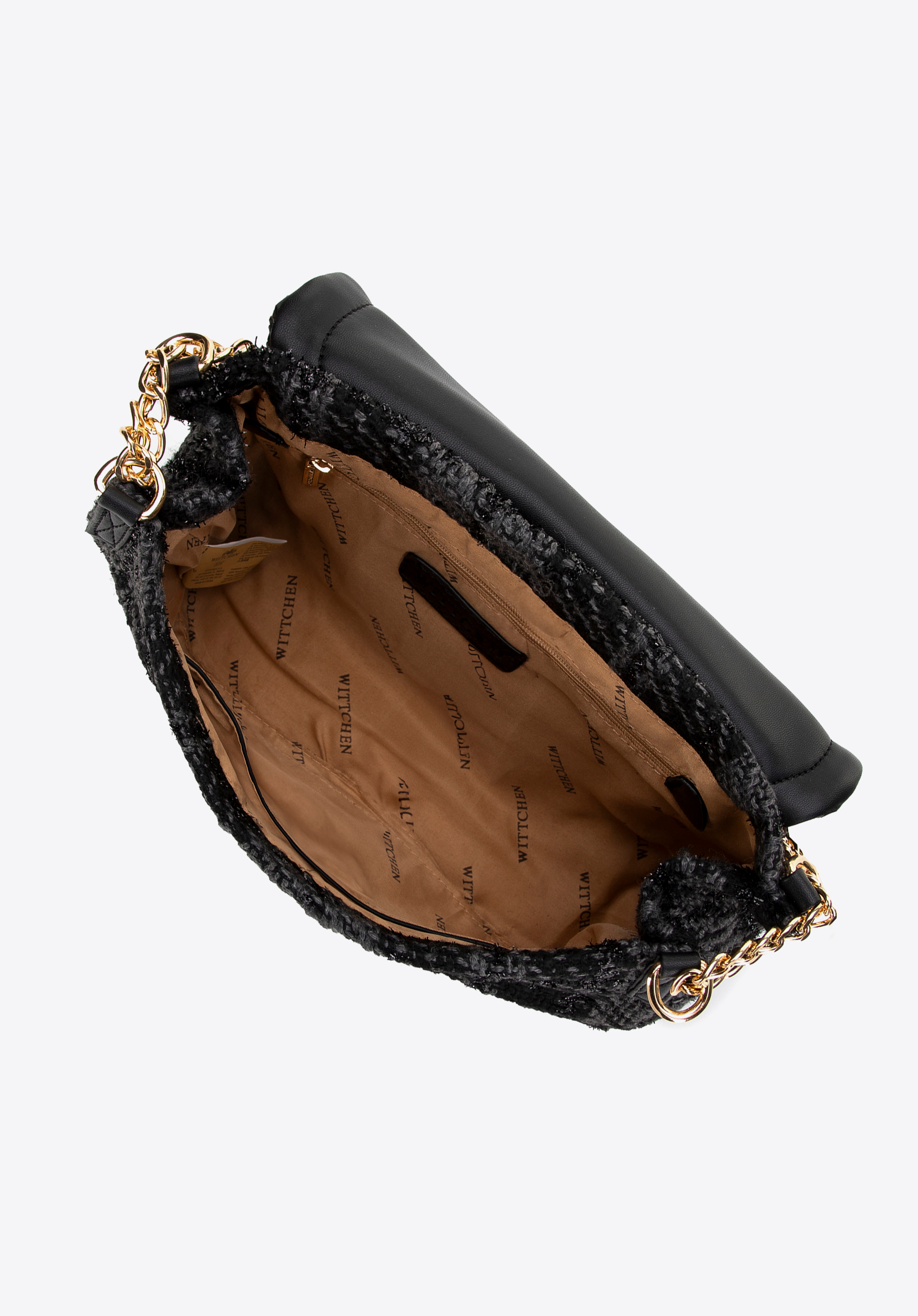 Verleihen Sie Ihrer Garderobe mit dieser Umhängetasche aus Bouclé-Stoff für Damen einen Hauch von Luxus!
