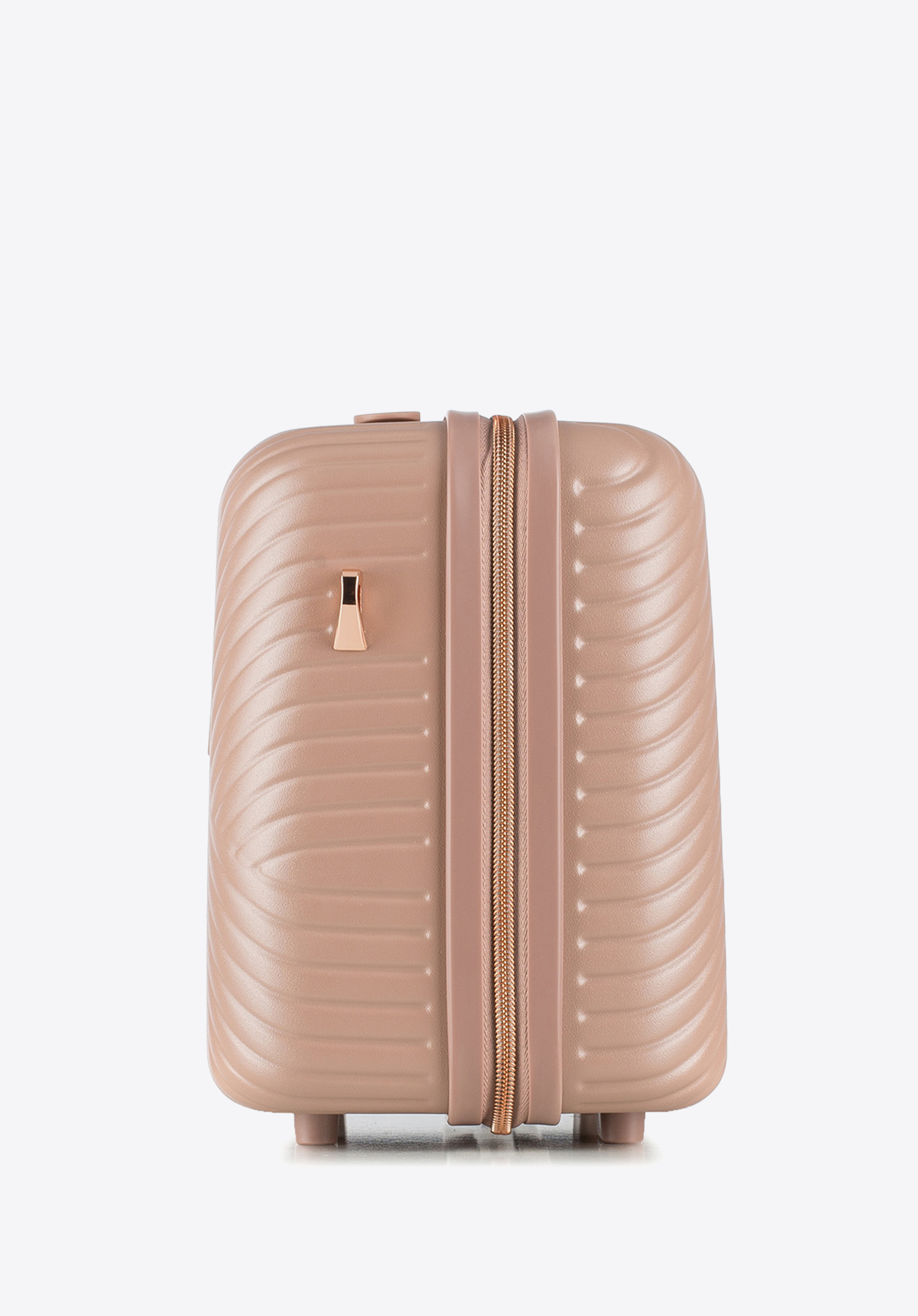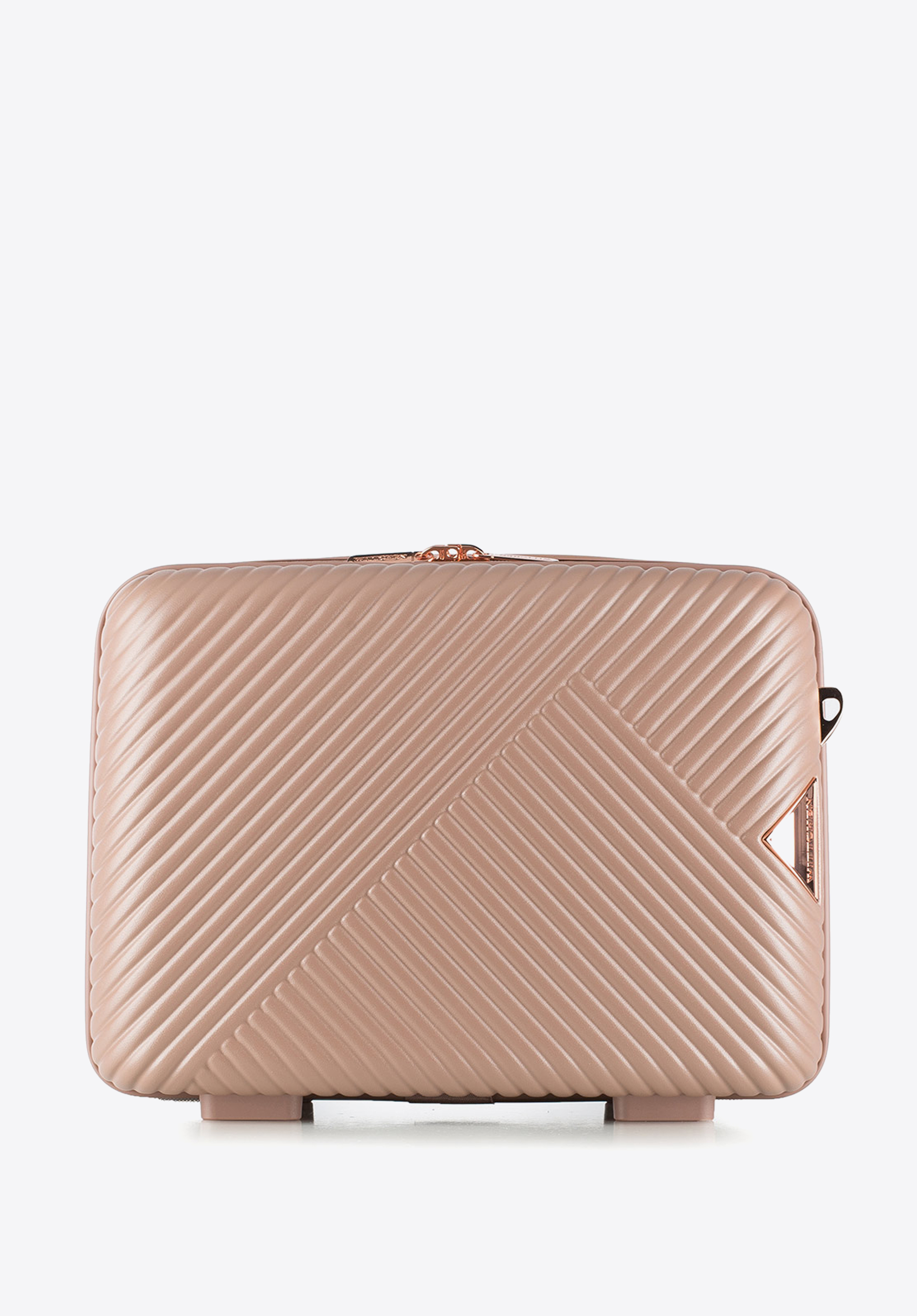 Der leichte Kosmetikkoffer wird aus Polycarbonat mit matter Oberfläche hergestellt. Das elegante Beauty Case wir mit glänzenden Elementen in Roségold geschmückt. Der Innenraum wird mit beigefarbenem Futter mit WITTCHEN-Logo bedeckt. Dieses Modell ist in drei Farbtönen erhältlich: Weiß, Schwarz und Rosa.