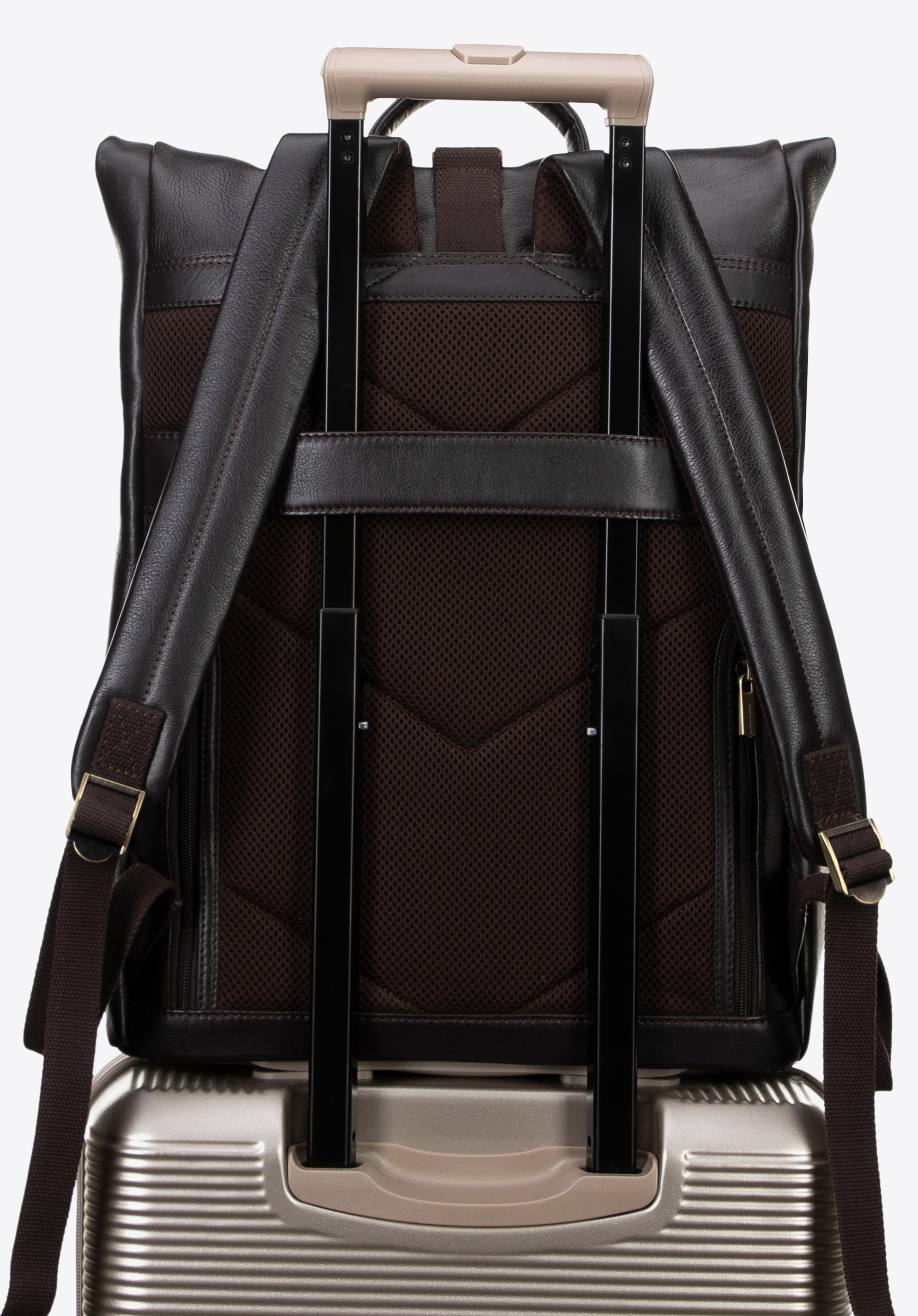 - Kofferhalterung : Erleichtert Geschäftsreisen, da Sie den Rucksack bequem am Griff Ihres Koffers befestigen können.