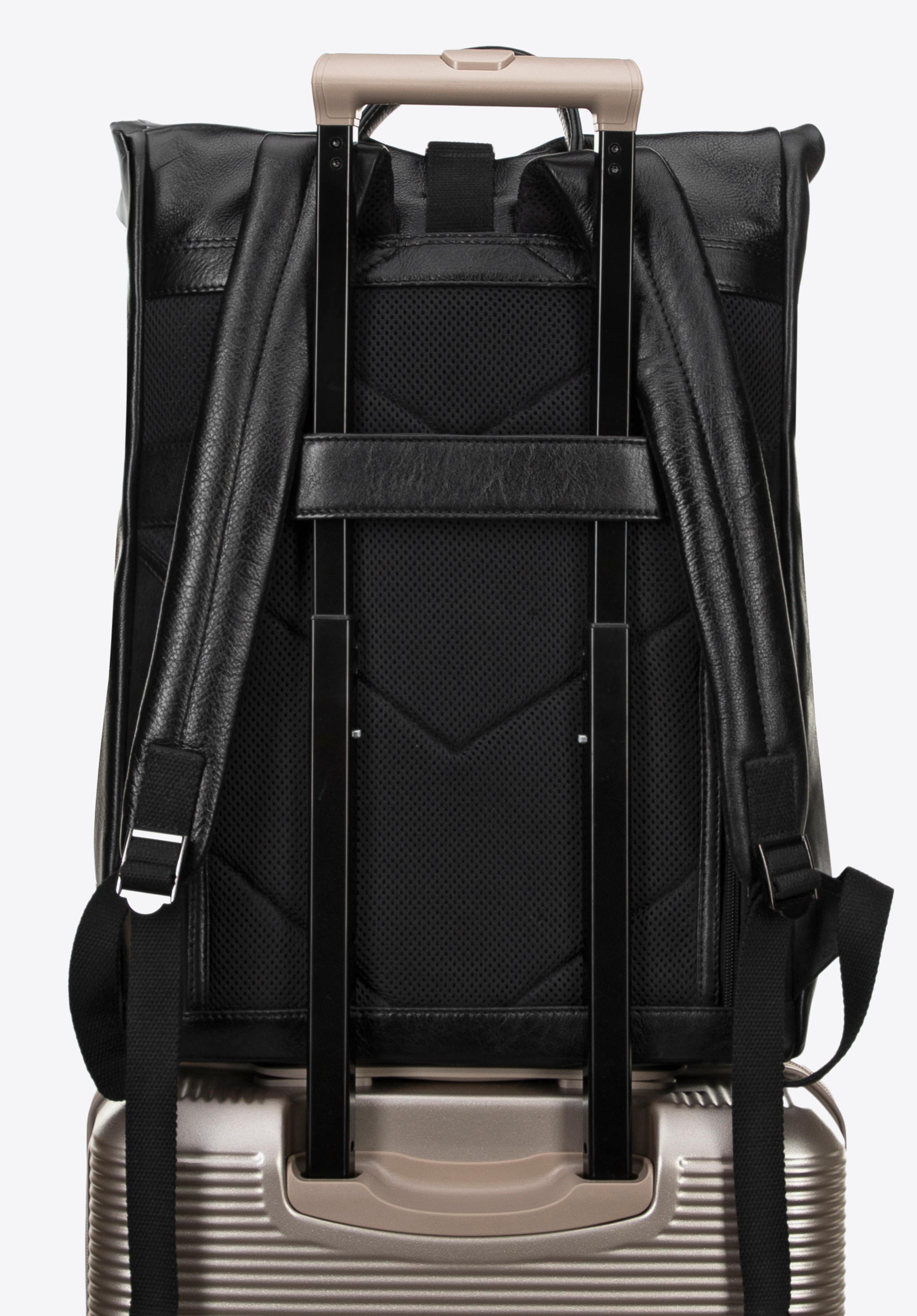 - Kofferhalterung : Erleichtert Geschäftsreisen, da Sie den Rucksack bequem am Griff Ihres Koffers befestigen können.