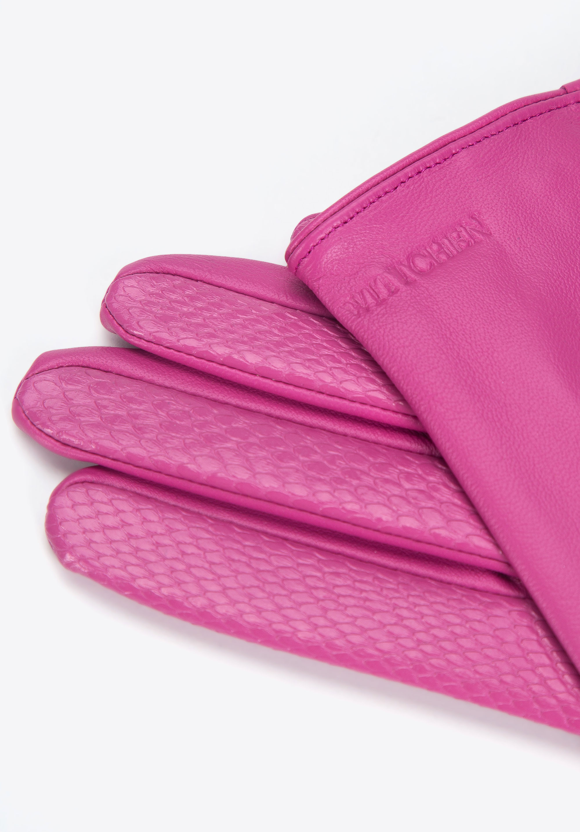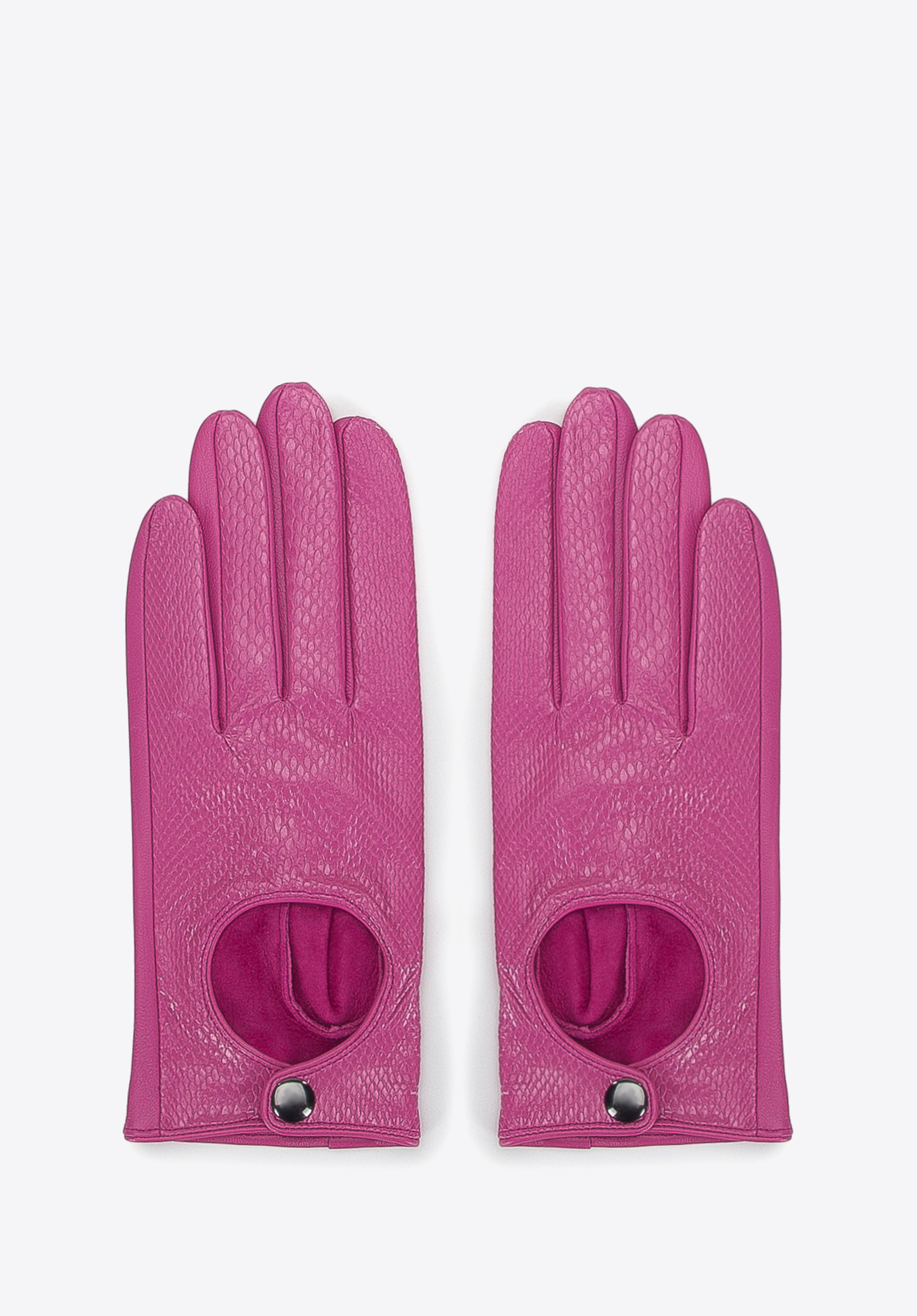 Diese modischen Damenhandschuhe unterstreichen jedes Outfit. Die Vorderseite ist aus glänzendem Leder gefertigt, während die Rückseite aus glattem Naturleder besteht. Der kurze Schnitt mit Verschluss am Handgelenk ist eine gute Wahl für Frühling und Herbst. Dieses Modell passt gut zu einer Jacke oder einem Mantel mit ¾-Ärmeln. Die Autohandschuhe für Damen aus Leder sind ein originelles Accessoire, das in Ihrem Kleiderschrank nicht fehlen darf.