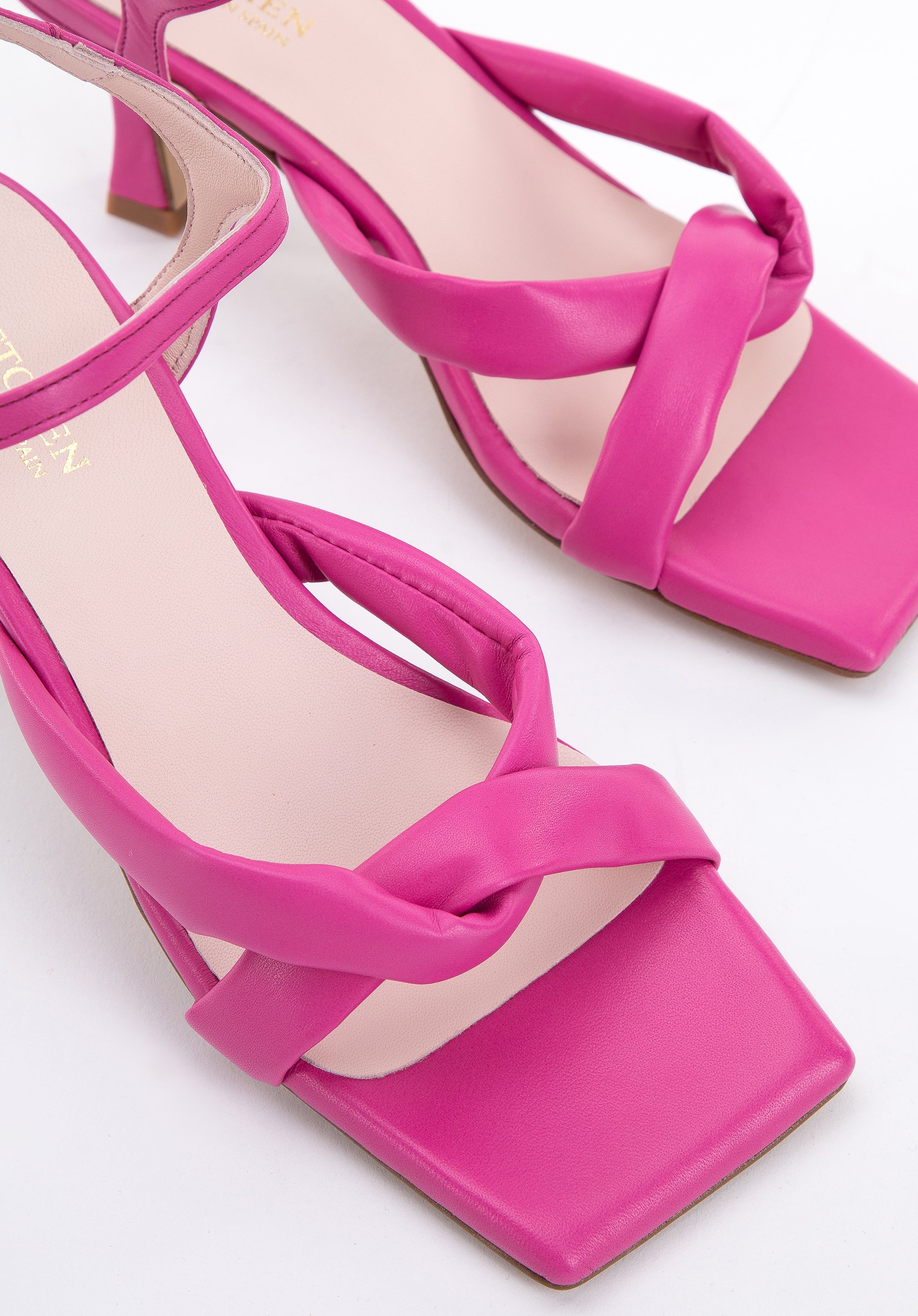 Diese Sandaletten sind ein modisches und bequemes Accessoire für jede Frau. Sie sind in Spanien aus hochwertigem Naturleder gefertigt.Die weichen Riemen an der Vorderseite des Schuhs umschließen den Fuß, während die Schließe am Knöchel ihn fest an seinem Platz hält. Die quadratische Schuhspitze ist sehr weich und rundet das Ganze stilvoll ab. Die Sandaletten für Damen aus Leder mit weichen Riemen sind eine gute Wahl, egal ob Sie sie zu einem ausgestellten Kleid oder zu Ihrer Lieblingshose mit weitem Bein und Hemd tragen.