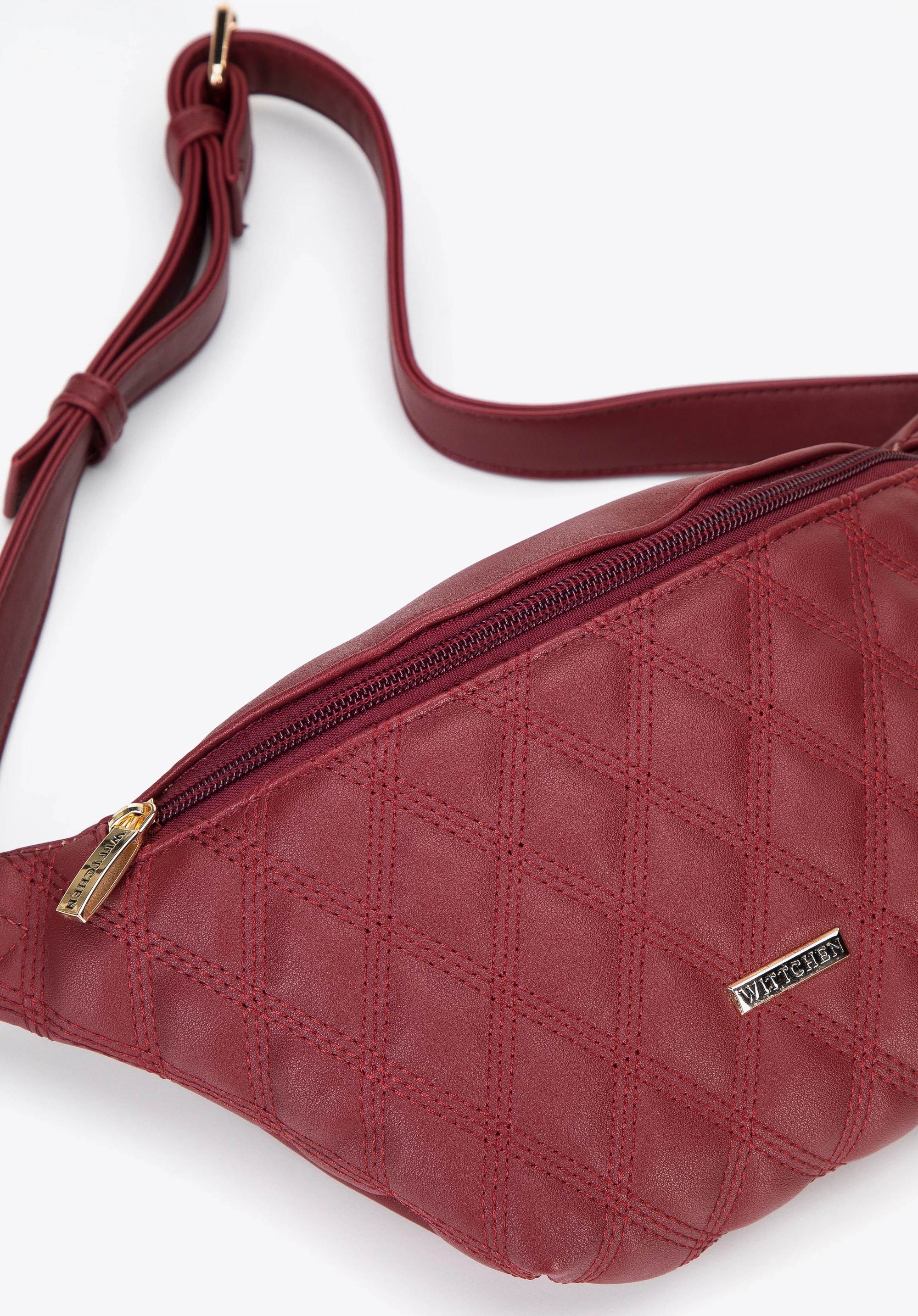 Diese originelle Gürteltasche ist die Klassik in der modernen Version. Sie ist aus angenehmem, Öko-Leder gefertigt. Die dekorative geometrische Steppung auf der Vorderseite zieht alle Blicke auf sich und verleiht ihm einen einzigartigen Charakter. Die Gürteltasche findet den Platz für ein Handy, Portemonnaie, einen kleiner Kalender, Handcreme und ein paar Kleinigkeiten. Außerdem ist sie sehr vielseitig und passt sowohl zu einem schlichten Kleid als auch zu Jeans und einem übergroßen Pullover. Die gesteppte Gürteltasche aus Öko-Lederr ist eine gute Wahl für Liebhaber praktischer und stilvoller Accessoires.