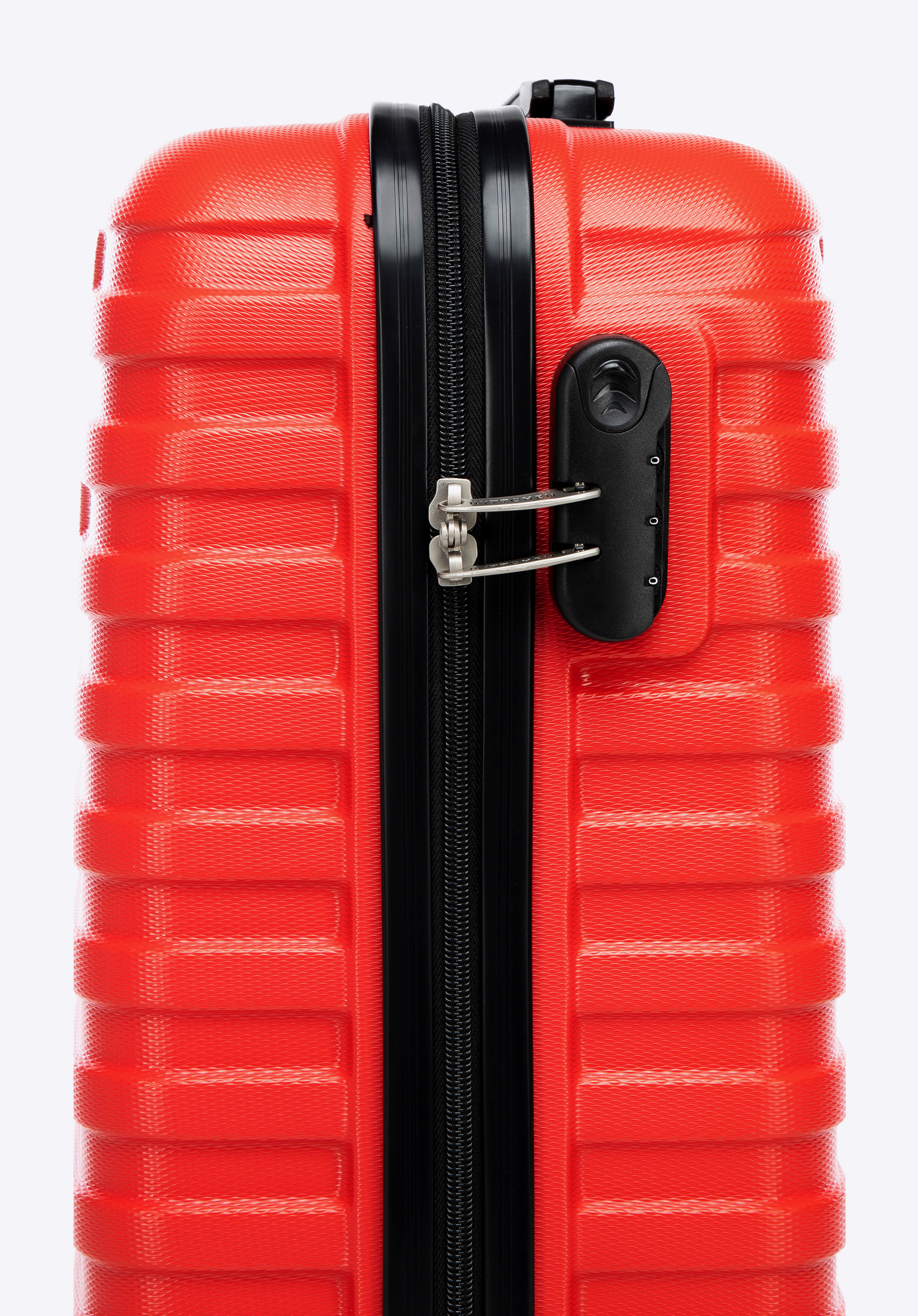 In dieser Kollektion befinden sich einfarbigen Kabinenkoffer, die aus strapazierfähigem ABS-Material hergestellt wurden. Dieses Modell passt perfekt zu einem Kosmetiketui in derselben Farbe. Dieser stillvolle Koffer ist in fünf verschiedenen Farben erhältlich: Schwarz, Rot, Grün, Blau und Gold.