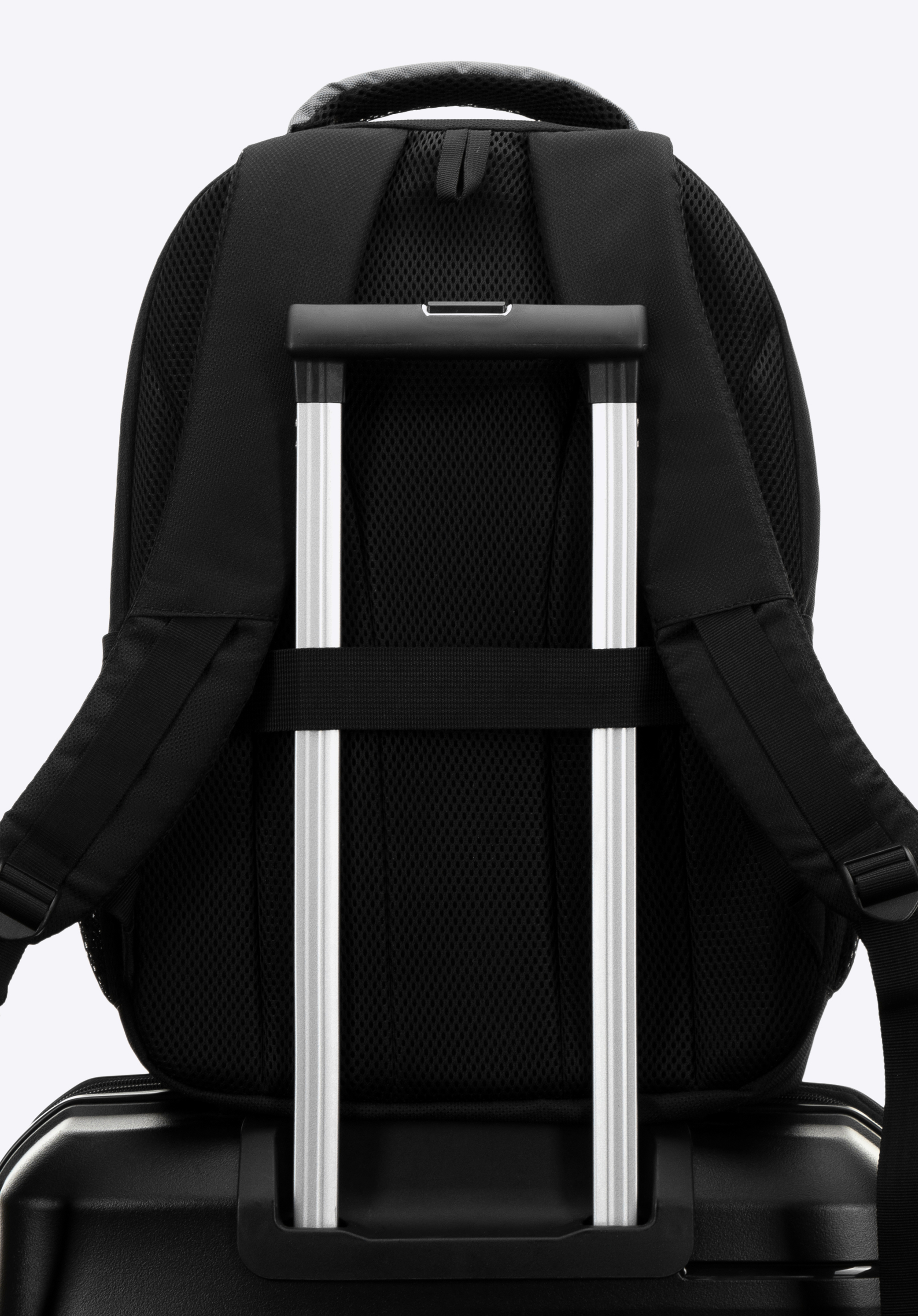 Unser Tipp: Dank Koffergurt lässt sich der Rucksack ganz einfach an einem kleinen Koffer befestigen und erleichtert so das Bewegen auf Flughäfen und Bahnhöfen.