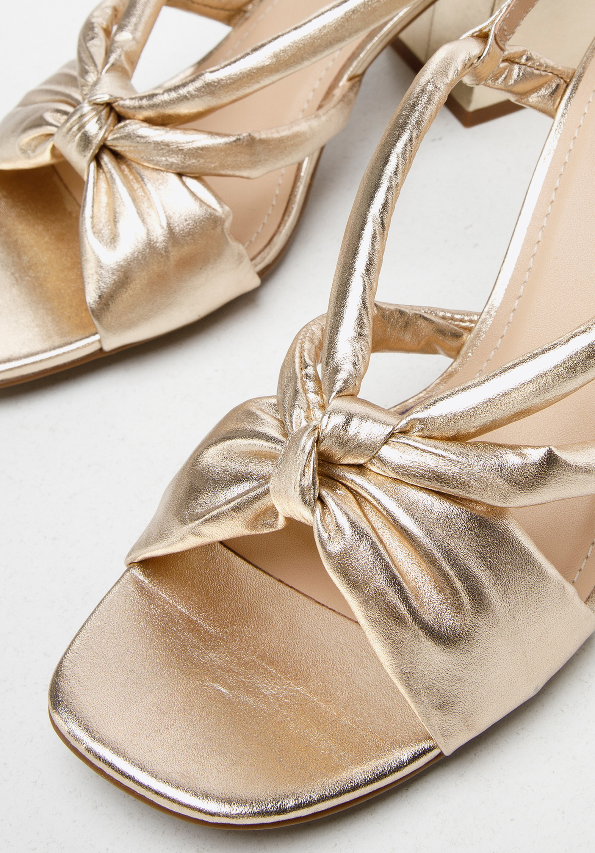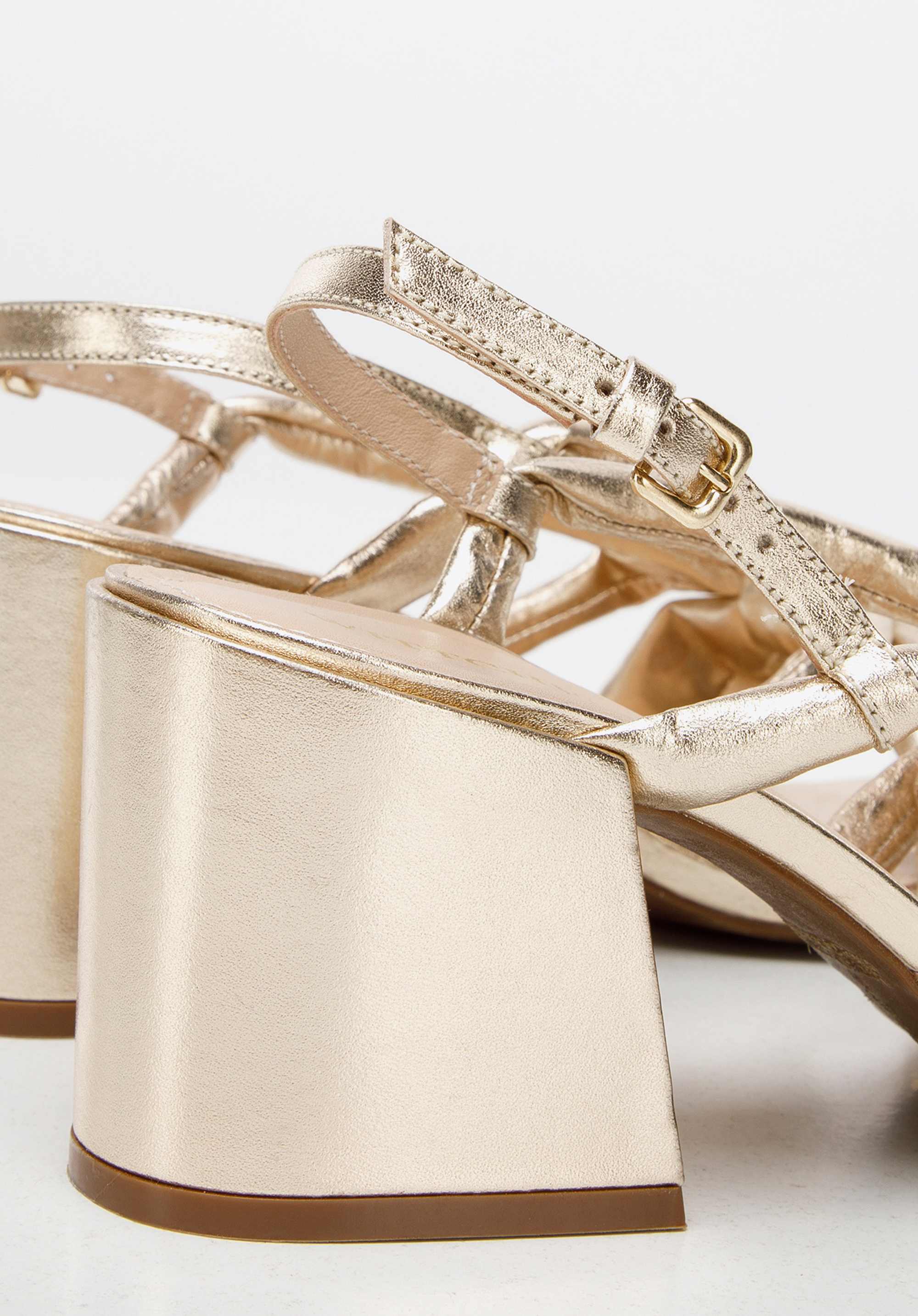 Diese Sandaletten vervollständigen Ihre Sommergarderobe. Sie sind aus weichem Naturleder gefertigt, das Ihren Fuß sanft umschließt. Der Absatz ist breit und stabil und hat die modisch abgeschnittene Form. Der Knoten sorgt für einen schönen Schnitt, der Ihr Bein schlanker macht. Diese Schuhe passen sowohl zu einem luftigen Sommerkleid als auch zu einem Hemd und einer weit geschnittenen Hose. Die Sandaletten für Damen aus Leder mit Knoten sind ein einzigartiges Modell, das Sie jeden Tag stilvoll aussehen lässt.