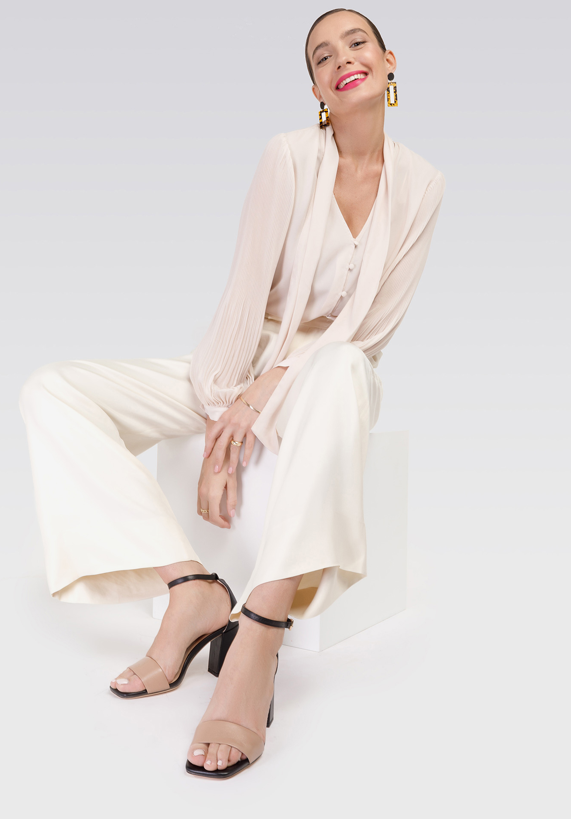 Unser Tipp: Die neutralen Farben der Schuhe erlauben es, sie auch mit den anderen Tönen zu kombinieren: Flaschengrün, Kobalt oder Orange.