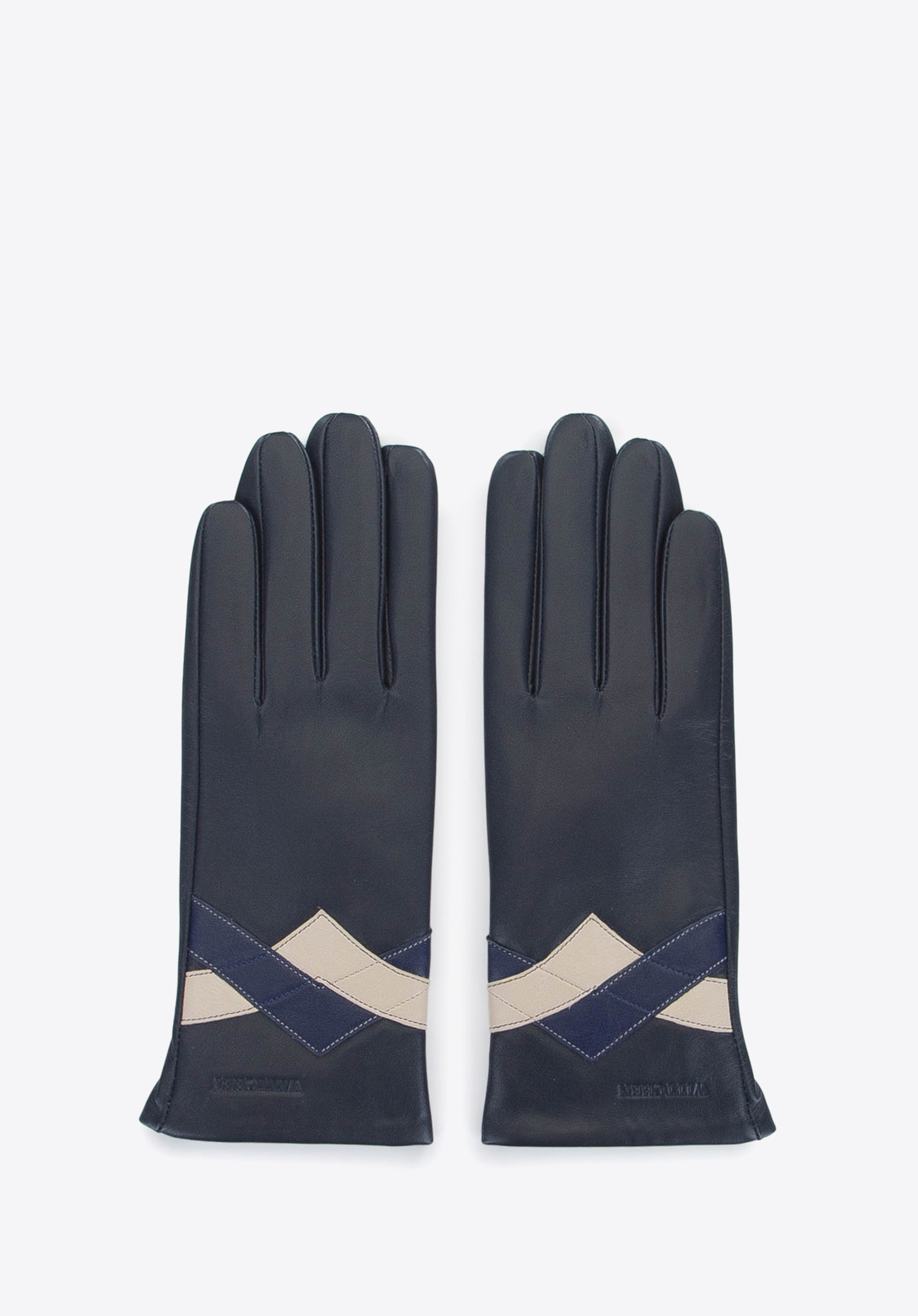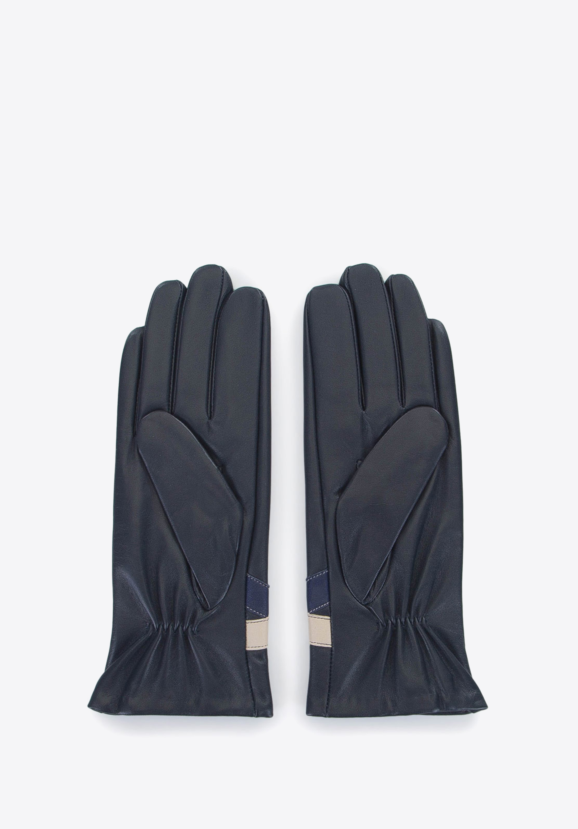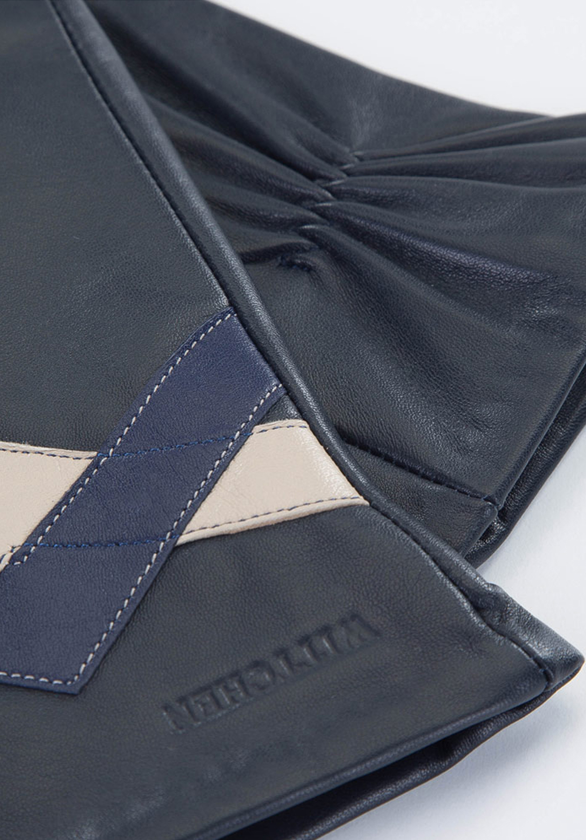 schwarz-dunkelblaue kontrastierende Lederhandschuhe für Damen