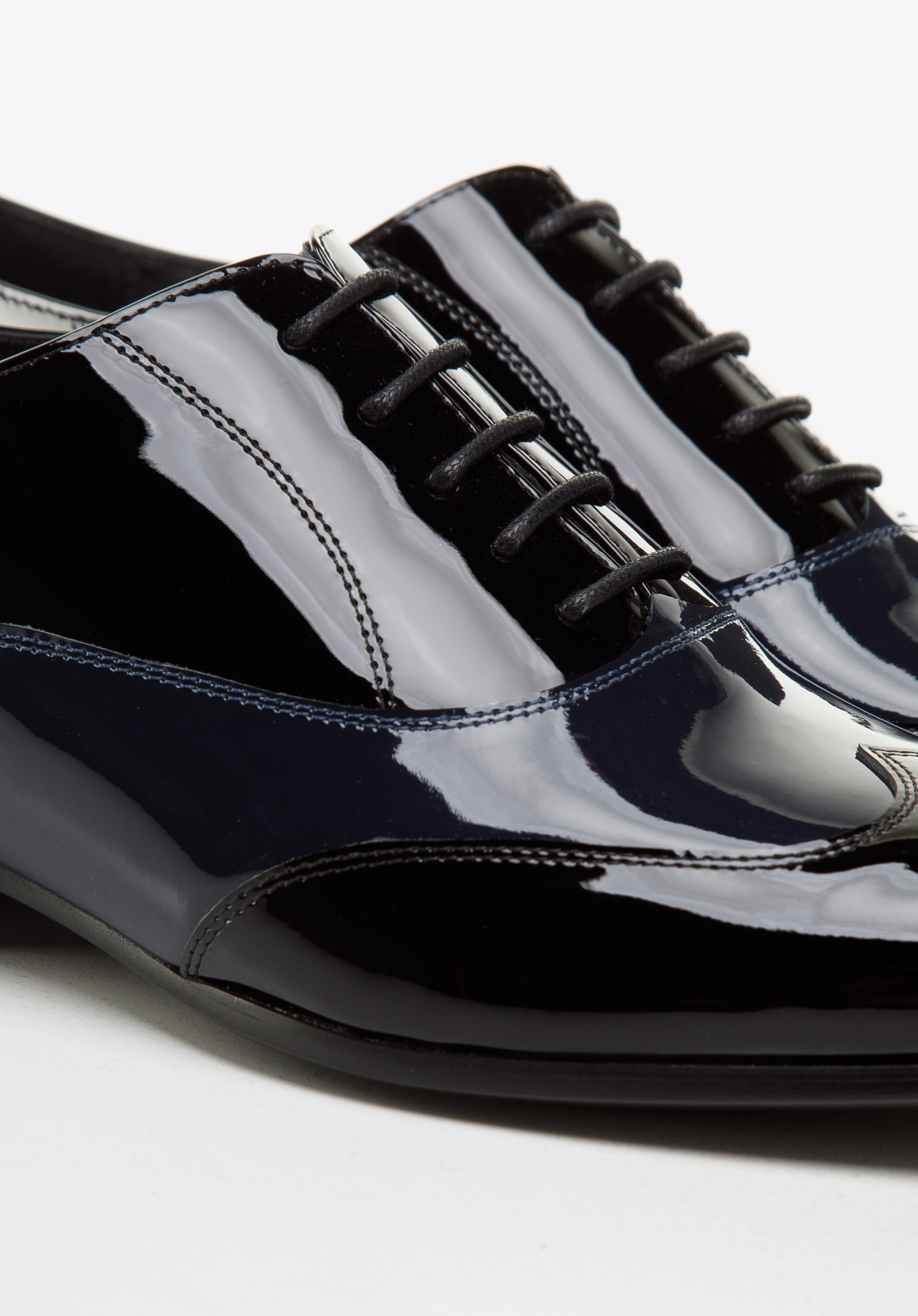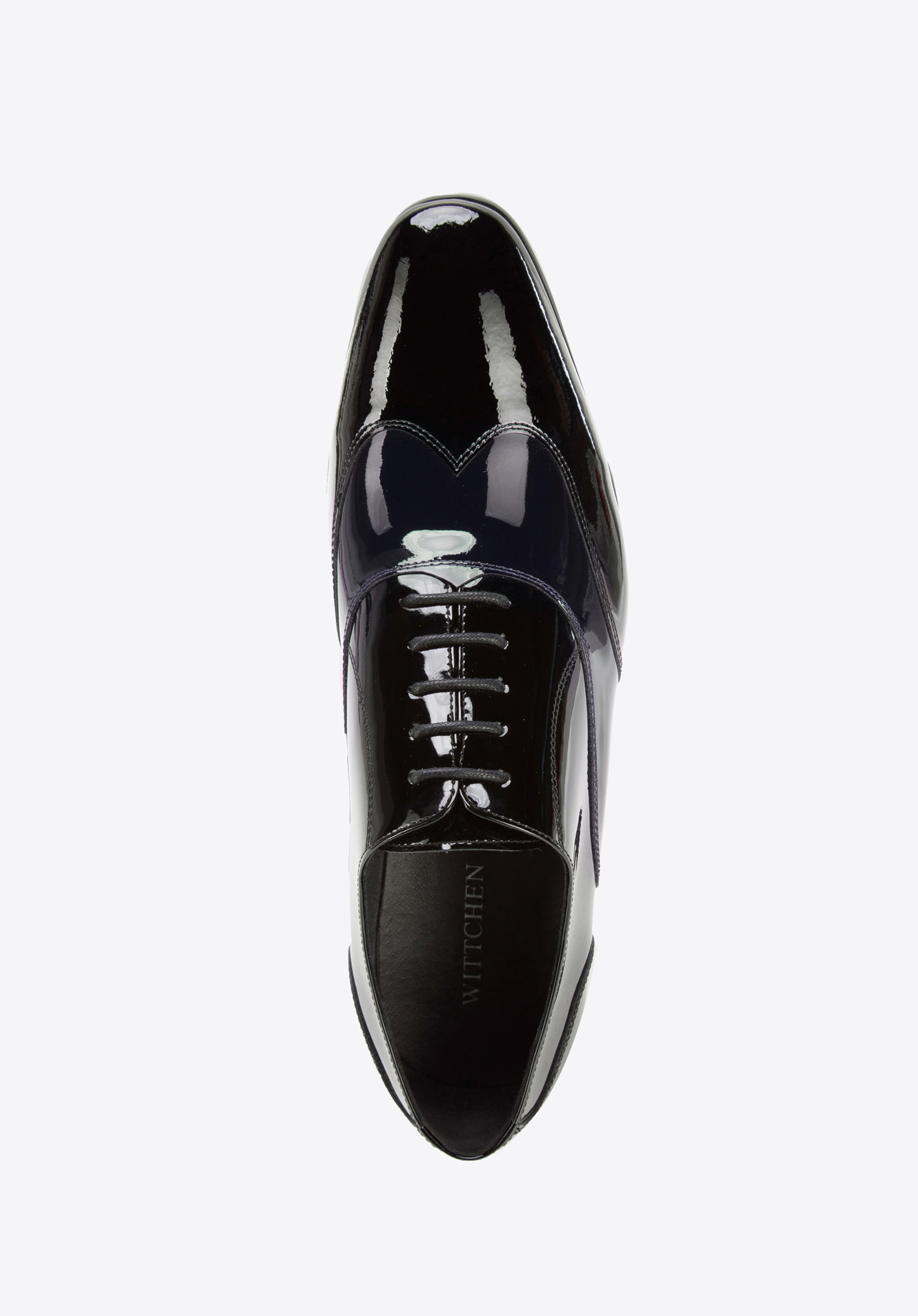 schwarz-dunkelblaue zweifarbige Oxfords aus Lackleder minimalistisch