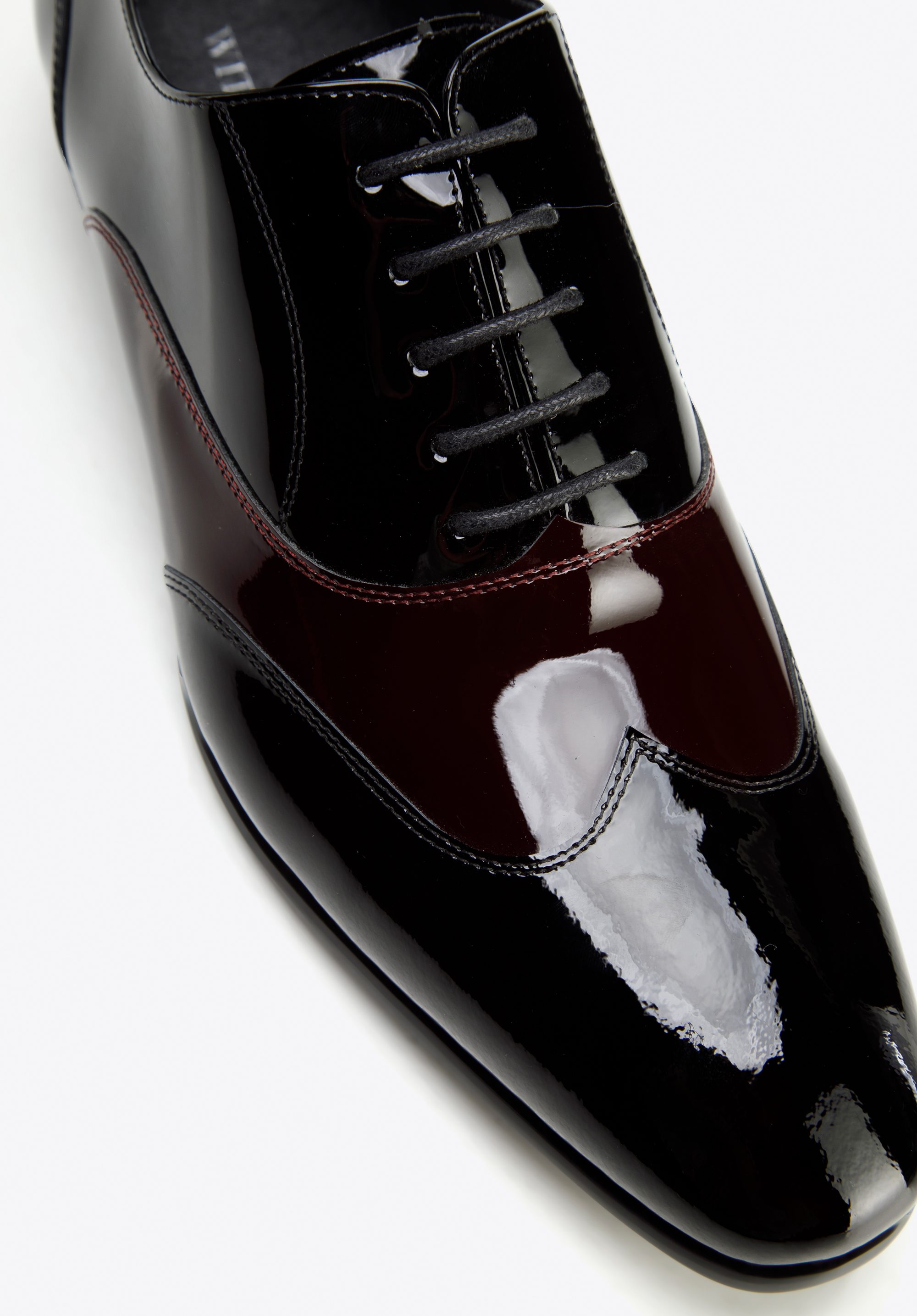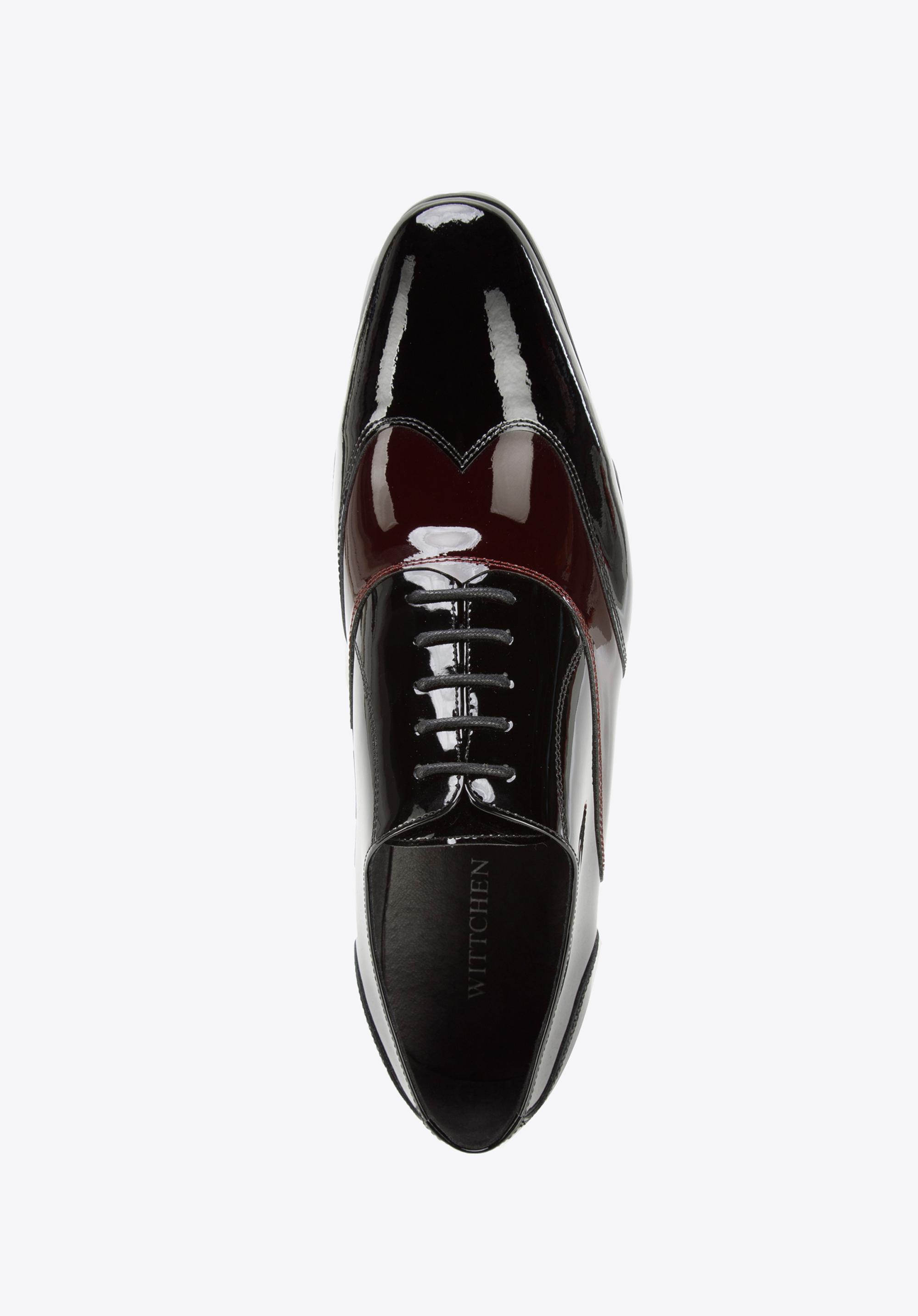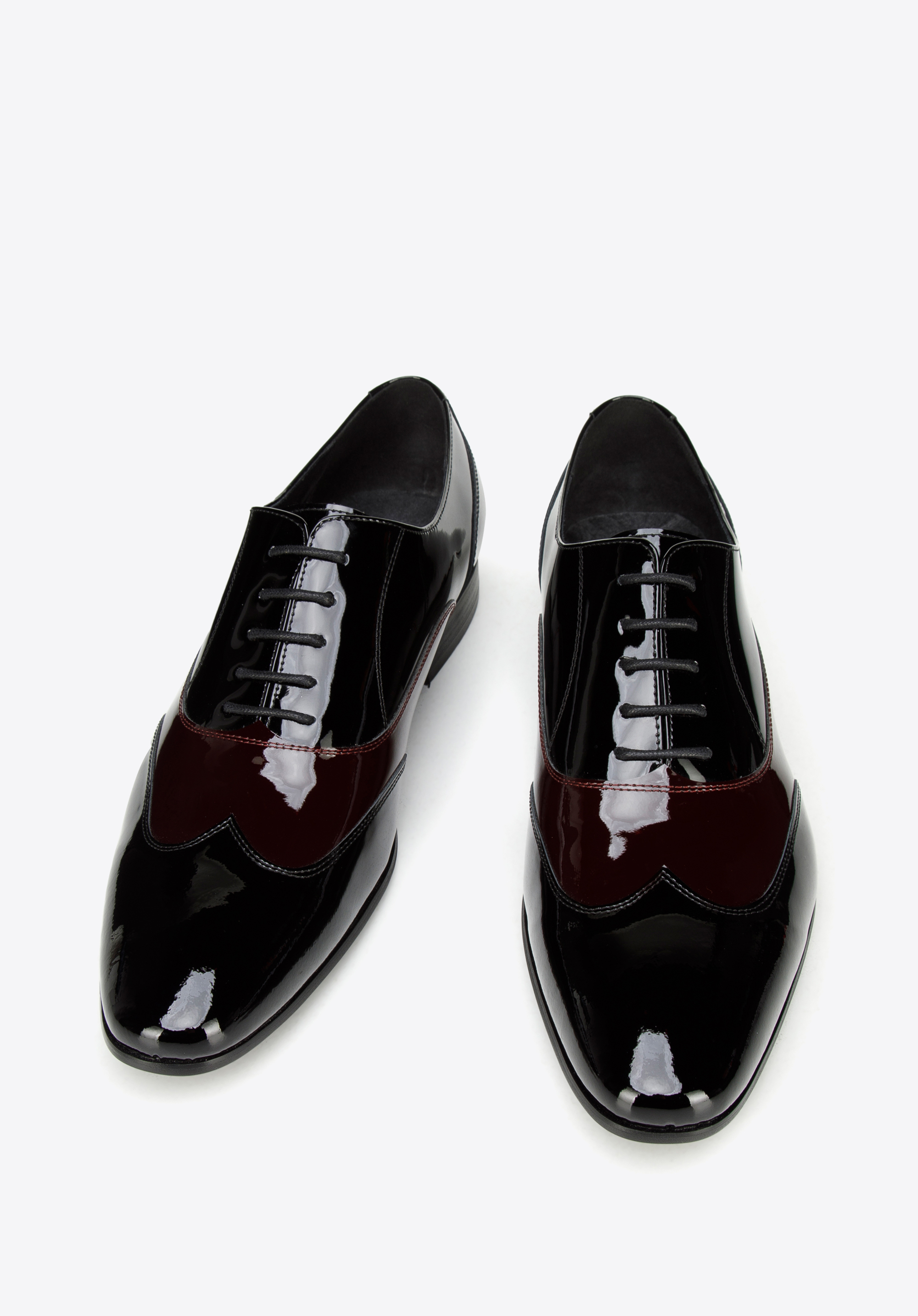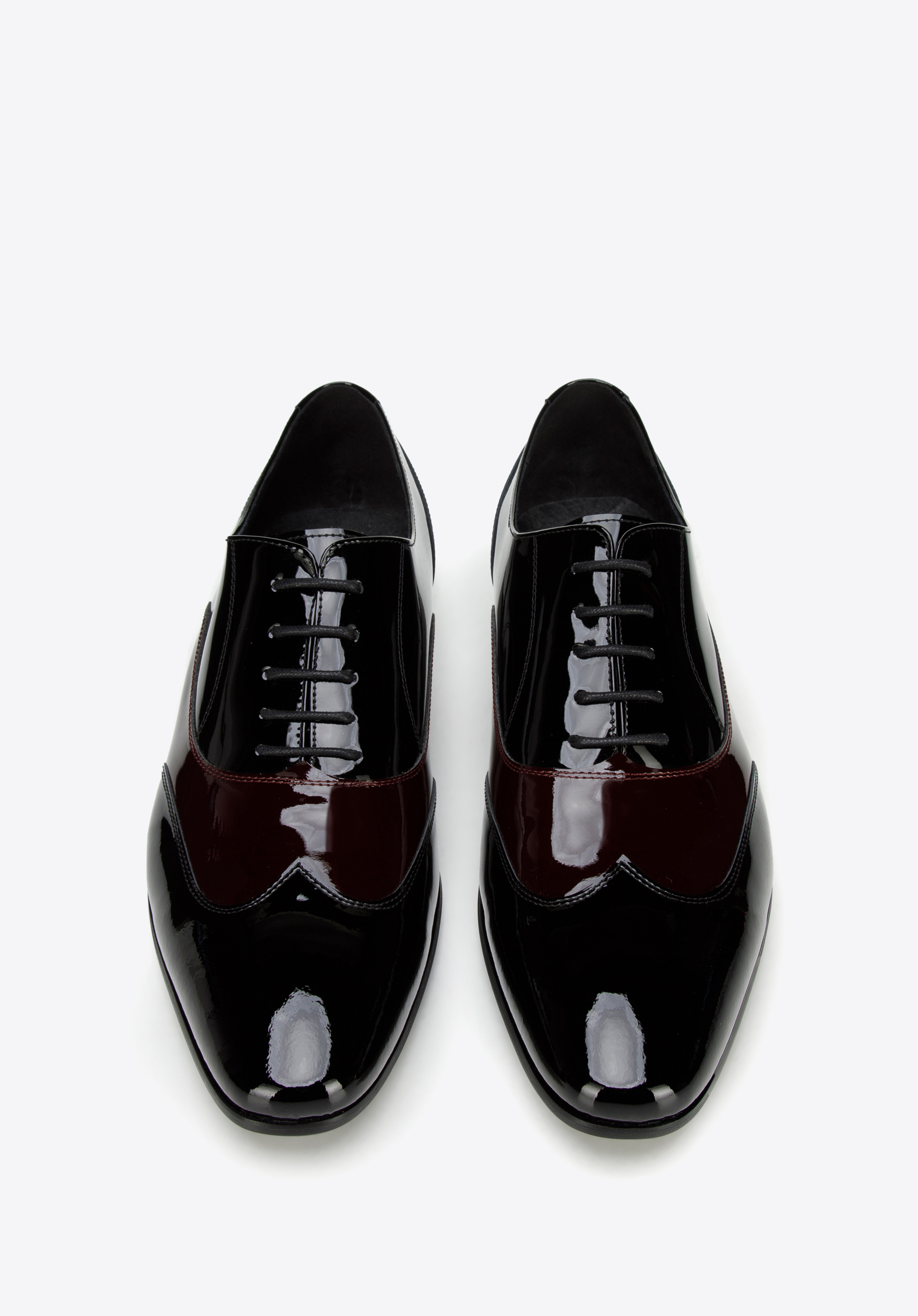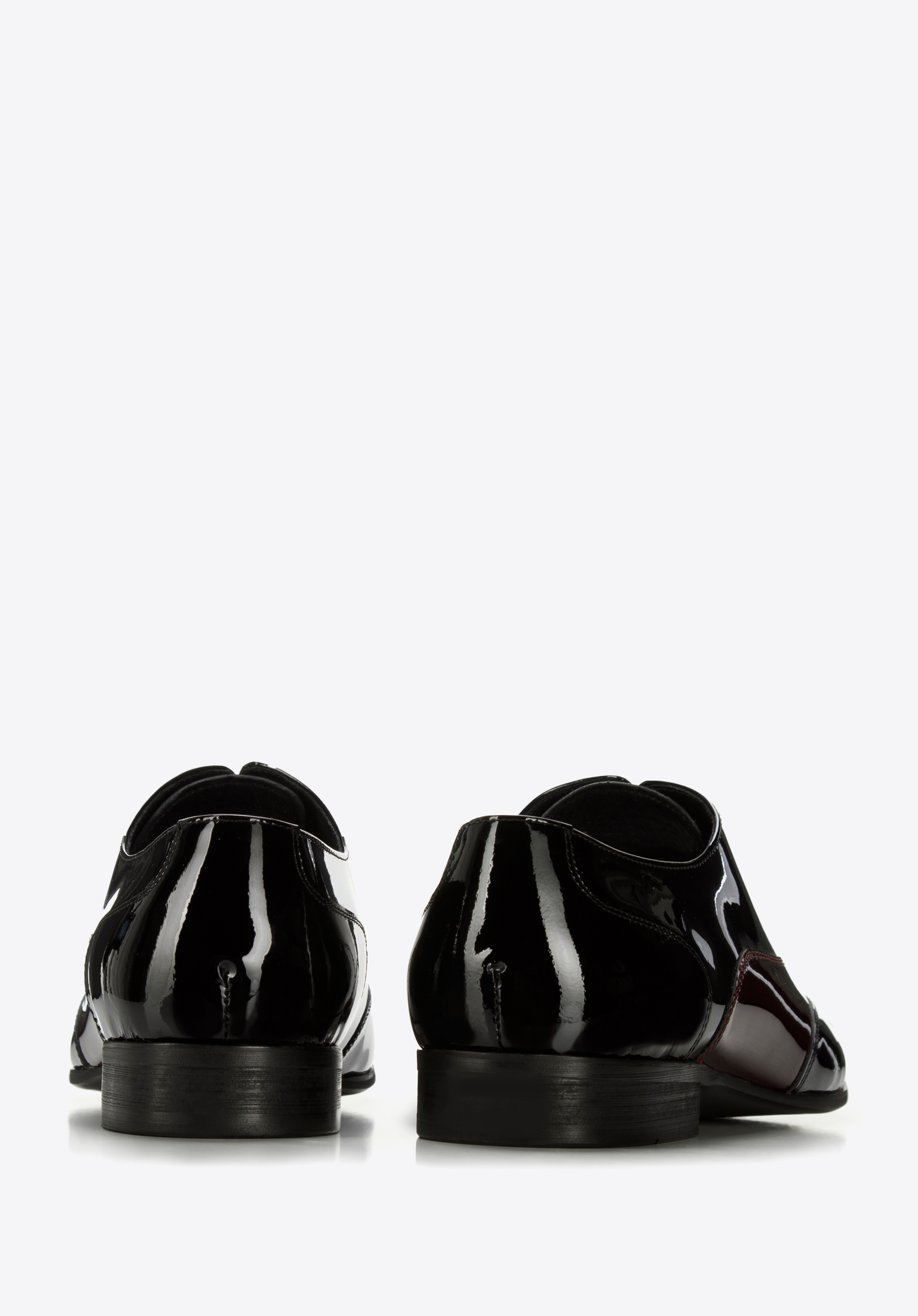schwarz-dunkelrote zweifarbige Oxfords aus Lackleder minimalistisch