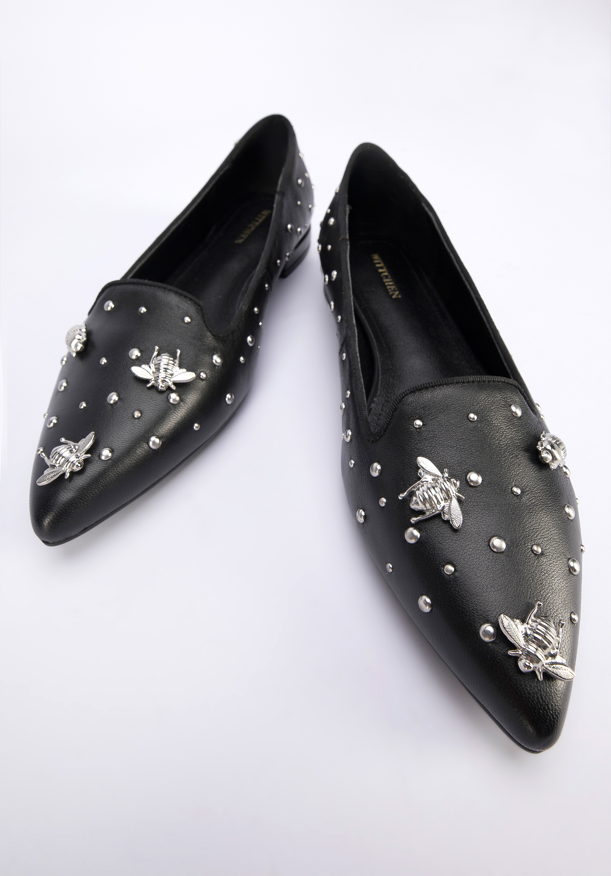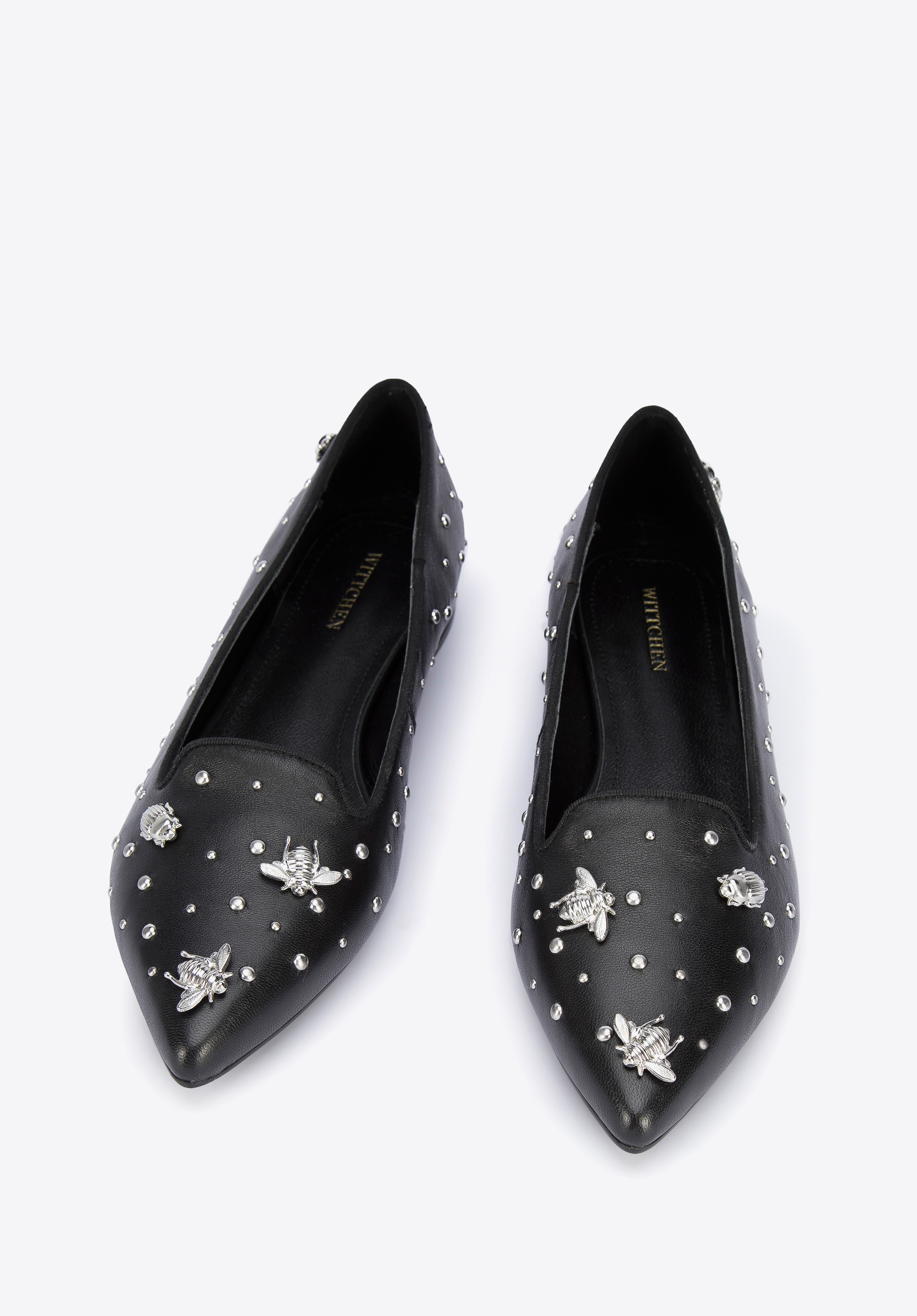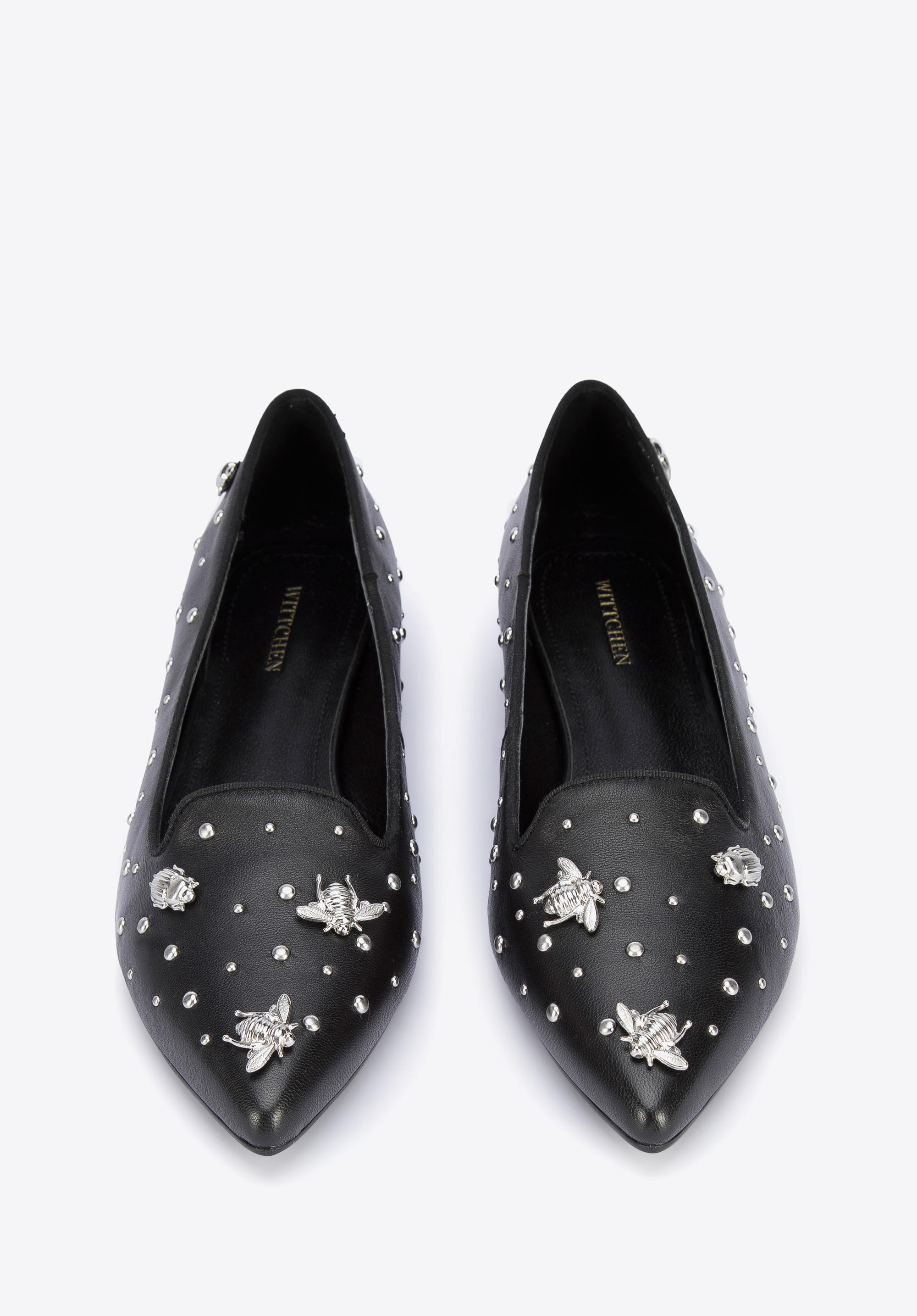 Diese modischen und bequemen Damenschuhe unterstreichen Ihr Outfit jeden Tag. Sie sind aus hochwertigem Naturleder gefertigt, so dass es sich um ein Accessoire handelt, das jahrelang halten wird. Sie sind mit Nieten in Insektenform verziert. Die spitze Schuhkappe verschlankt den Fuß und dank der Lederinnensohle und des weichen Futters können Sie sie den ganzen Tag tragen. Kombinieren Sie sie zum Beispiel mit einem Minirock und einem Hemd oder mit einer maßgeschneiderten Hose und einem T-Shirt - sie passen zu fast allem und betonen Ihr Outfit. Die Lords aus Leder mit Insekten sind eine gute Wahl für Liebhaber von originellen Accessoires.