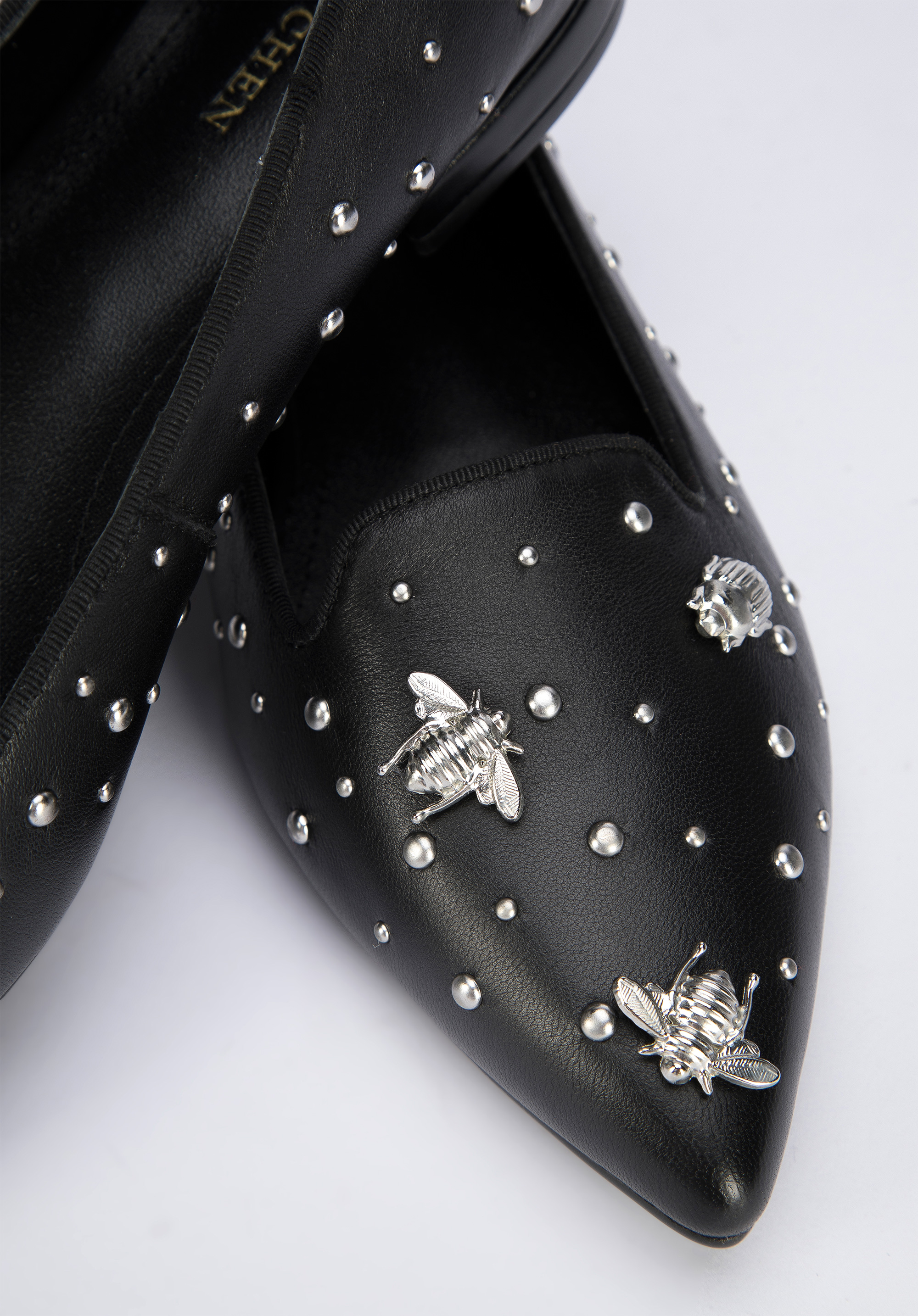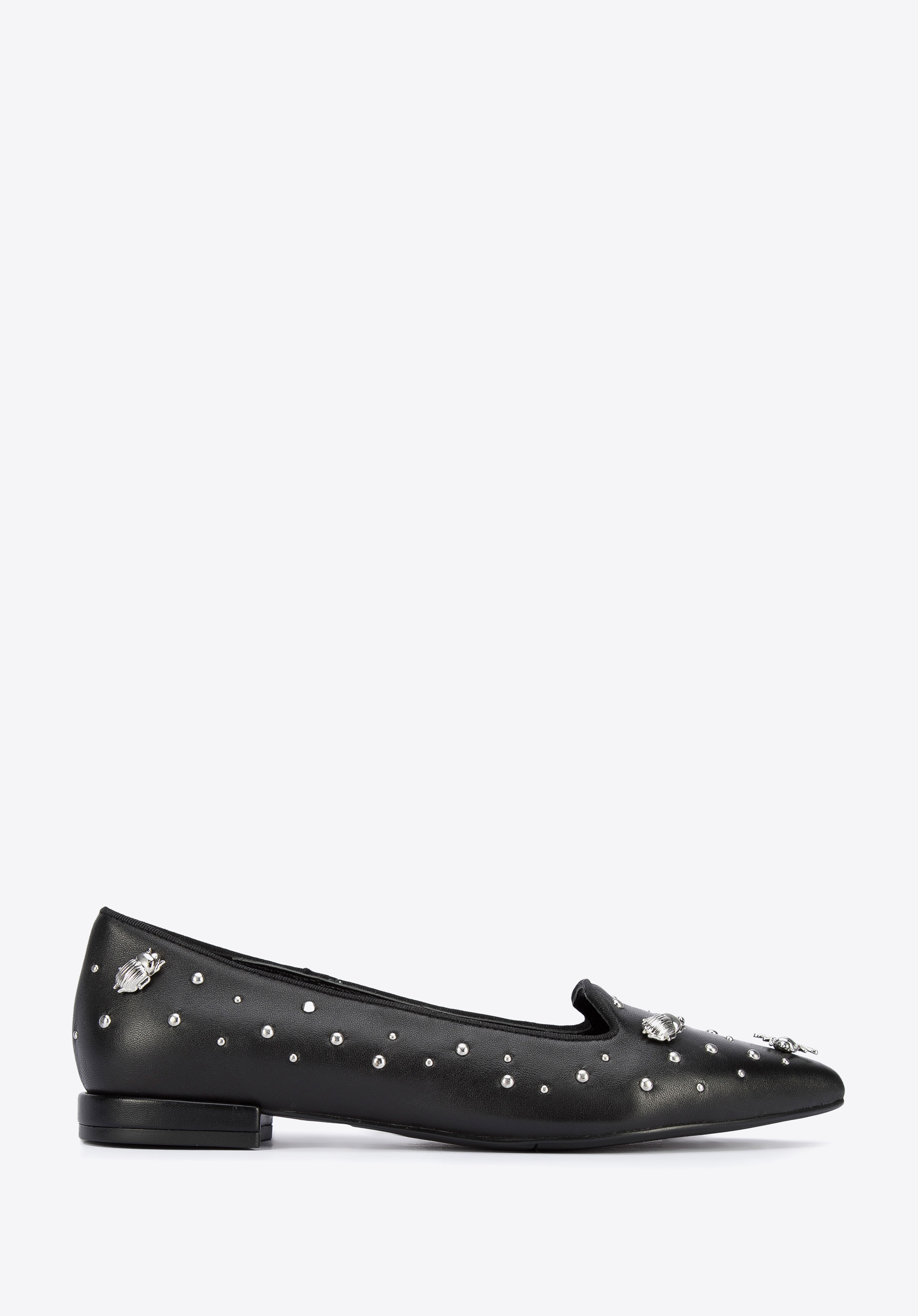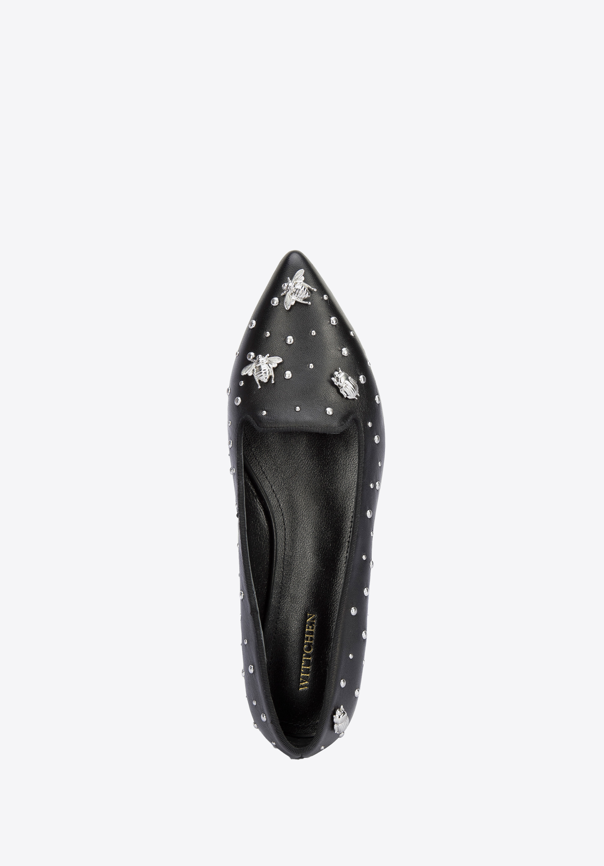 Diese modischen und bequemen Damenschuhe unterstreichen Ihr Outfit jeden Tag. Sie sind aus hochwertigem Naturleder gefertigt, so dass es sich um ein Accessoire handelt, das jahrelang halten wird. Sie sind mit Nieten in Insektenform verziert. Die spitze Schuhkappe verschlankt den Fuß und dank der Lederinnensohle und des weichen Futters können Sie sie den ganzen Tag tragen. Kombinieren Sie sie zum Beispiel mit einem Minirock und einem Hemd oder mit einer maßgeschneiderten Hose und einem T-Shirt - sie passen zu fast allem und betonen Ihr Outfit. Die Lords aus Leder mit Insekten sind eine gute Wahl für Liebhaber von originellen Accessoires.