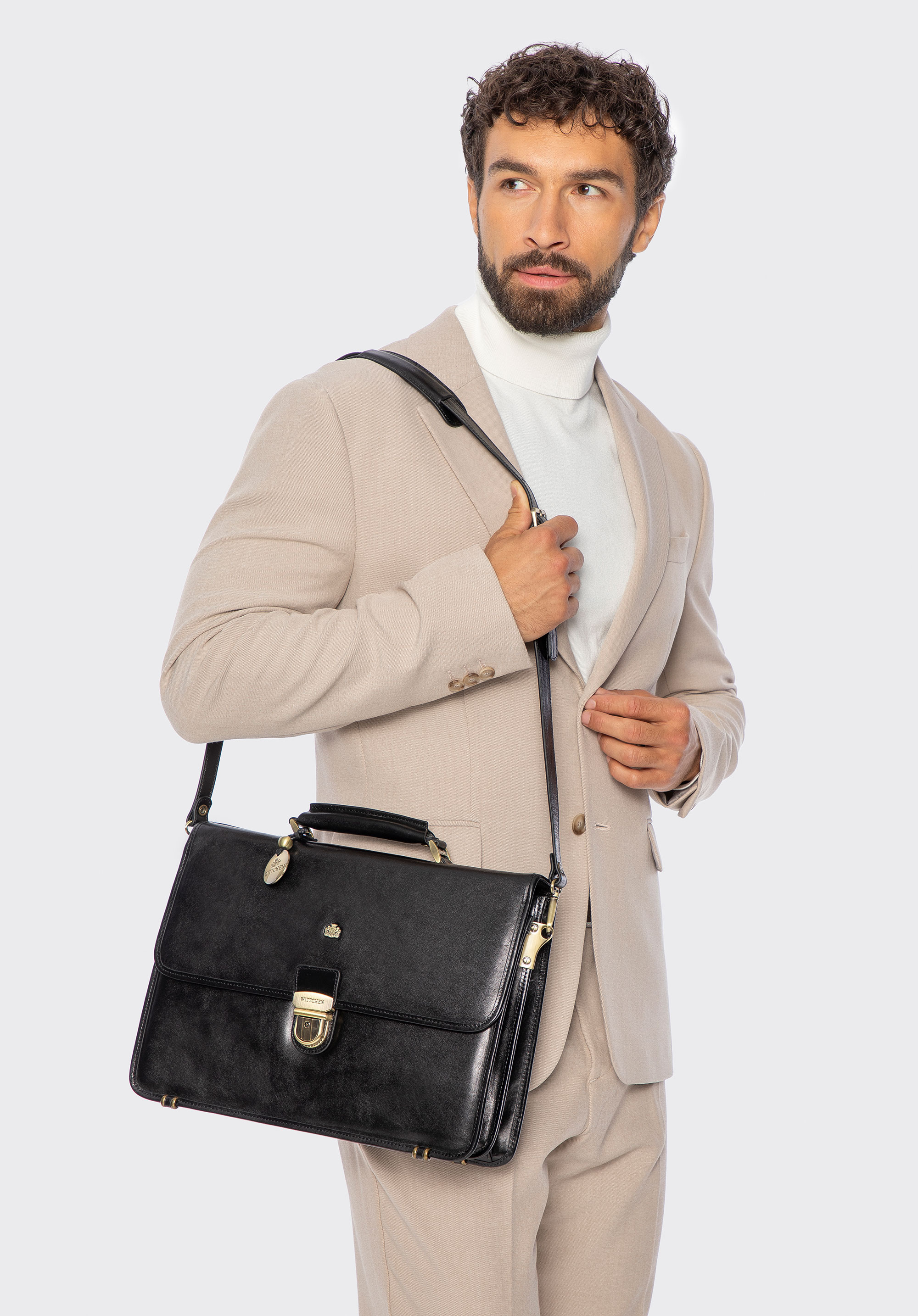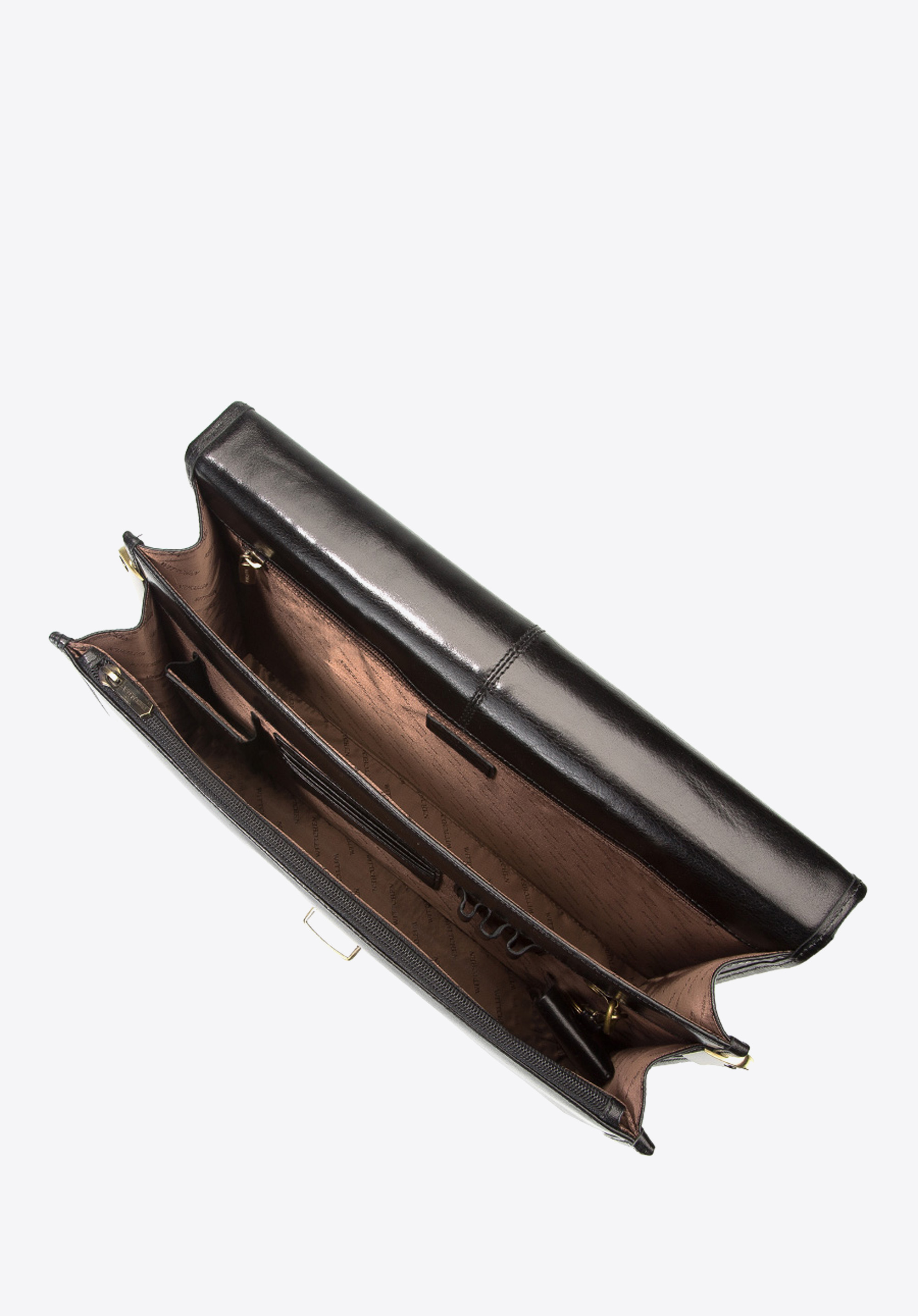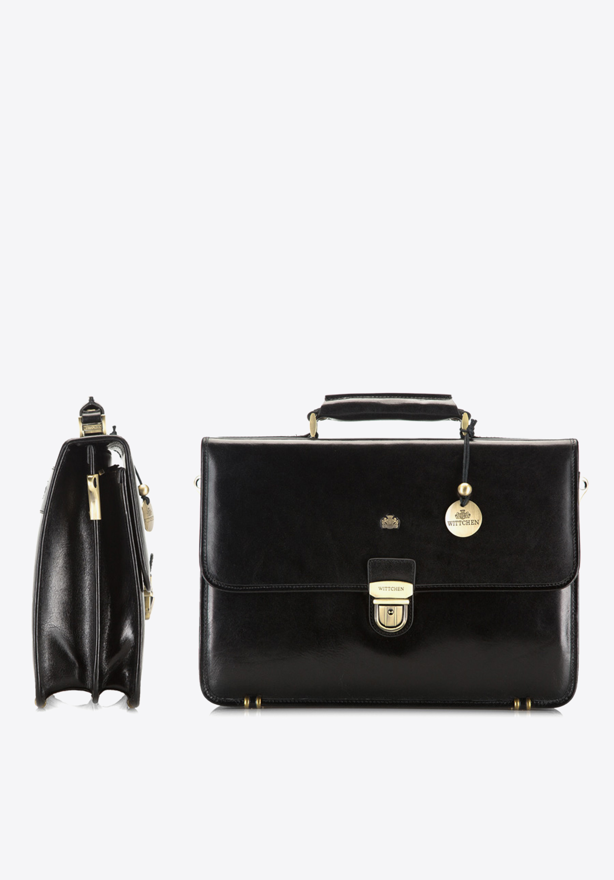 Aktentasche aus der Arizona-Kollektion. Handgearbeitet aus widerstandsfähigem, leicht glänzendem Kalbsleder. Goldenes Metallplättchen mit WITTCHEN-Wappen.