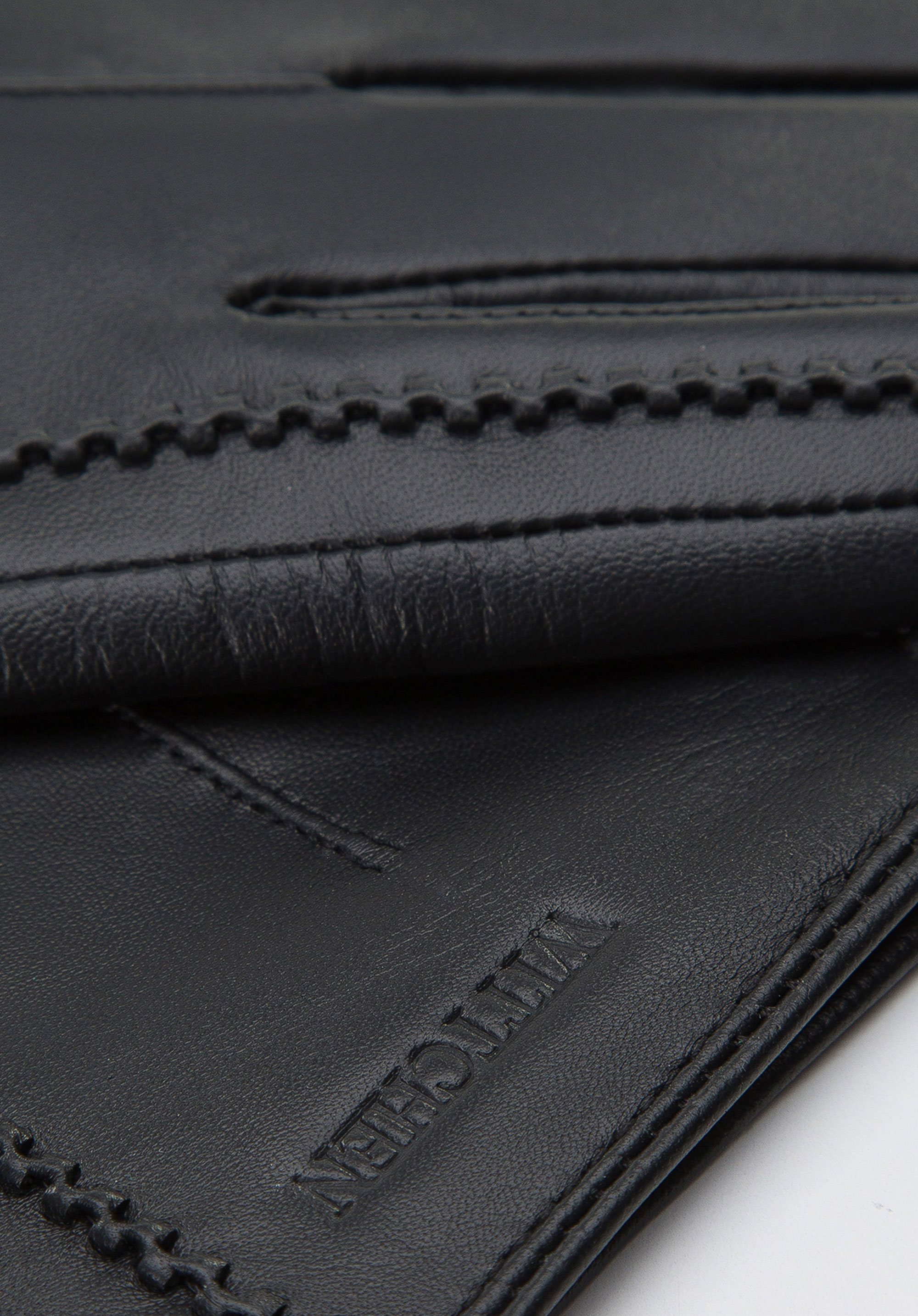 schwarze Damenhandschuhe aus Leder mit mit Ziernähten