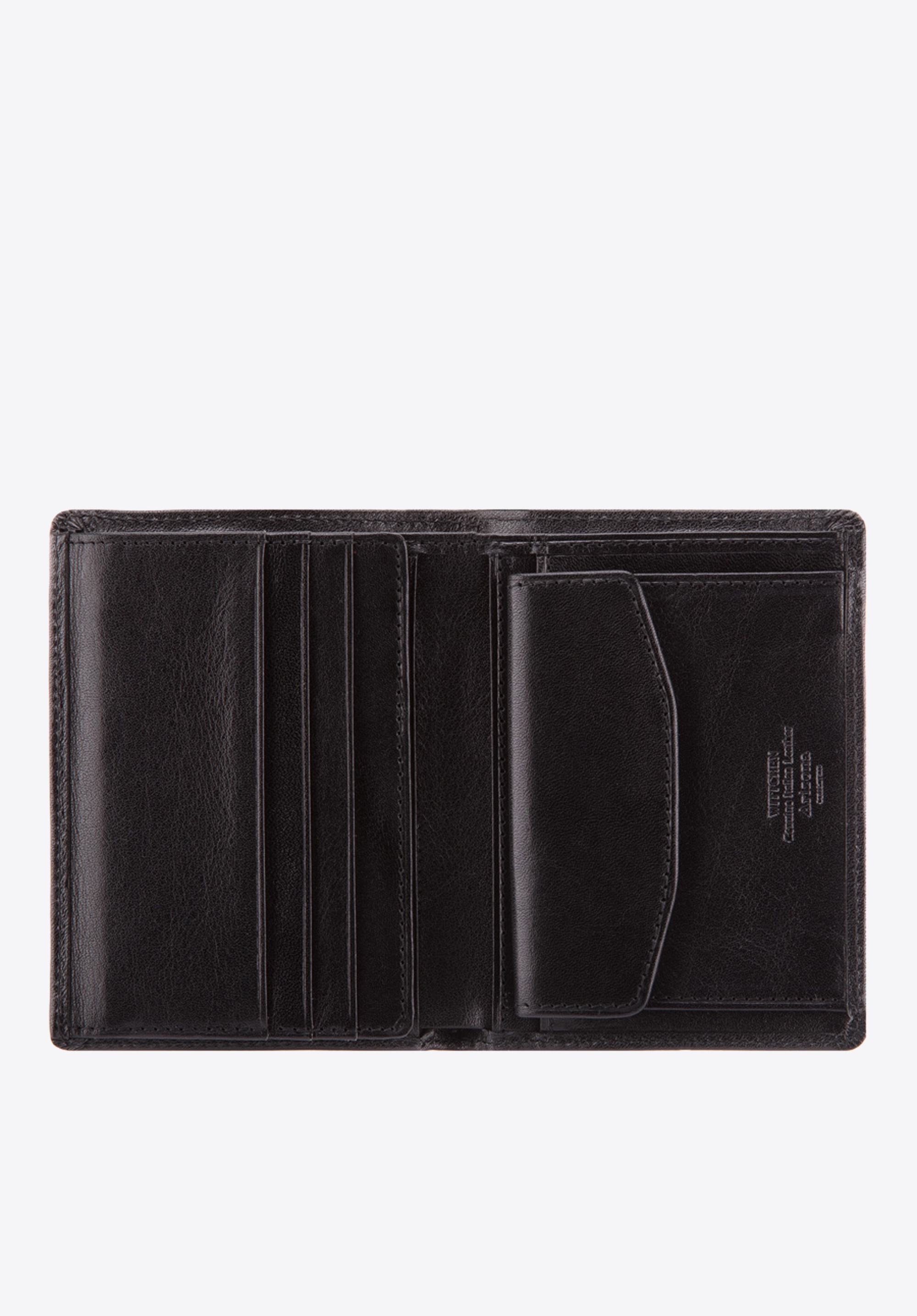 Die große Geldbörse wird sorgfältig aus hochwertigem Kalbsleder mit fein glänzender Oberfläche handgenäht. Dieses Modell zeichnet sich durch seine kompakte Größe und das durchdachte Interieur aus. Dieser Geldbeutel eignet sich ideal für alle Personen, die nach hohem Tragekomfort und ergonomischem Design suchen.