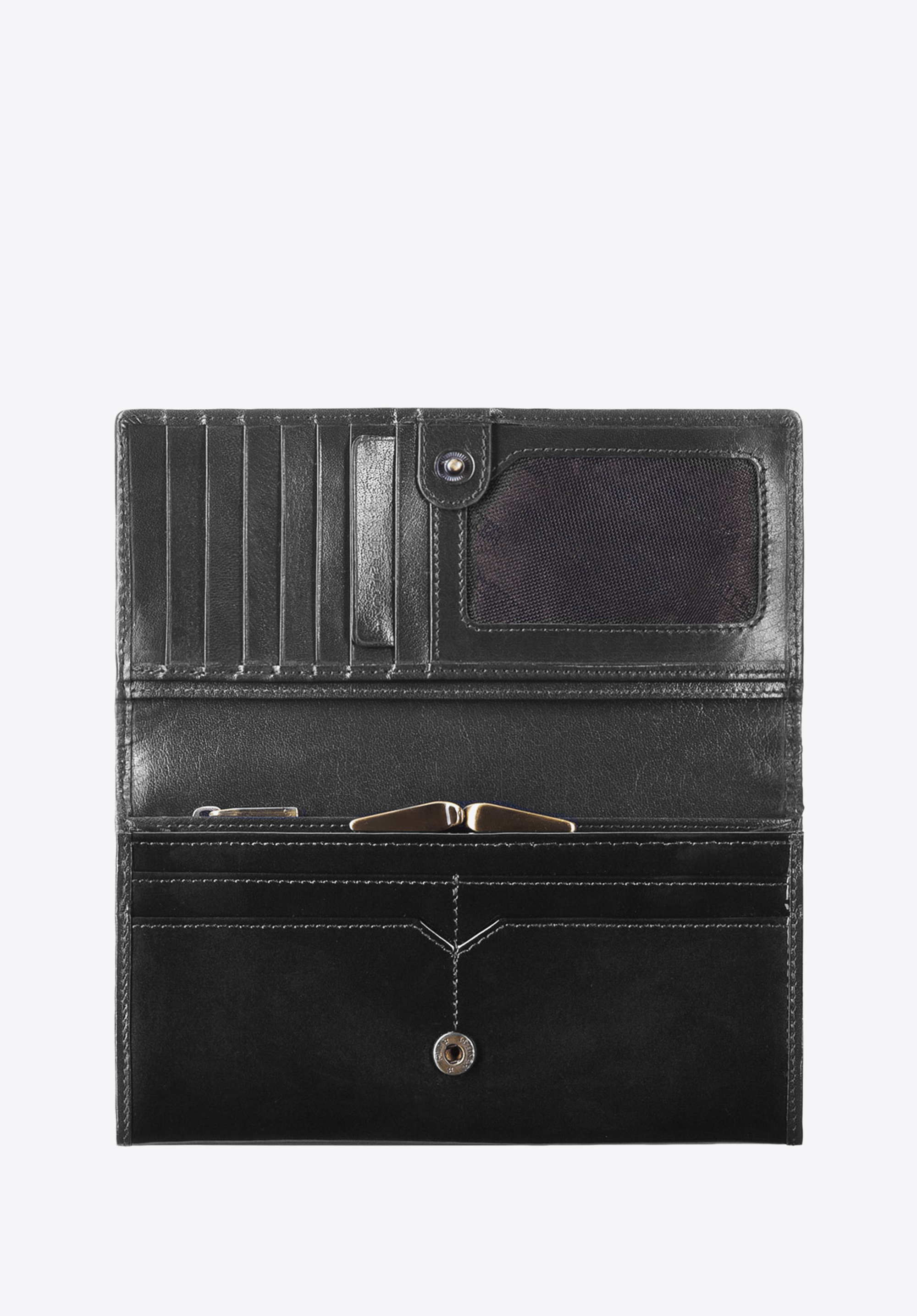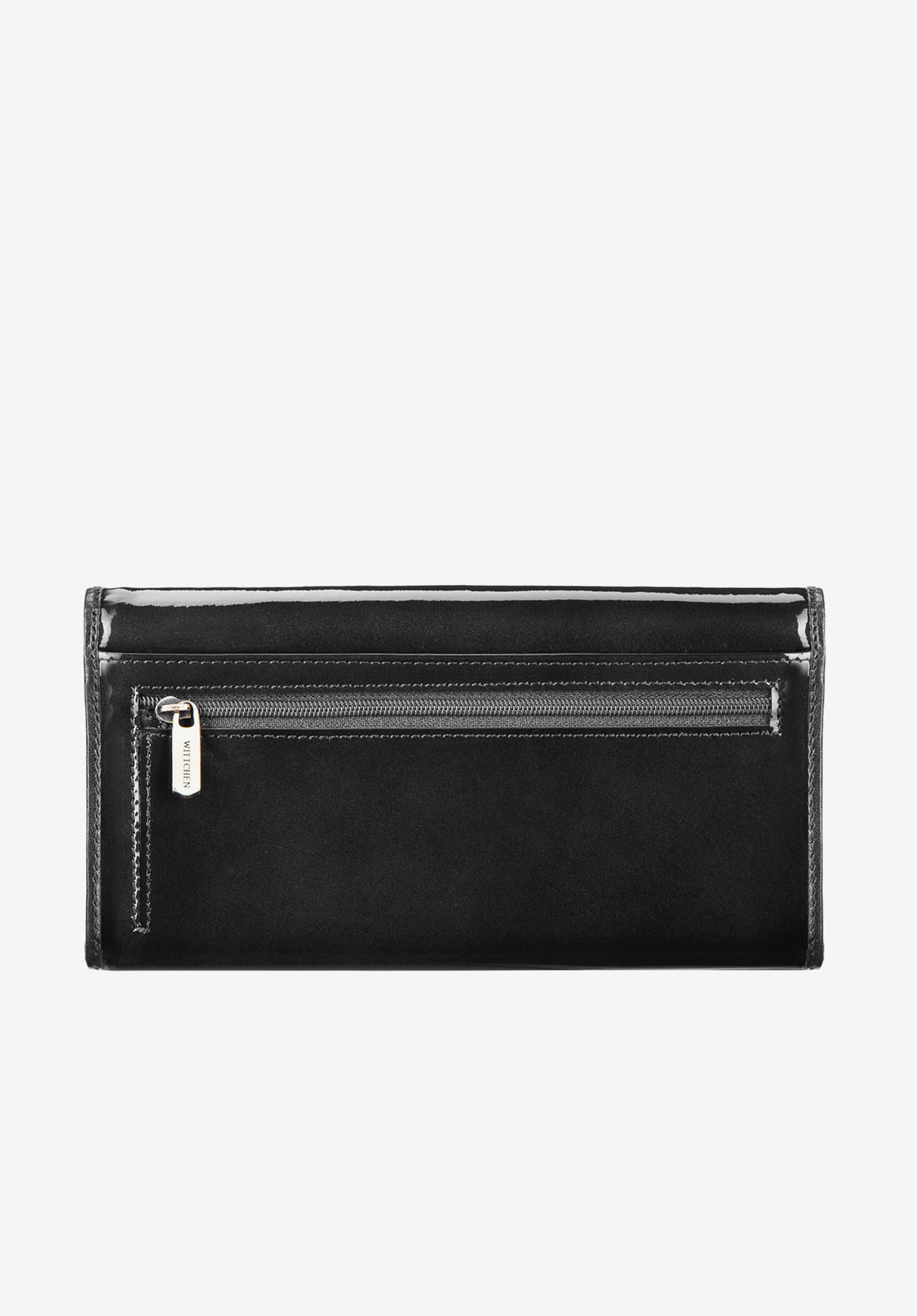 Die stilvolle Geldbörse für Damen wird aus hochwertigem Lackleder mit glänzender Oberfläche genäht. Mit goldfarbener Metallverzierung und tiefer Farbe gewinnt dieses Accessoire einen außergewöhnlichen Charakter. Darüber hinaus bietet das geräumige Modell vielfältige Staumöglichkeiten und verfügt über einen RFID-Schutz. Im Angebot befinden sich drei überzeitliche Farbvarianten: Schwarz, Dunkelblau und Burgunderrot.