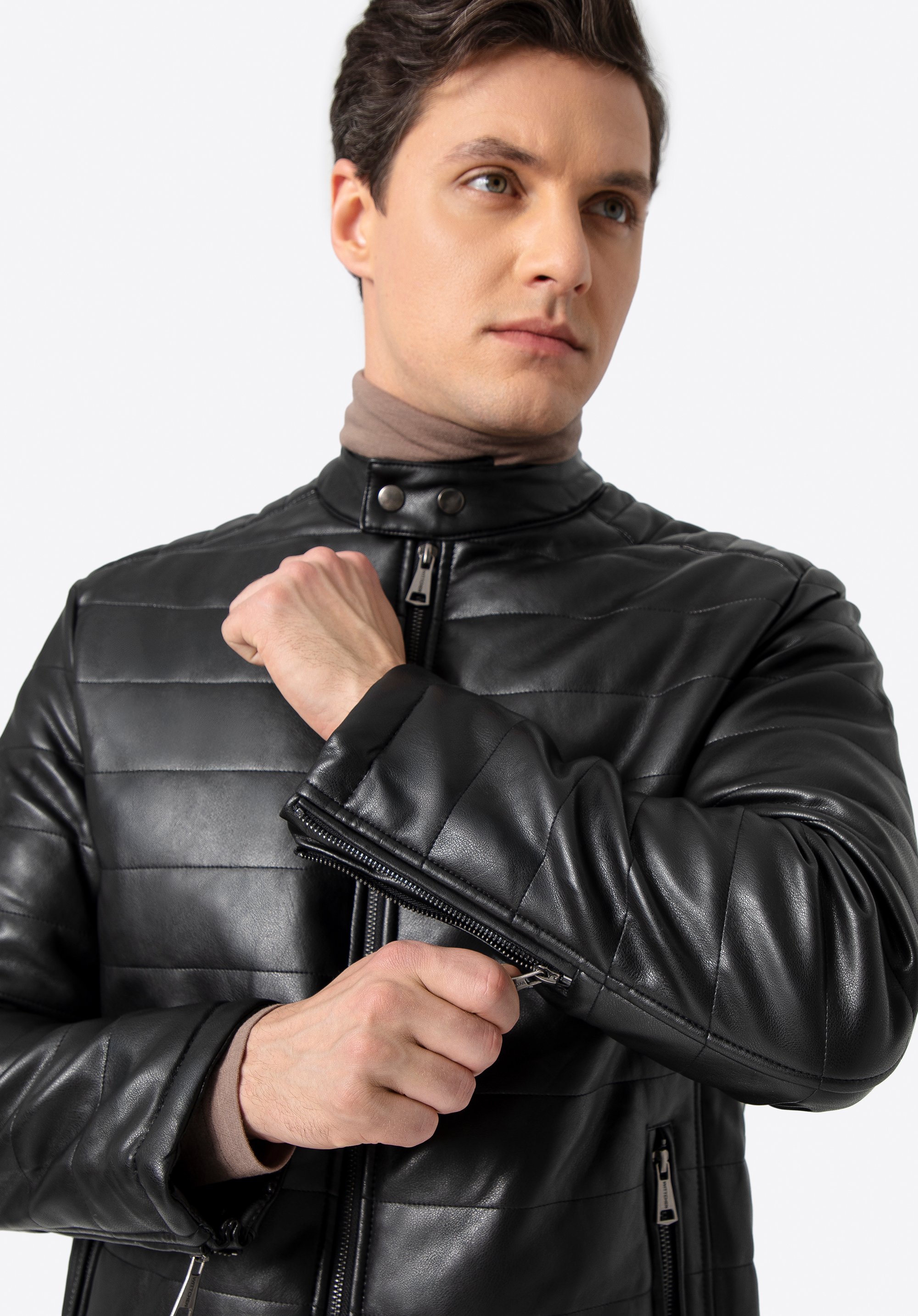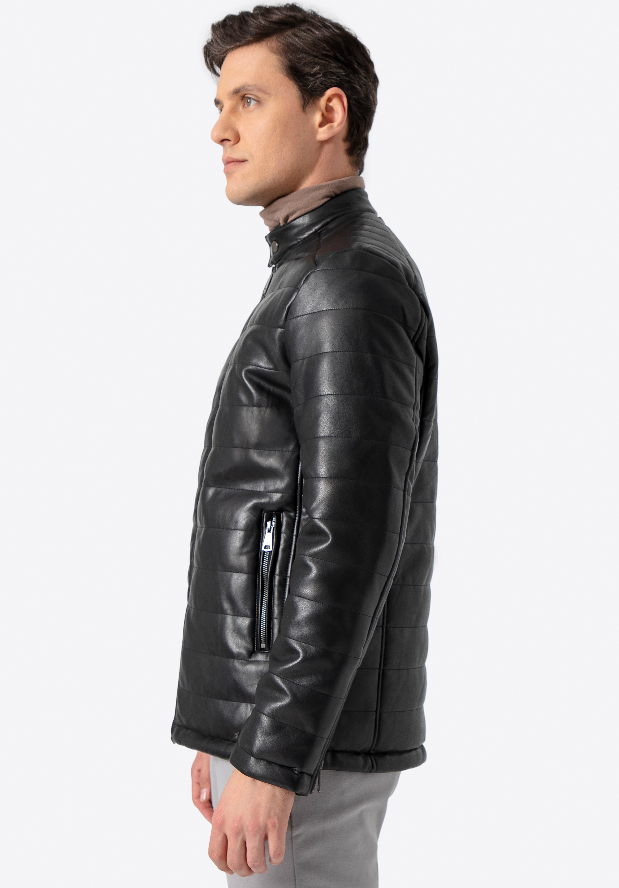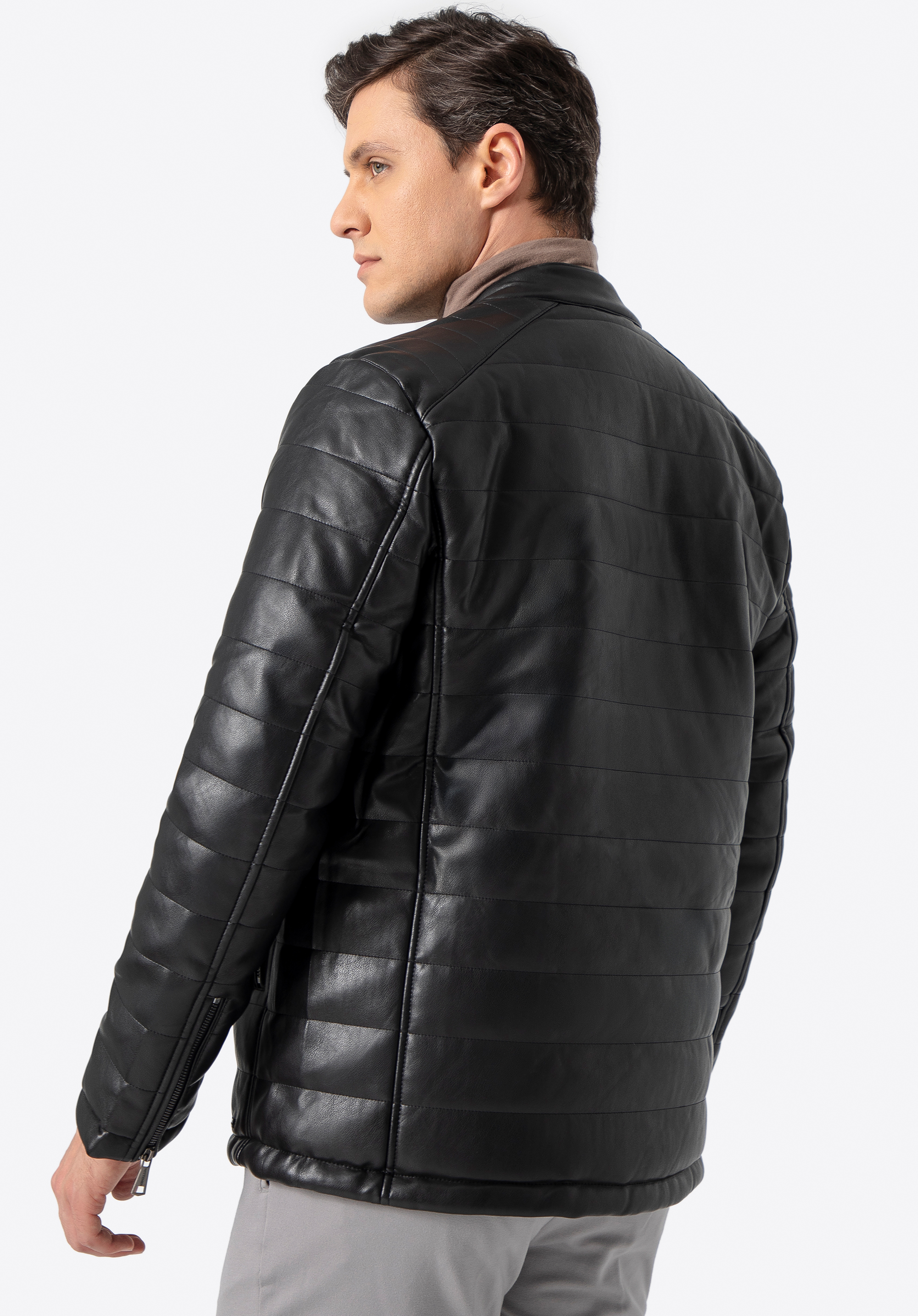 Diese Jacke ist sowohl im Herbst als auch im Frühjahr eine gute Wahl für den Alltag. Dank der modischen Steppung ist sie sehr angenehm auf der Haut. Der doppelte Druckknopfkragen kann nach Belieben getragen und eingestellt werden. Dieses Modell wurde aus hochwertigem Bio-Leder gefertigt . Tragen Sie es zu Ihren Lieblingssneakers oder eleganten Slippern - es wird Ihr Outfit in jeder Situation stilvoll ergänzen. Die gesteppteÖko-Lederjacke für Herren ist ein zeitloses Accessoire, das in Ihrem Kleiderschrank nicht fehlen darf.