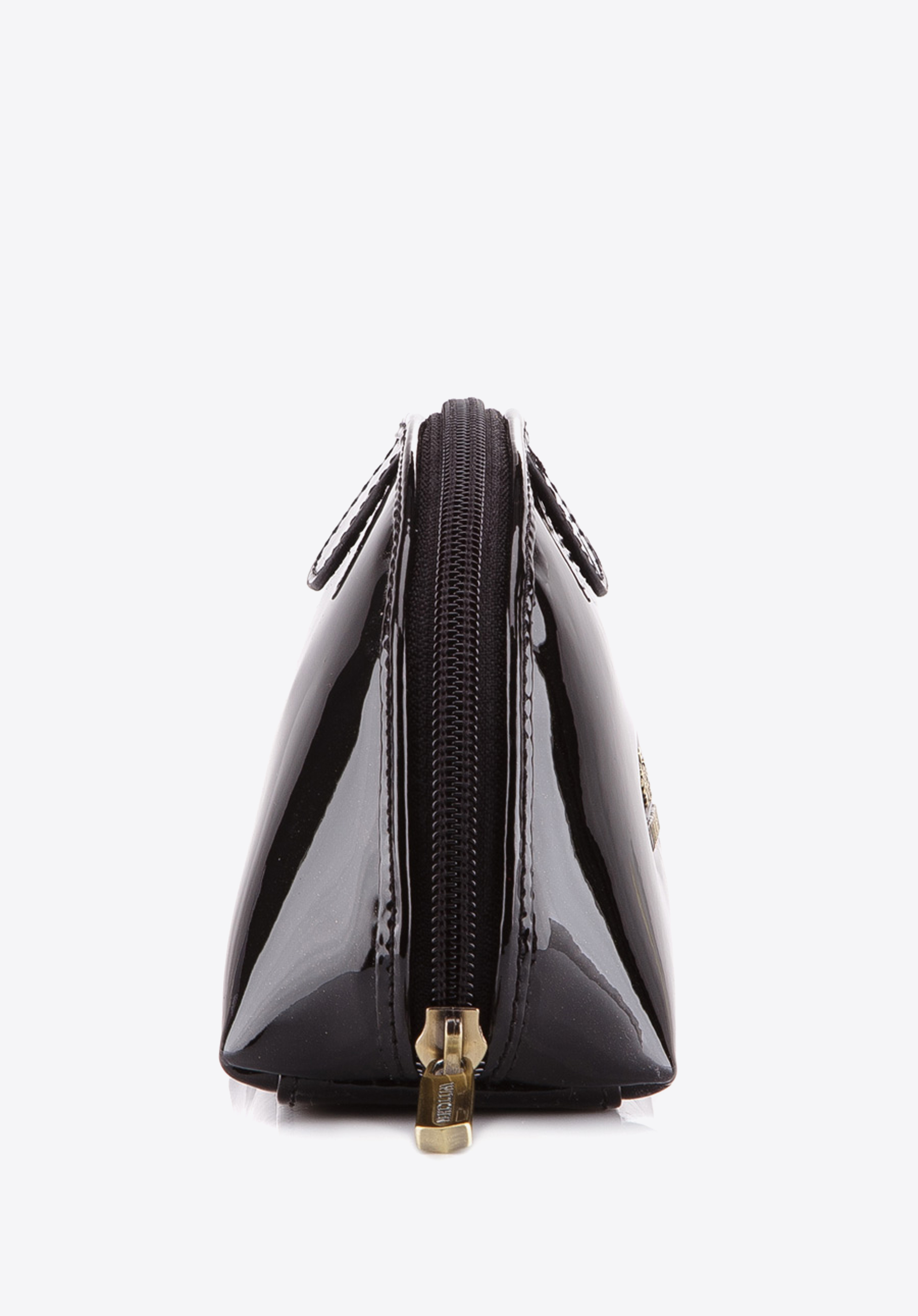 Ein kleines Kosmetiktäschchenaus Lackleder ist ein Accessoire, das durch sein einzigartiges Design sofort ins Auge sticht. Die bequeme Form und der praktische Reißverschluss sind weitere Vorzüge dieses Modells.